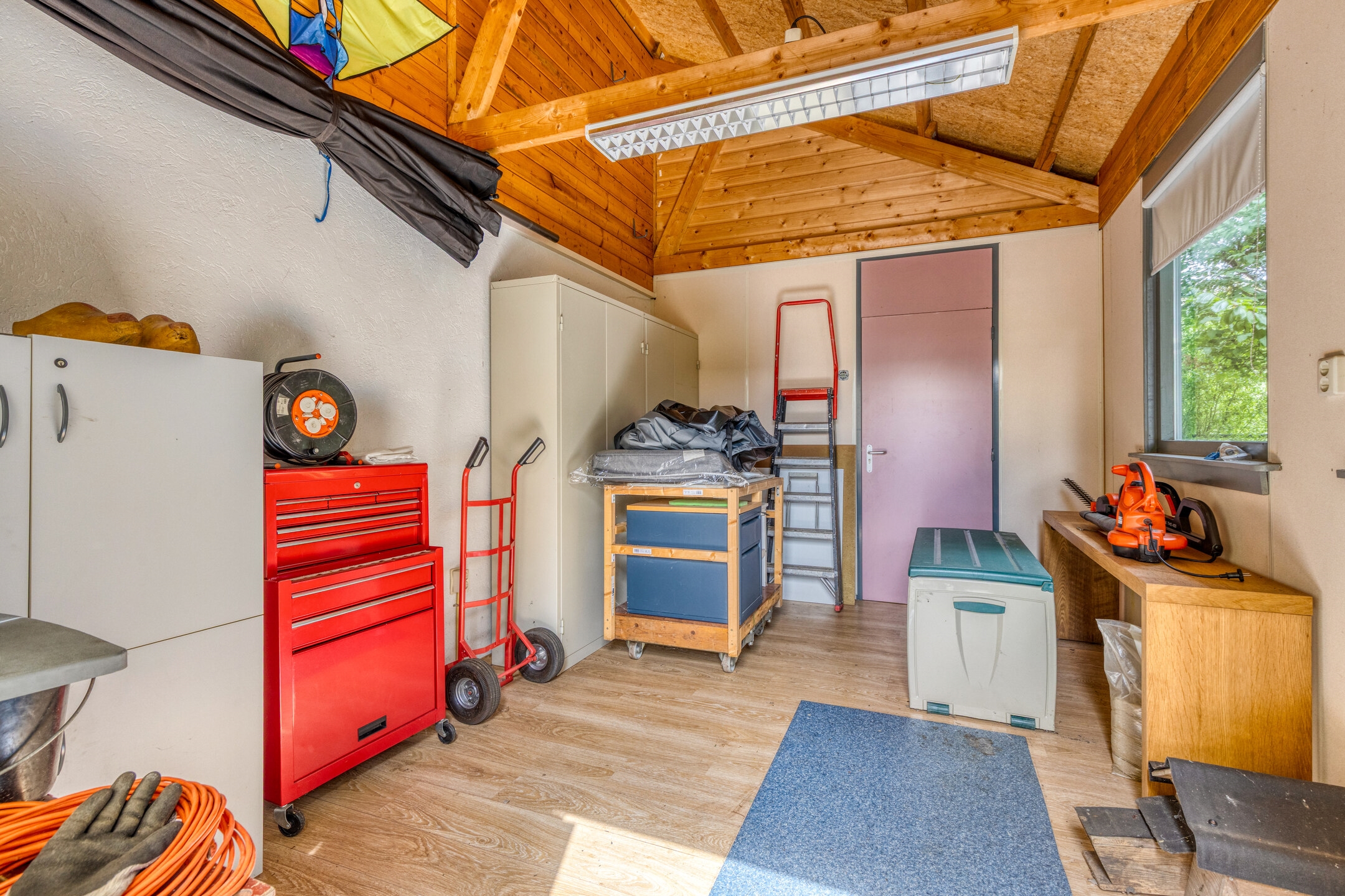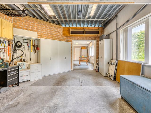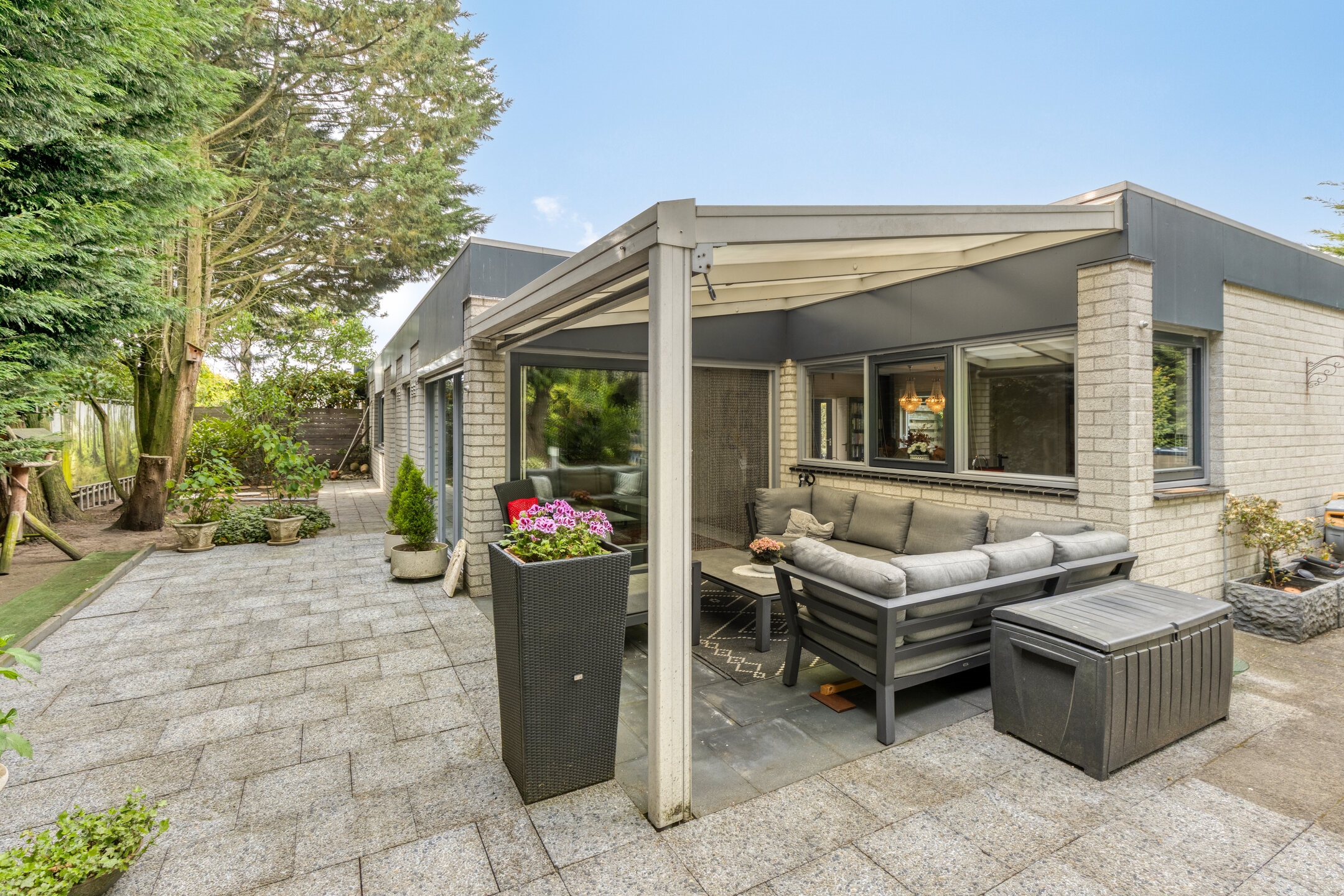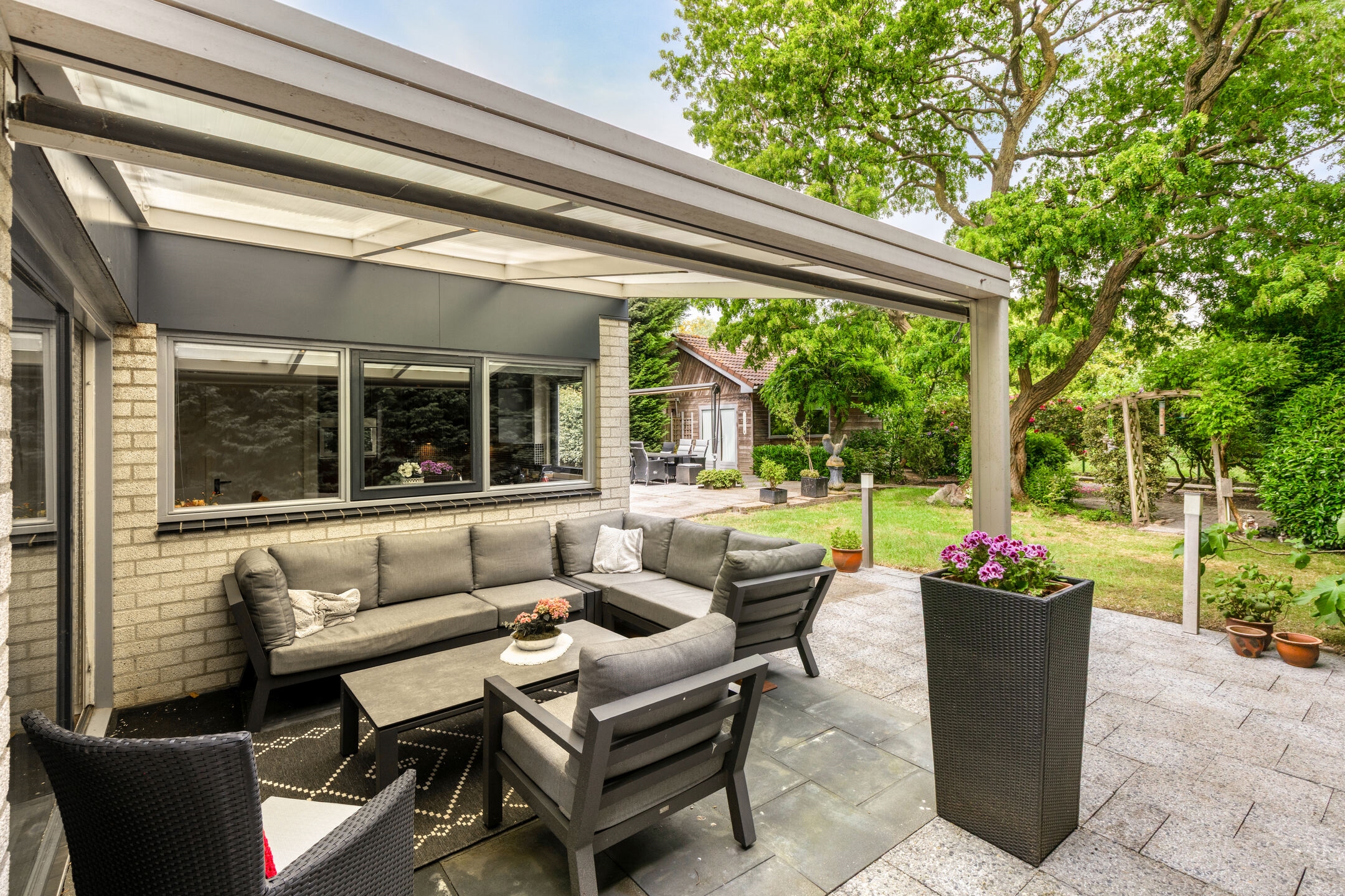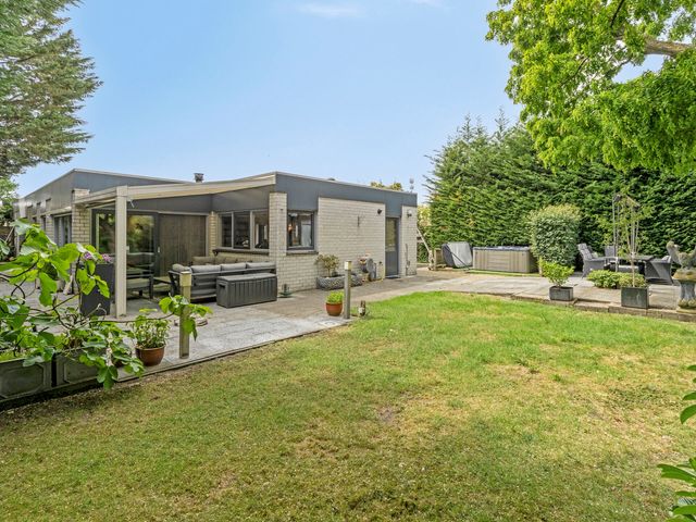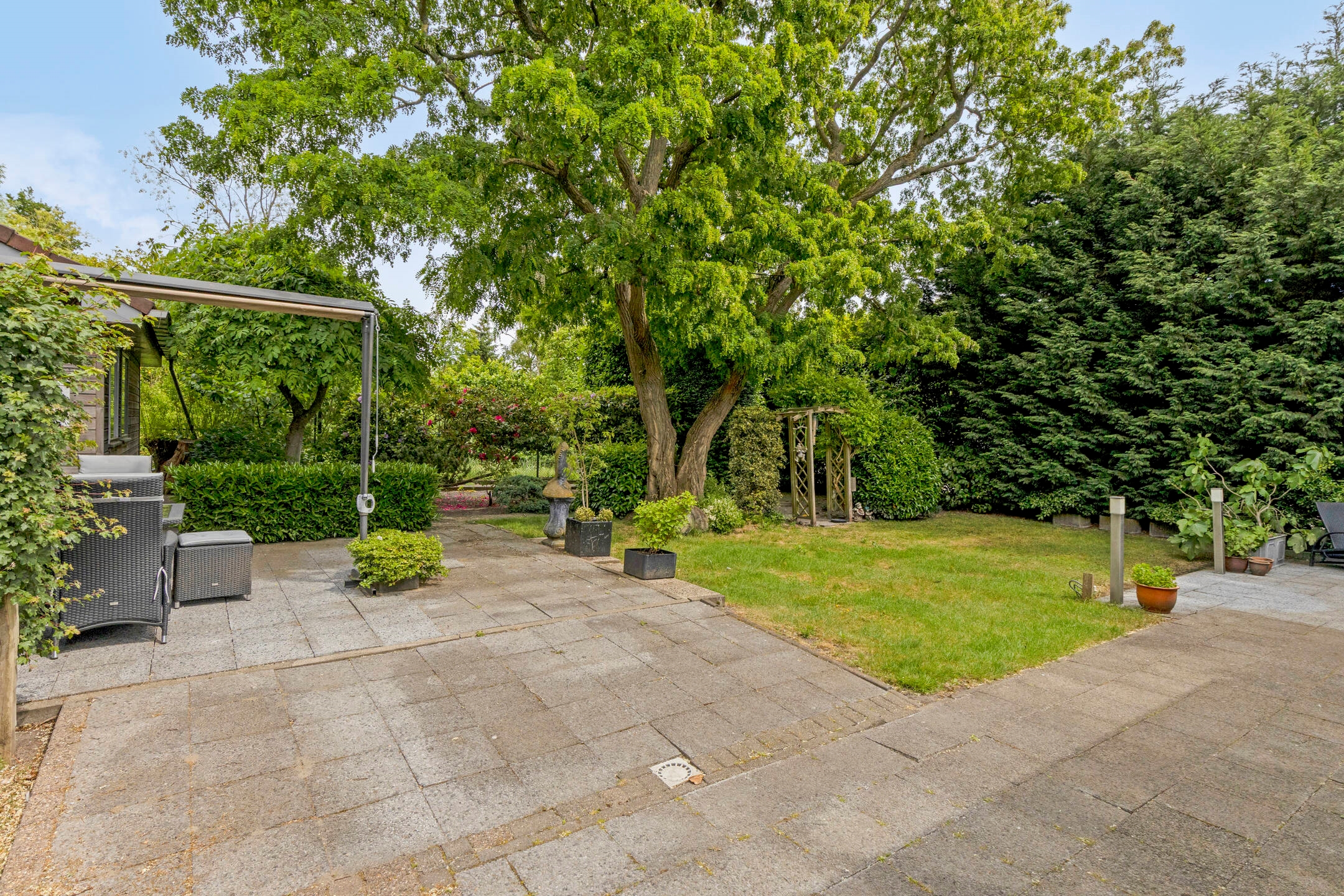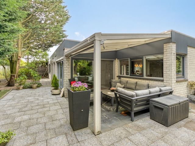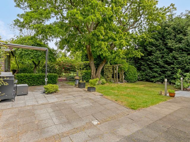 Rondom de woning ligt een fraai aangelegde, groene tuin die bereikbaar is via de woonkamer, bijkeuken en oprit. U vindt er meerdere terrassen, een overkapping en volop privacy. Achterin de tuin staat een tuinhuis met elektriciteit, geschikt als werkplek, atelier of lichte opslagruimte.