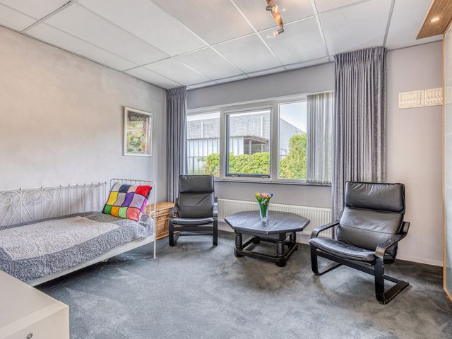 Deze ruime en volledig gelijkvloerse bungalowwoning met inpandige garage én een zelfstandige bedrijfs-/kantoorruimte aan de voorzijde biedt een unieke kans voor ondernemers die wonen en werken willen combineren. De woning beschikt over een royale L-vormige woonkamer aan de achterzijde, een moderne keuken, bijkeuken, badkamer, twee aparte toiletten en vier slaapkamers. De ruime tuin met tuinhuis - tevens te gebruiken als werkplek of opslagruimte - maakt het geheel compleet.