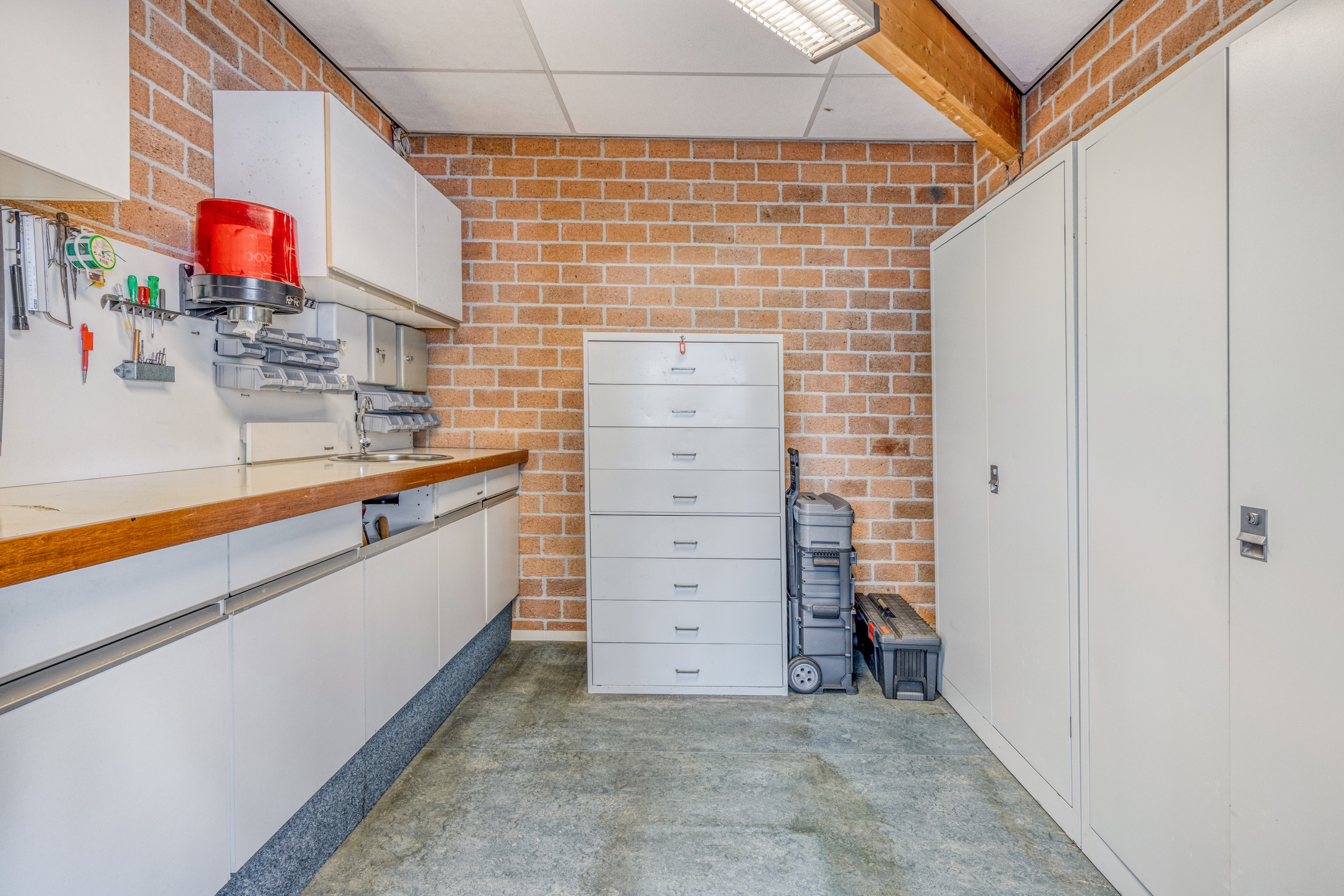 Aangrenzend vindt u de ruime inpandige garage, eveneens direct bereikbaar bij aankomst. Dit maakt laden en lossen gemakkelijk en discreet.