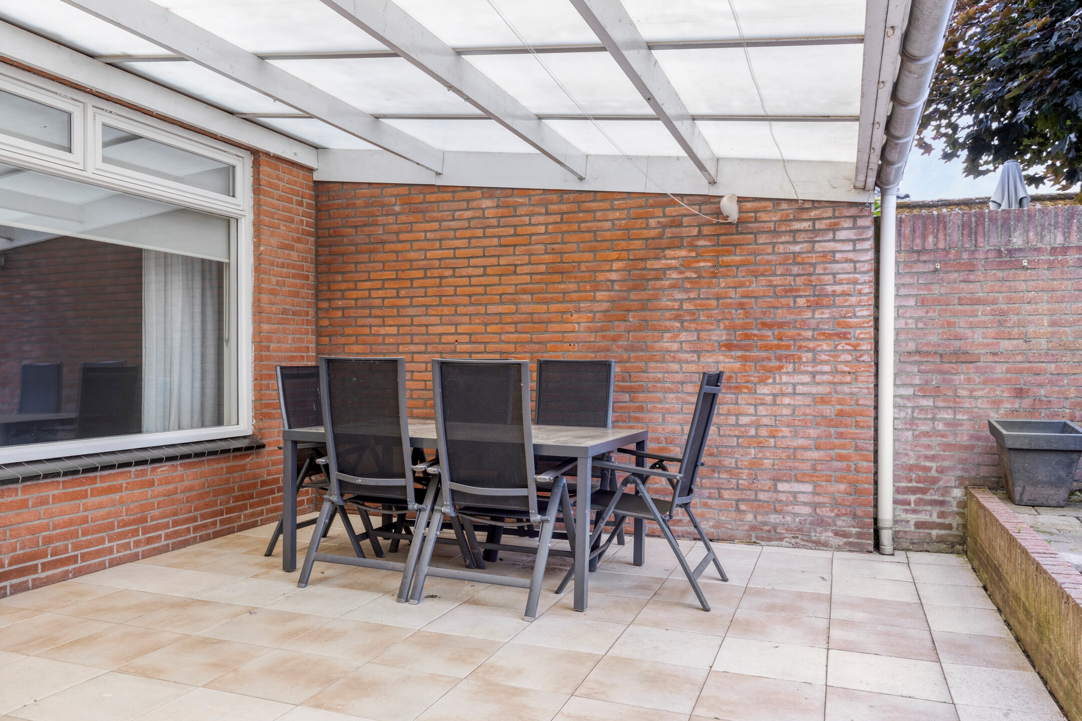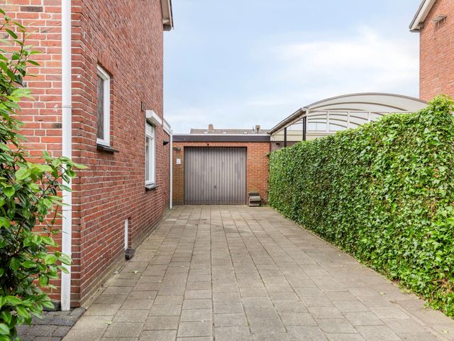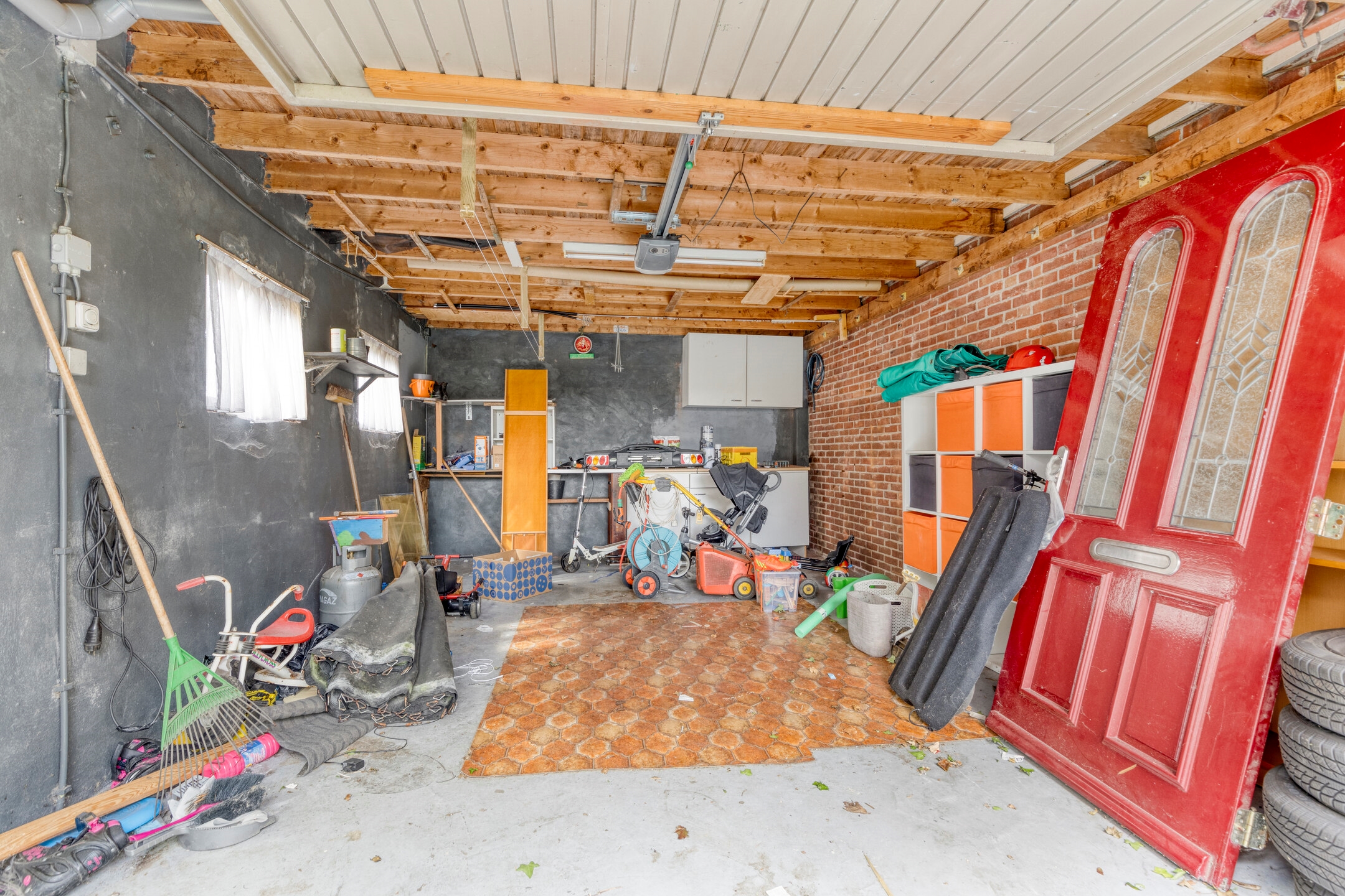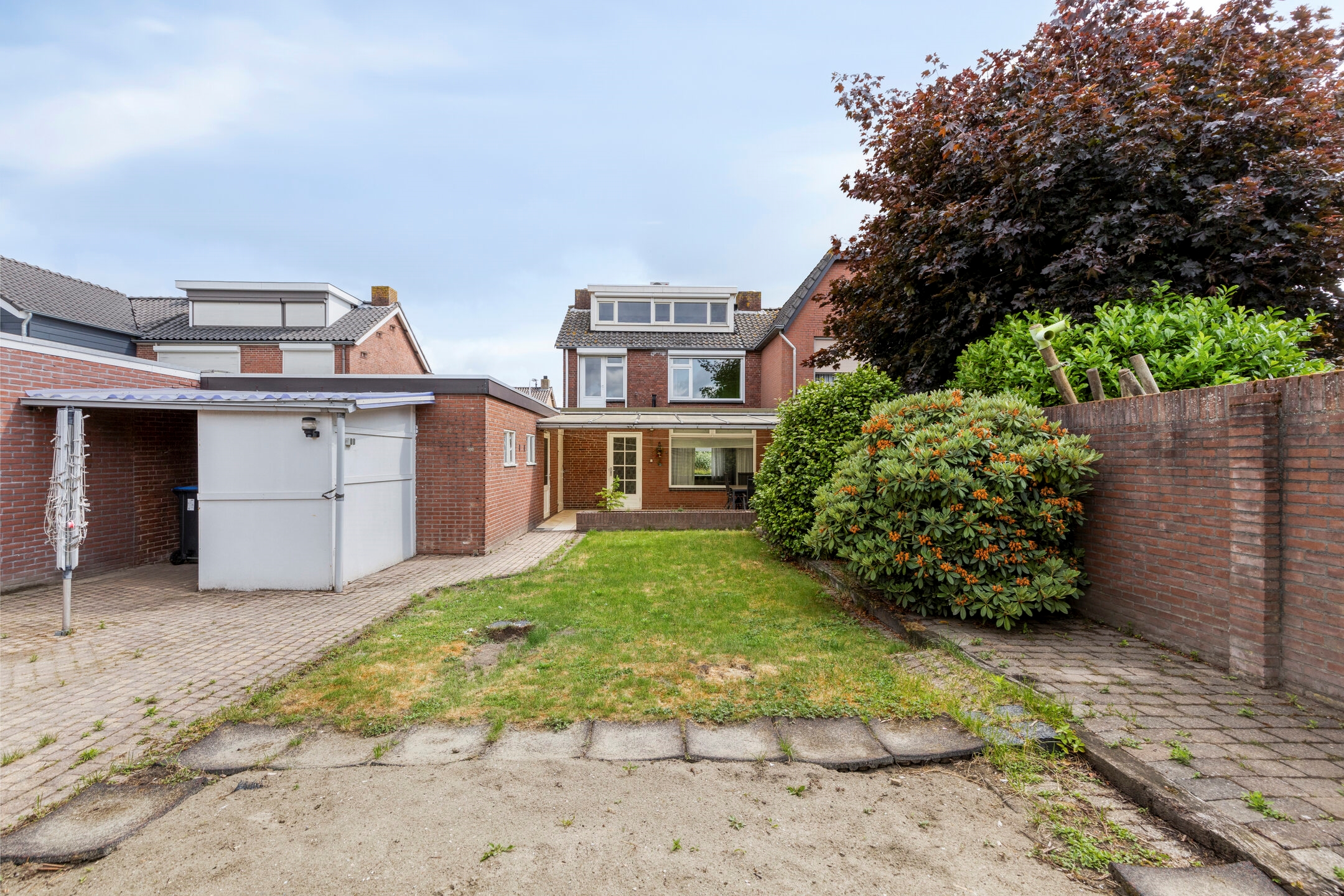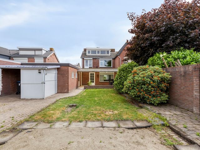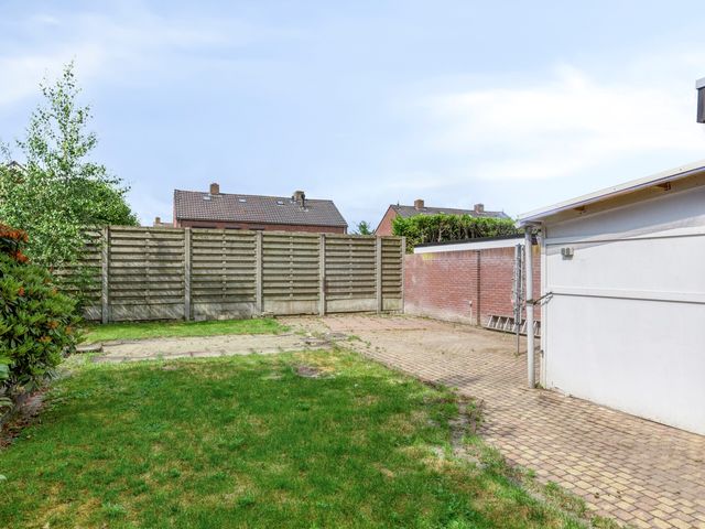 Vanuit de achtertuin heeft u toegang tot de garage en een overkapping, beide zijn voorzien van elektra.