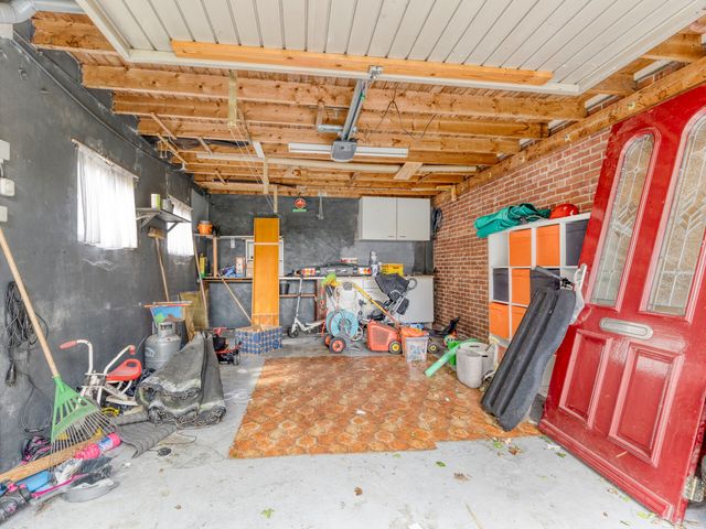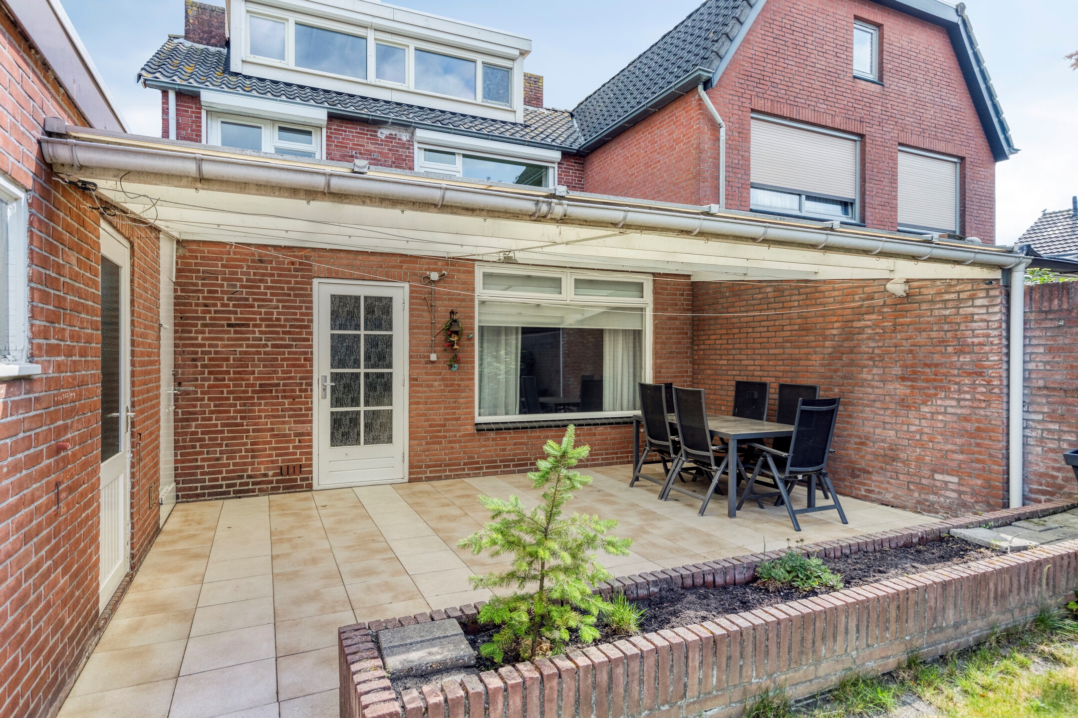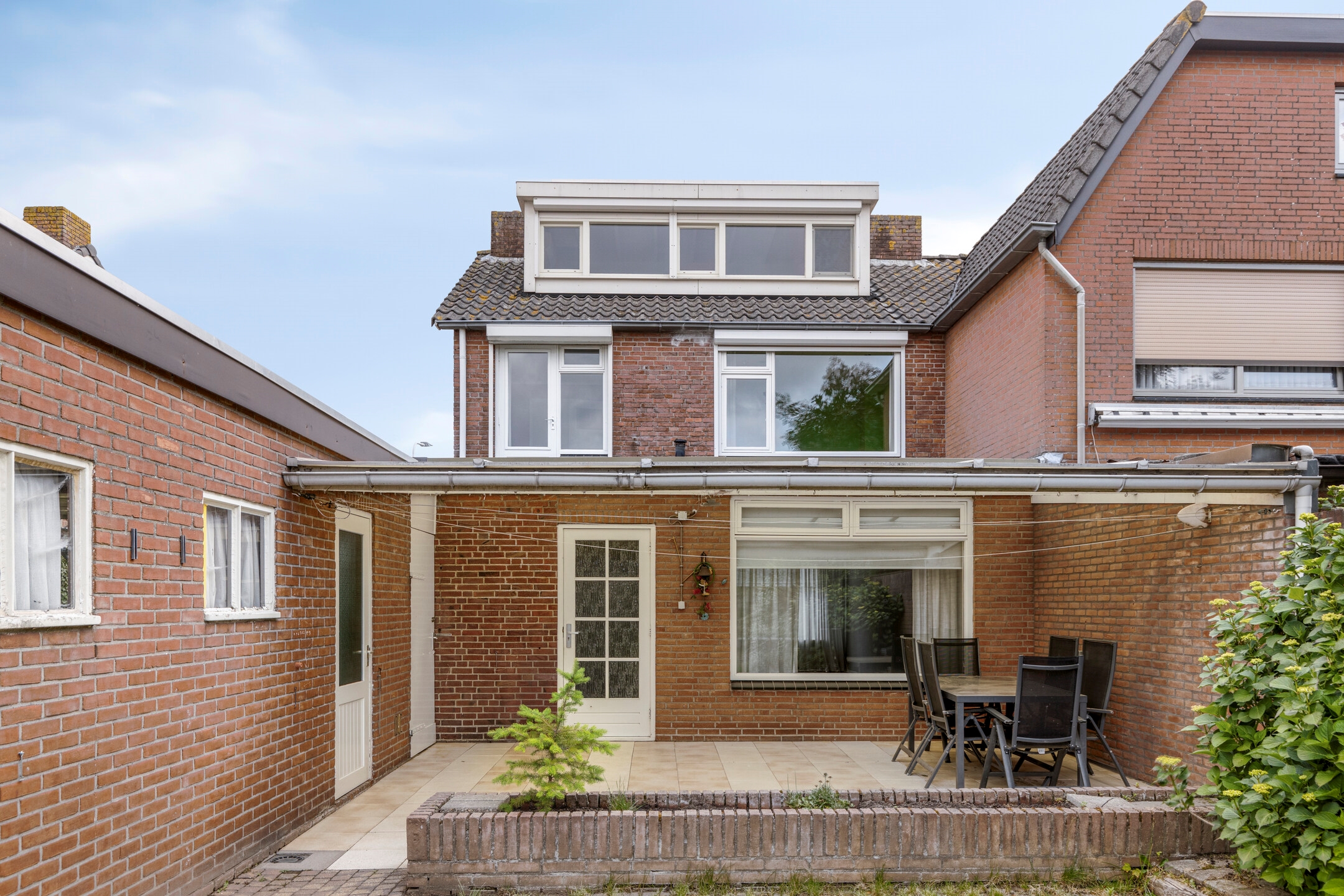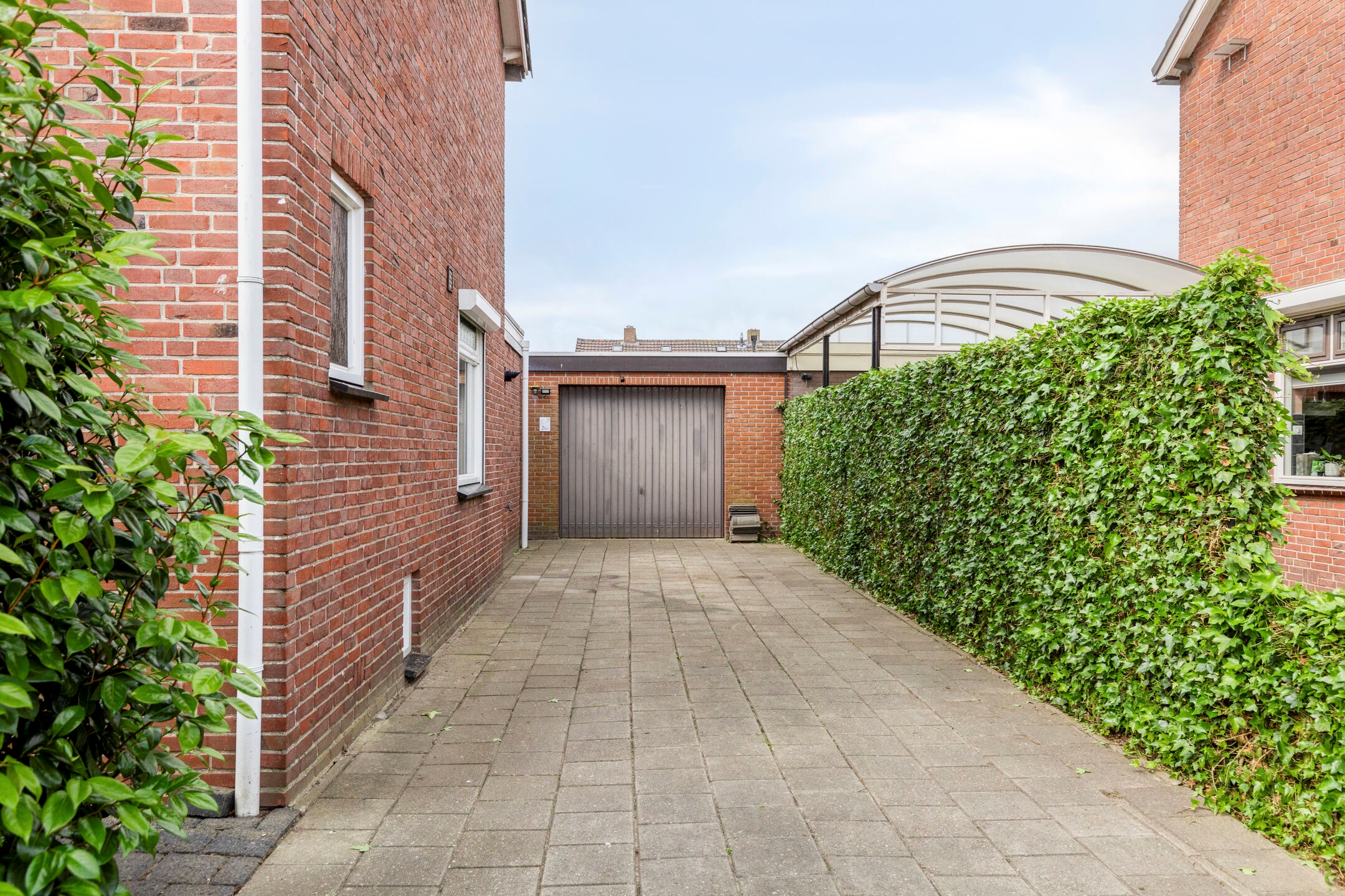 Vanuit de achtertuin heeft u toegang tot de garage en een overkapping, beide zijn voorzien van elektra.