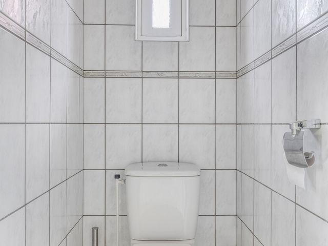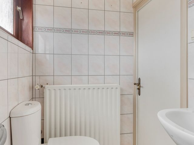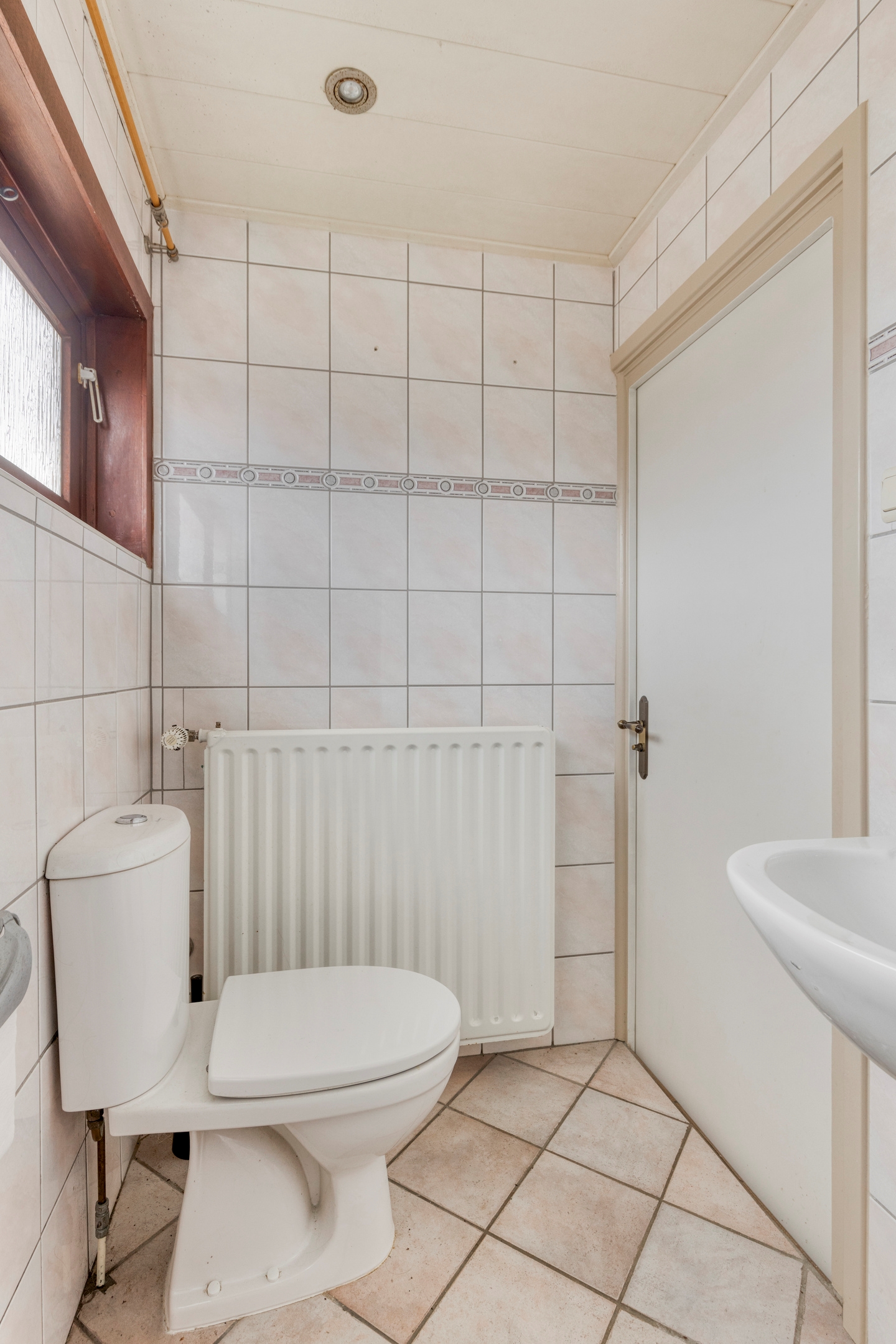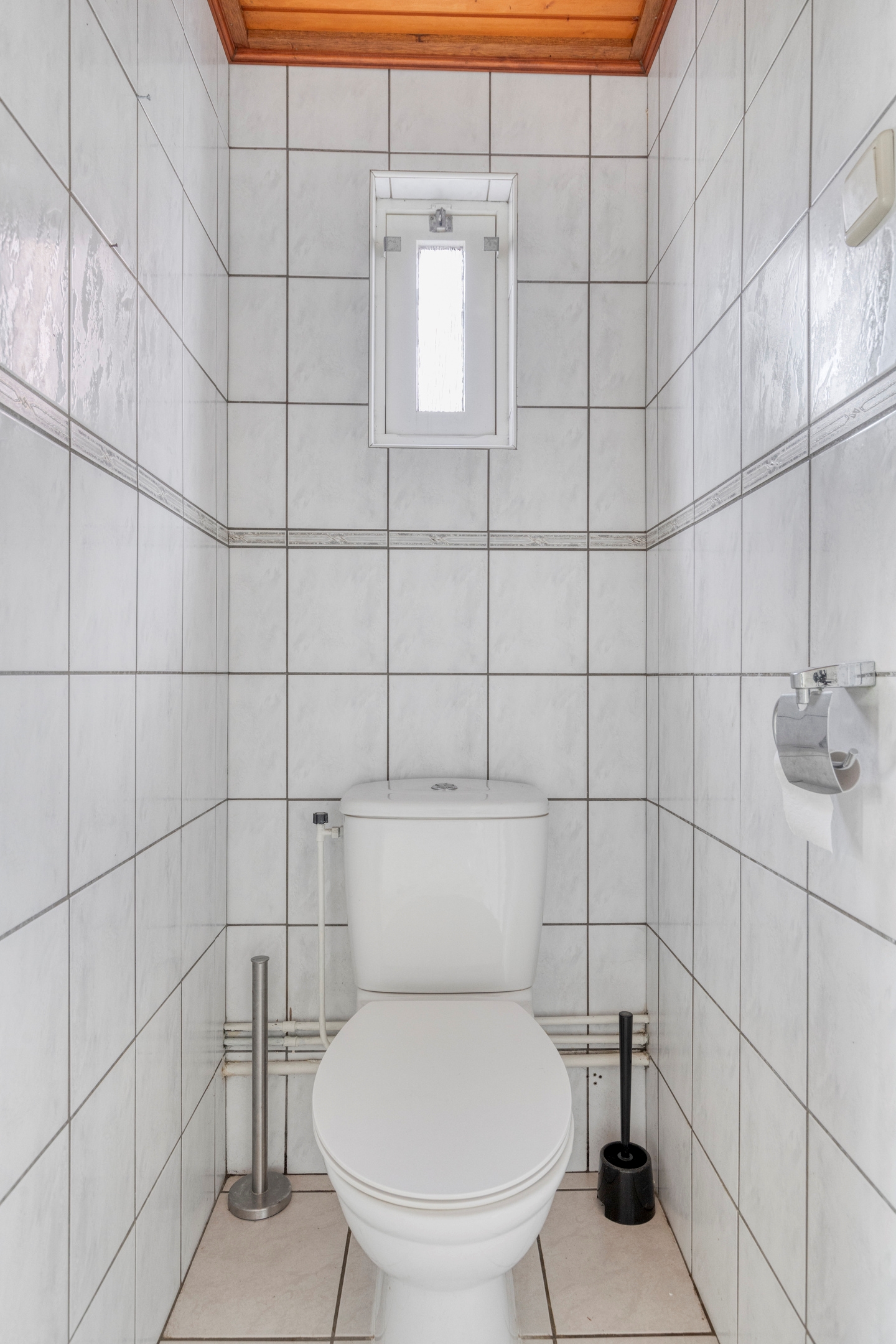 Het toilet, tevens gesitueerd in de bijkeuken, is geheel betegeld en is voorzien van een raampje.
