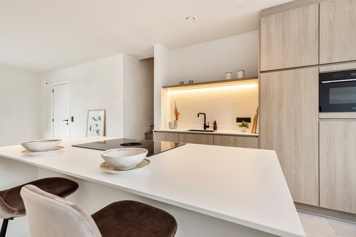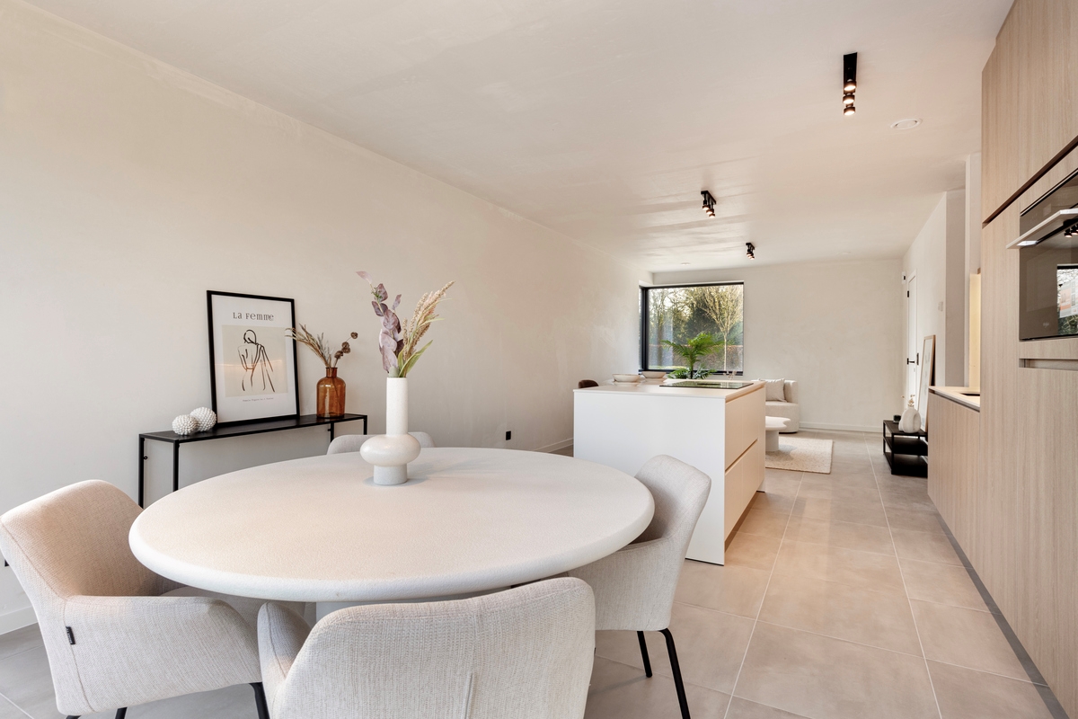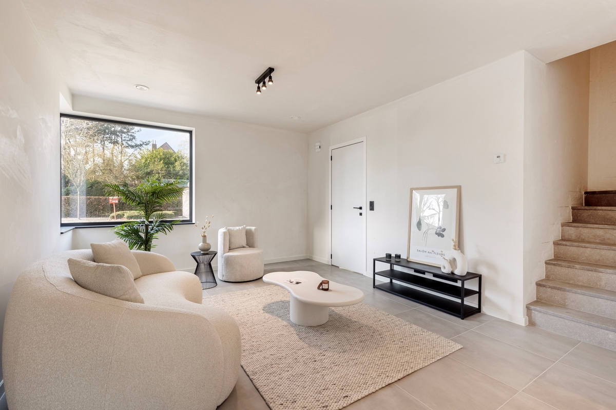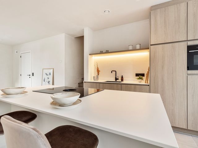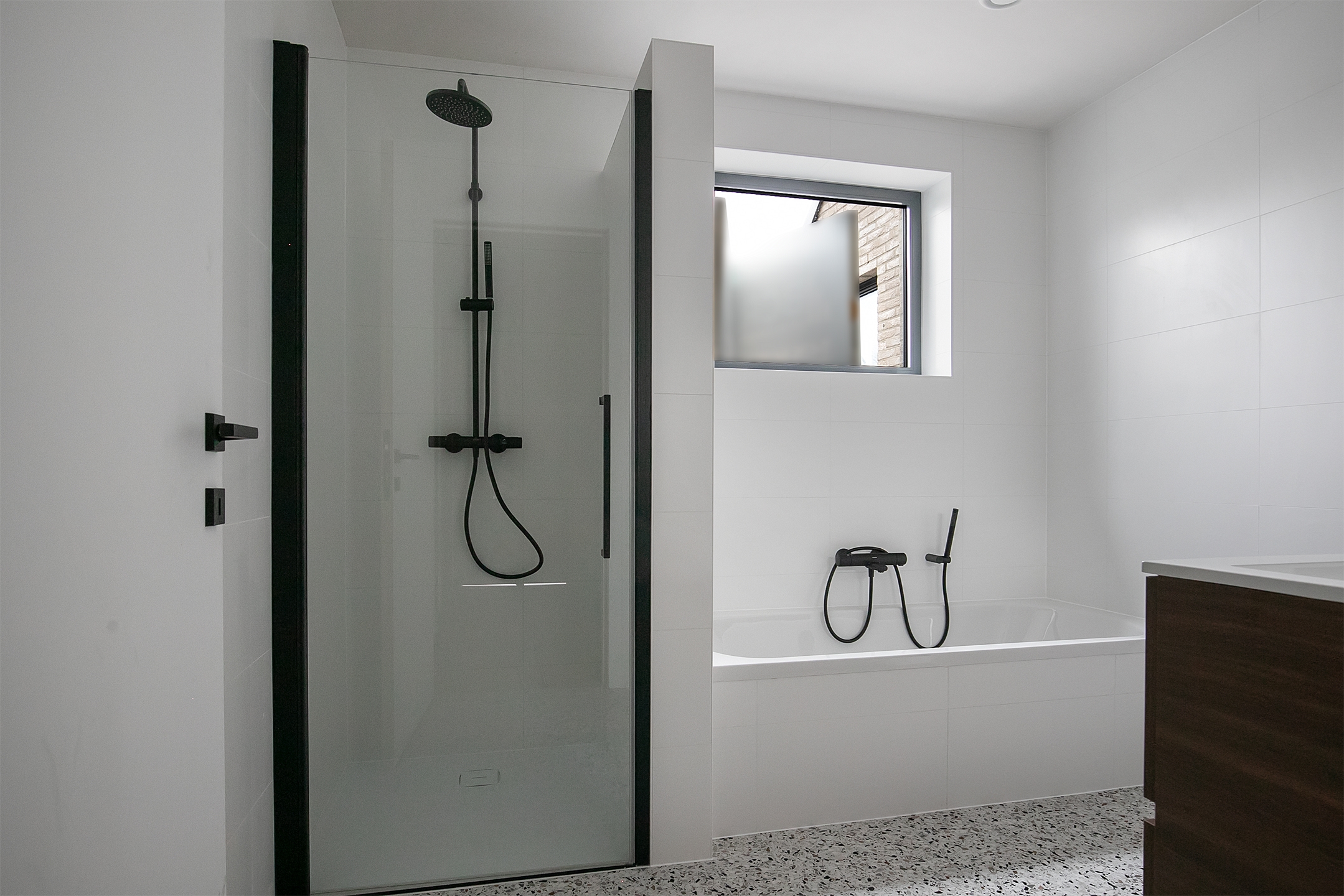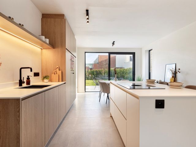 Om een energieneutrale woning te kunnen aanbieden voorzien we extra isolatie, een geothermische bodem-water warmtepomp, overal vloerverwarming, zonnepanelen, een koelstation, recuperatie van regenwater, mogelijkheid tot een thuisbatterij, kortom een volledig pakket van investeringen die uw energierekening tot een minimum zullen herleiden.