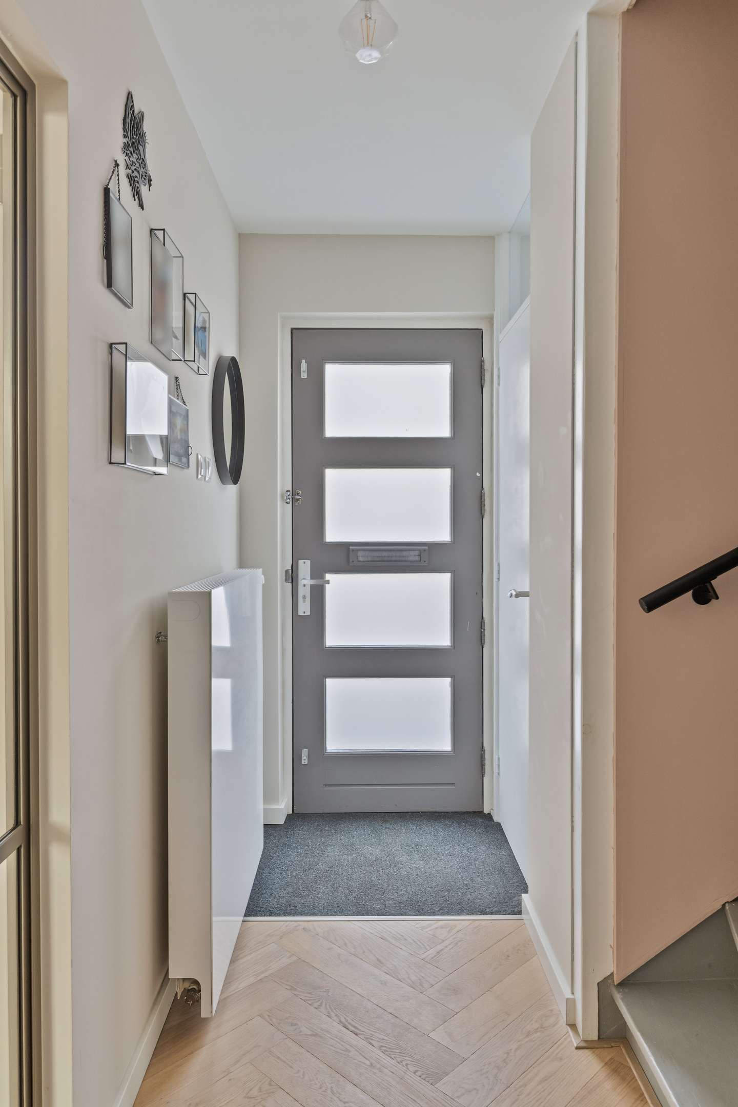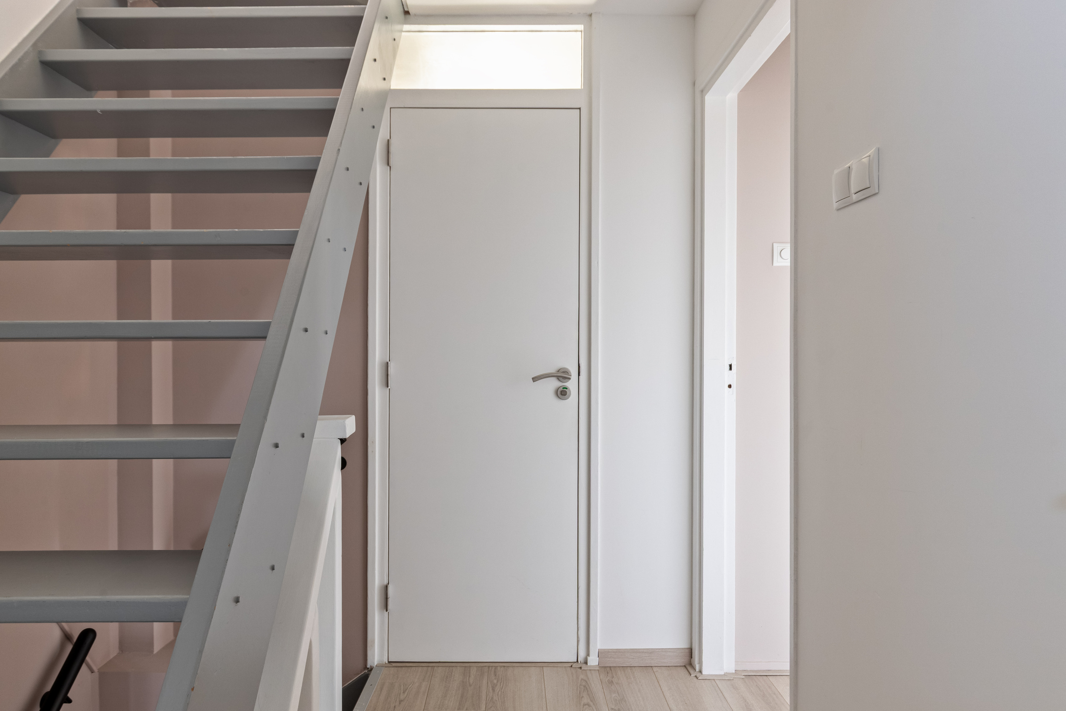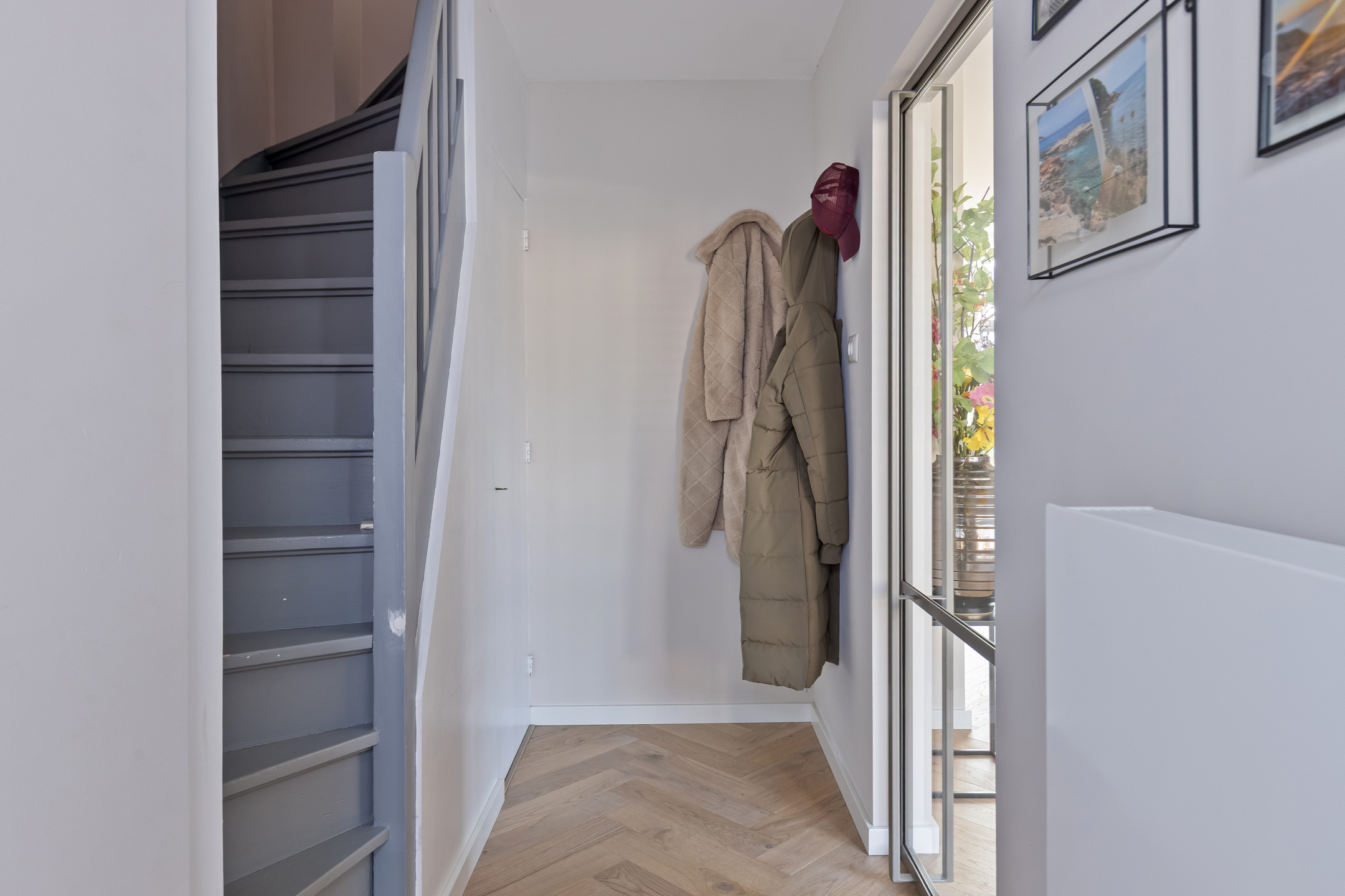 Via de entree kom je in de hal met meterkast modern toilet met wandcloset, trapopgang en toegang tot de woonkamer.