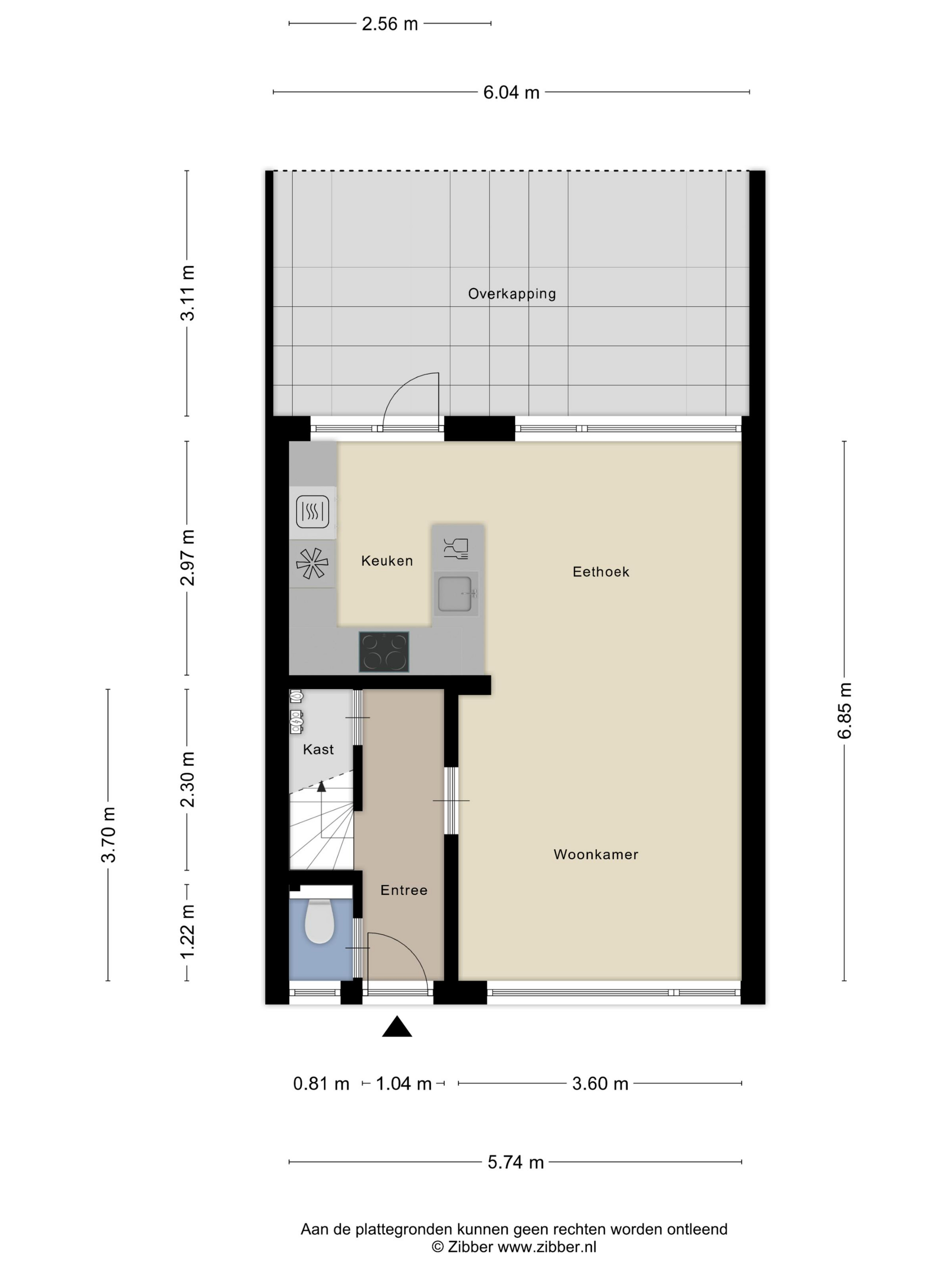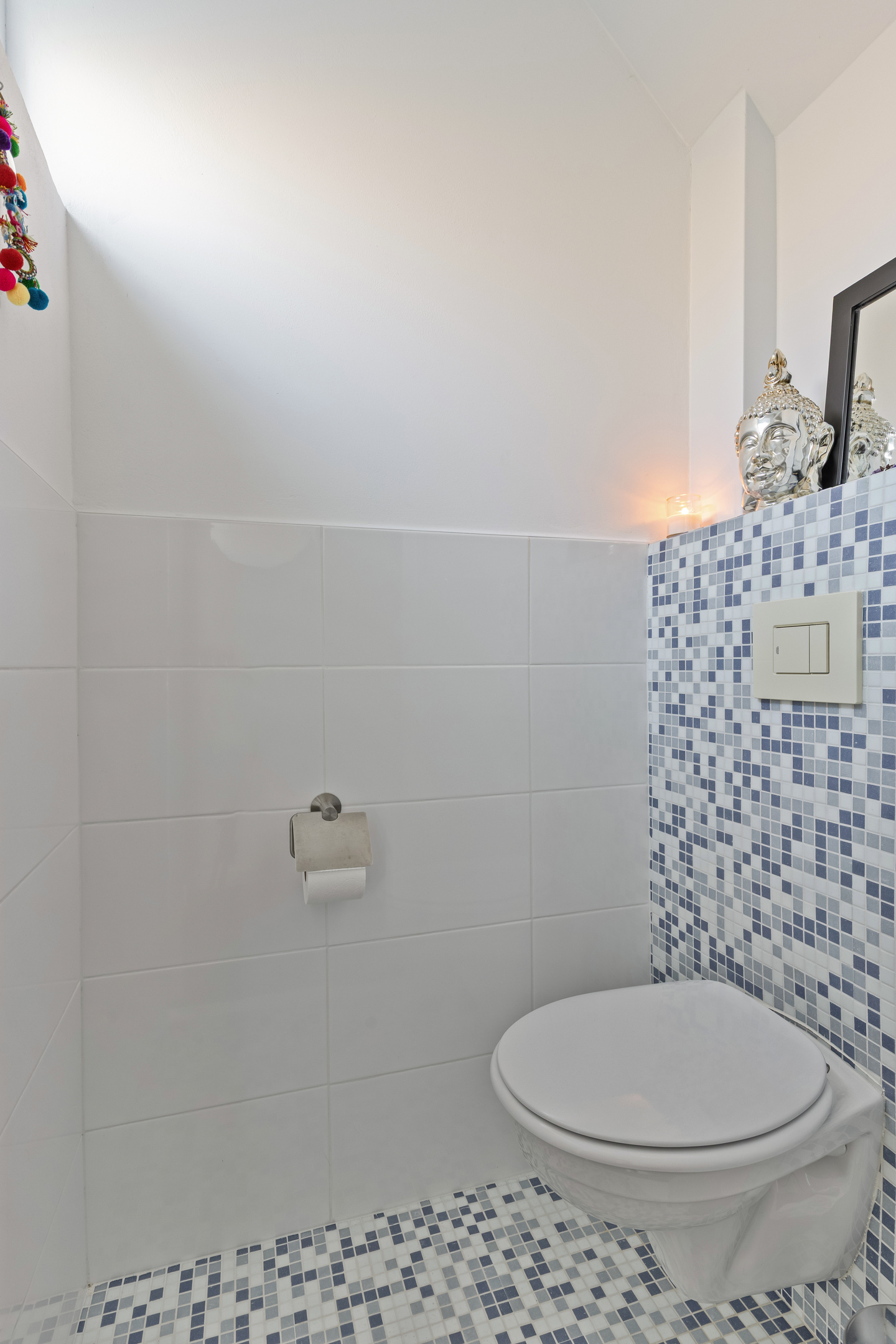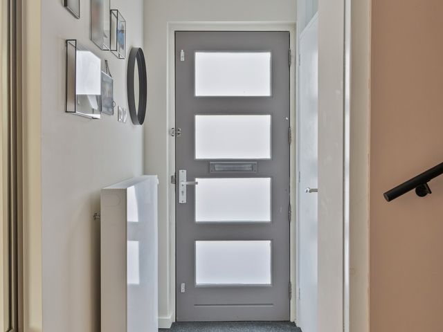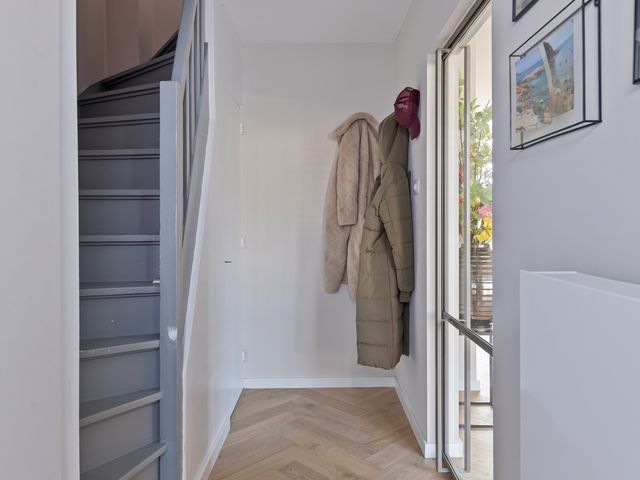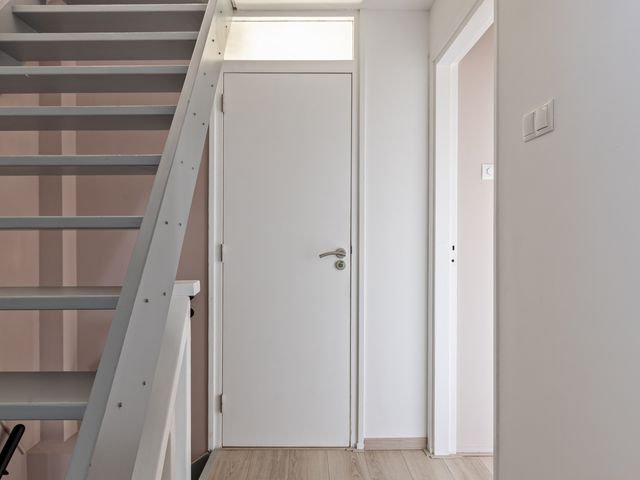 Via de entree kom je in de hal met meterkast modern toilet met wandcloset, trapopgang en toegang tot de woonkamer.