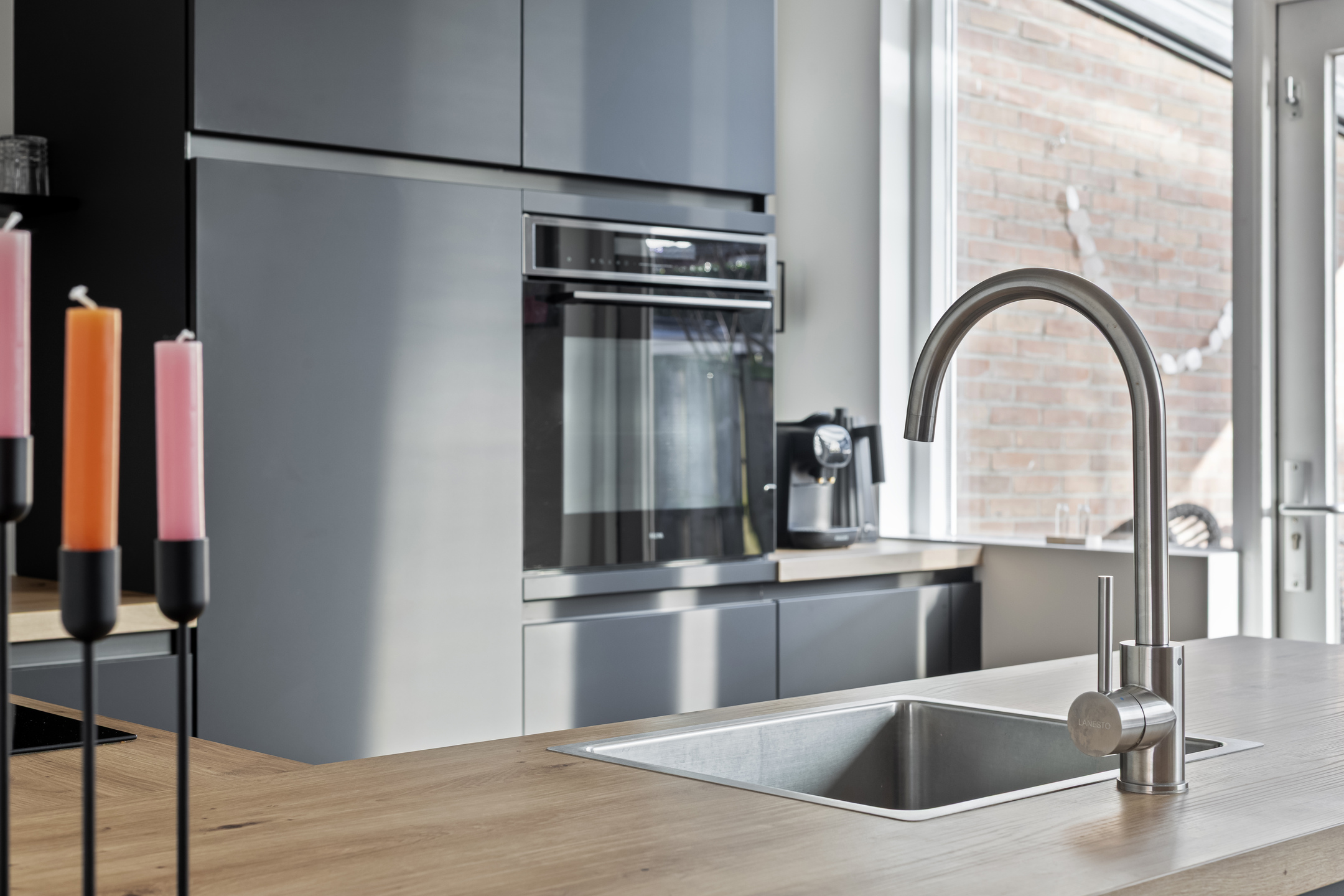 De keuken is uitgerust met diverse inbouwapparatuur, waaronder een inductiekookplaat, afzuigschouw, koelkast en combi oven-magnetron. Tevens is er een close-in boiler aanwezig voor direct warm water. Vanuit de keuken heeft u toegang tot de achtertuin.