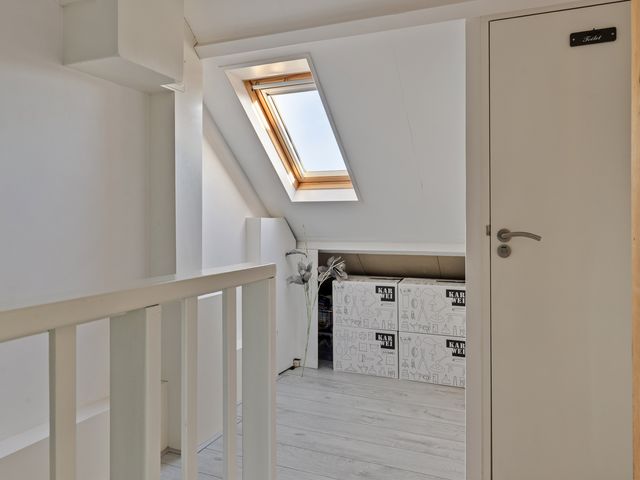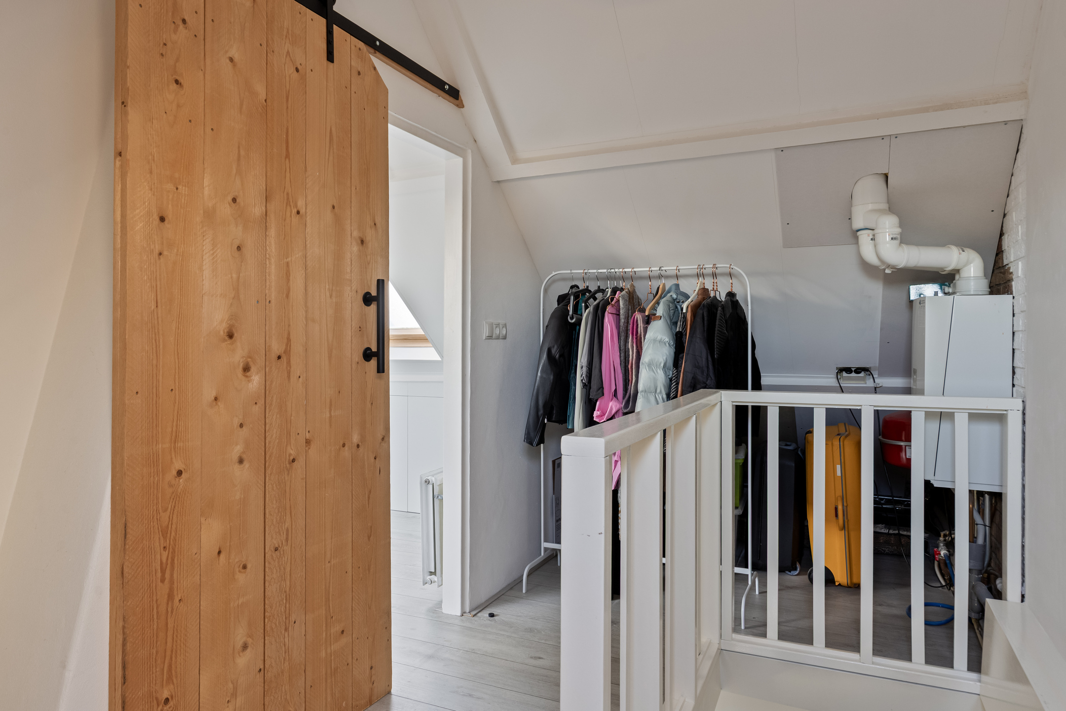 De voorzolder is voorzien van een Velux dakraam, opstelling van de CV combiketel (Nefit, 2017) en toegang tot het toilet en de derde slaapkamer.