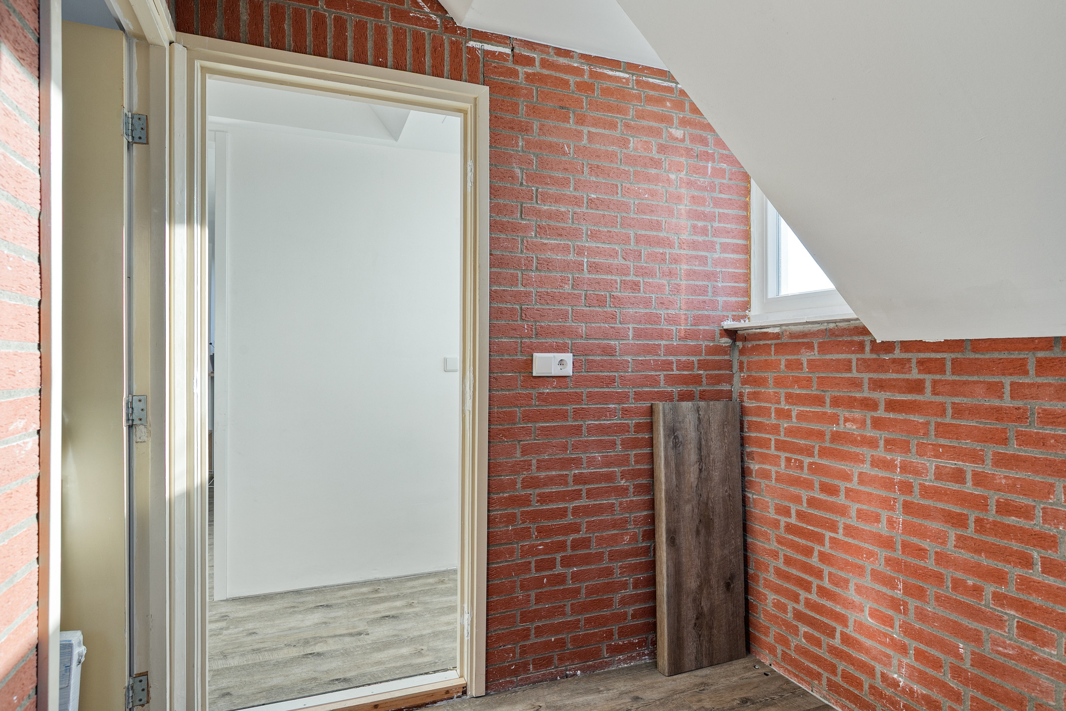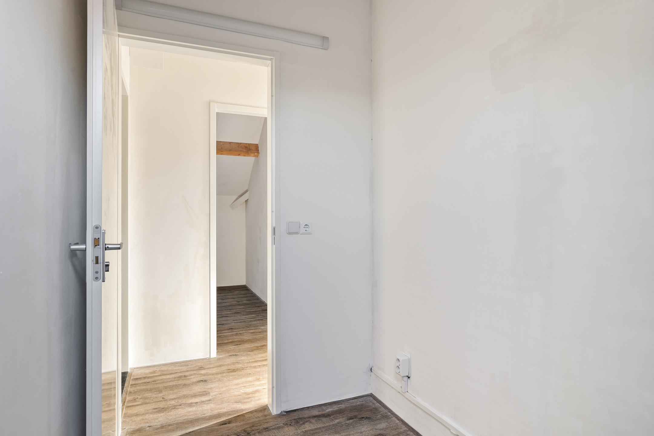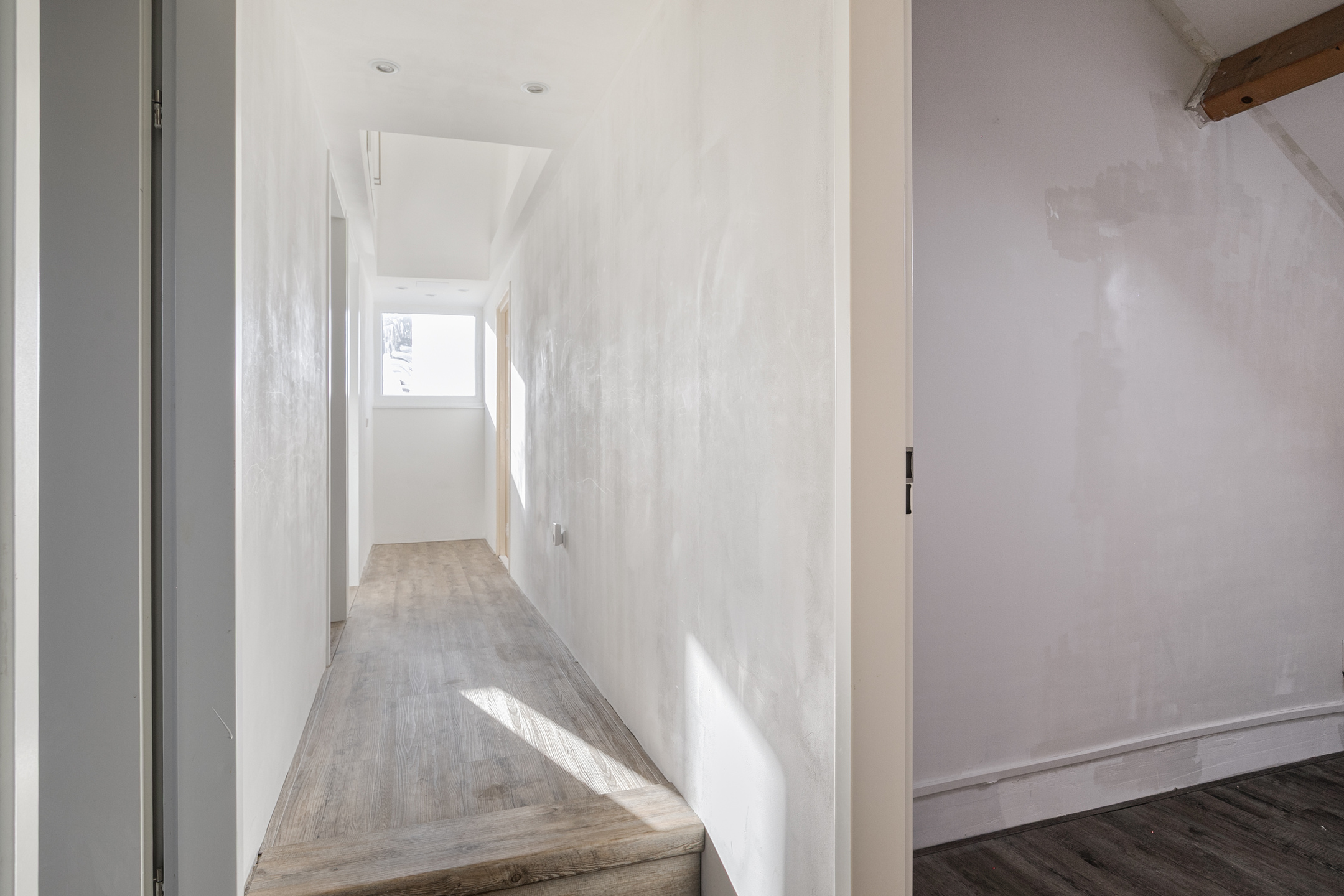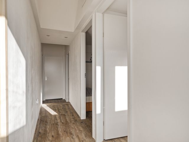 Bijna de gehele verdieping is voorzien van een strakke laminaatvloer, zijn de wanden gestuct en is er in iedere kamer voldoende lichtinval.