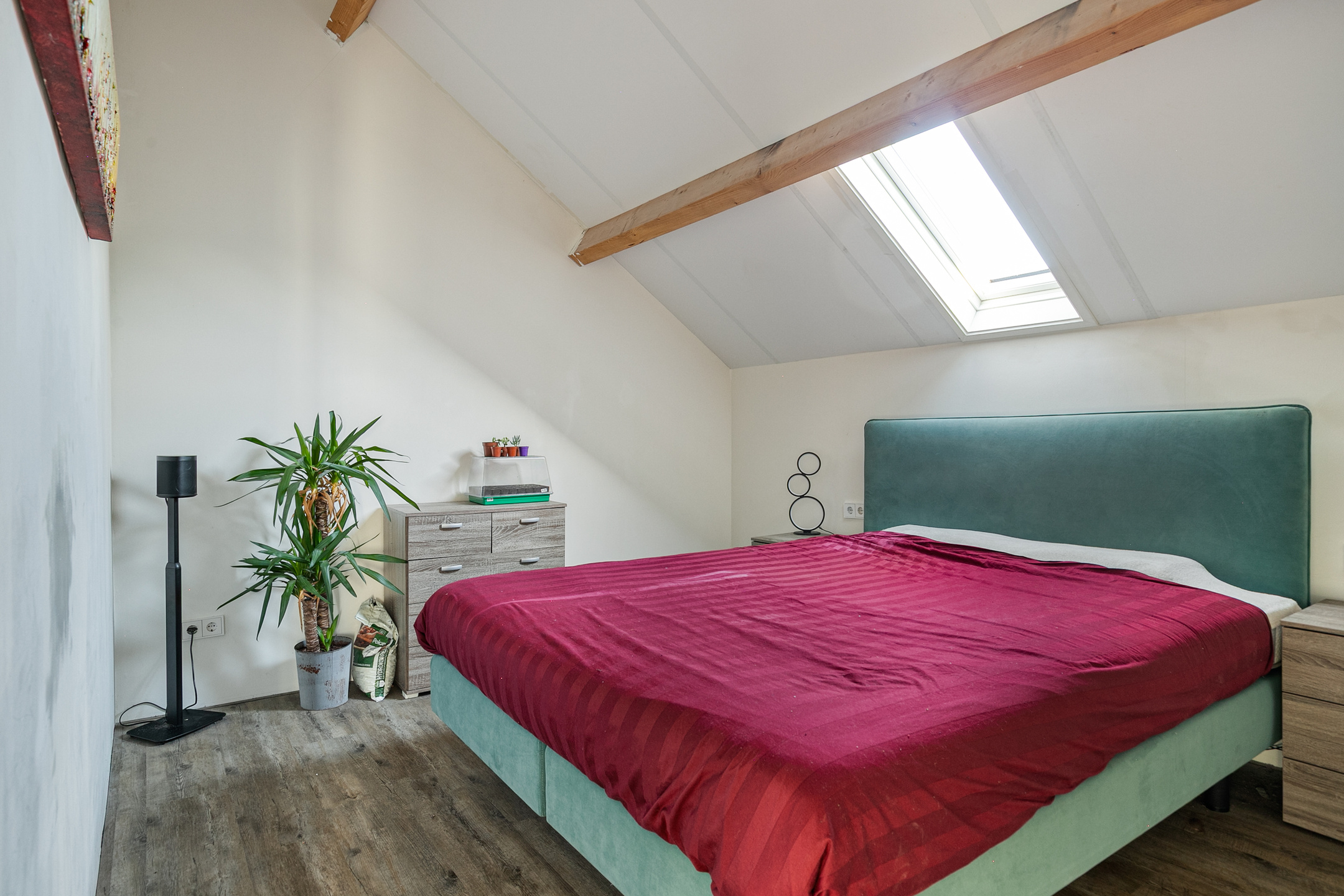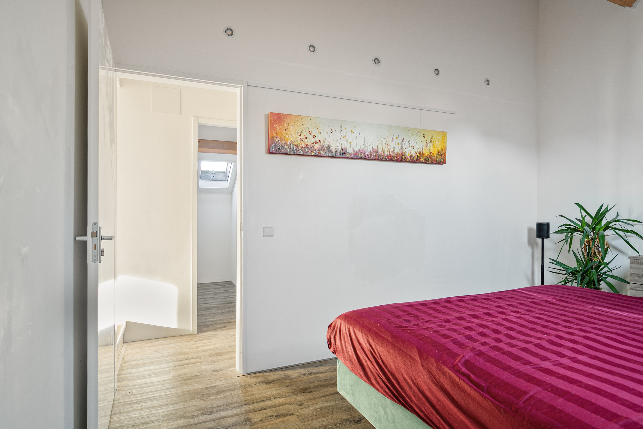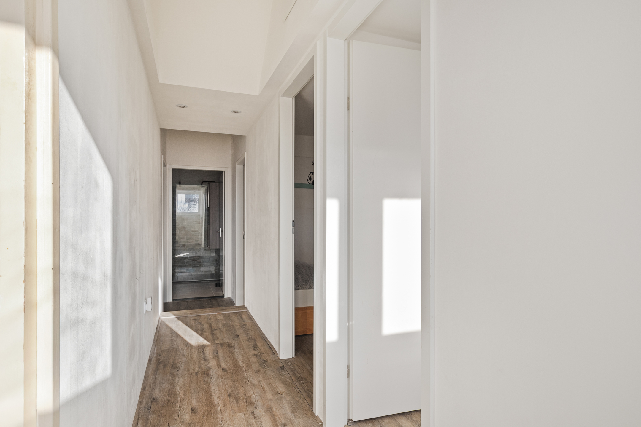 Bijna de gehele verdieping is voorzien van een strakke laminaatvloer, zijn de wanden gestuct en is er in iedere kamer voldoende lichtinval.