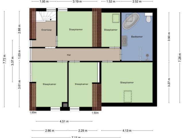 De gebruikte meetinstructie volgt de NEN2580-norm. Deze methode biedt een uniforme manier om het gebruiksoppervlak te benaderen. Door variaties in interpretatie, afronding of meetbeperkingen kunnen er toch afwijkingen ontstaan. De feitelijke situatie in het huis is leidend. De verstrekte oppervlakte-informatie is indicatief en mag niet als exact worden beschouwd. “Wat je ziet is wat je koopt” blijft het uitgangspunt.