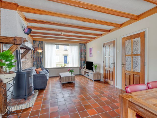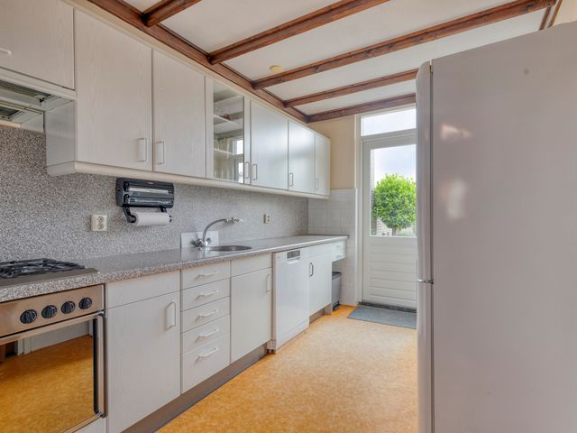 Bij binnenkomst in de woning word je welkom geheten in de hal, die toegang biedt tot het toilet, de meterkast, de gesloten keuken, woonkamer en de trapopgang naar de eerste verdieping. De ruime, lichte woonkamer strekt zich uit over de gehele diepte van de woning en beschikt over een grote raampartij aan de voorzijde, en openslaande deuren met ramen aan de achterzijde. Hierdoor geniet je van een prettige lichtinval gedurende de hele dag. De gesloten keuken is voorzien van een gasfornuis, elektrische oven, vaatwasser, koelkast en diverse opslag kasten aan de boven-/onderzijden.