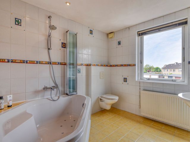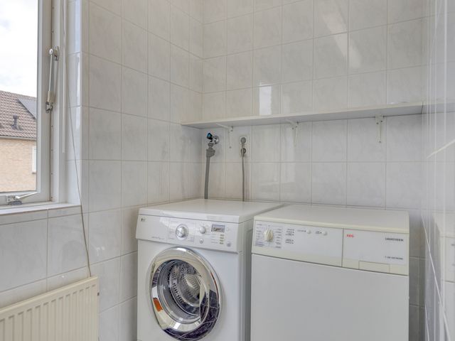 De overloop geeft toegang tot 2 slaapkamers, de badkamer, een praktische wasruimte en vaste trap naar de zolderverdieping. De eigentijdse badkamer is voorzien van een luxe bubbelbad met douchekop en thermostaatkraan, een toilet en een ruim wastafelmeubel. Ideaal op deze verdieping is de separate wasruimte. Zo hoeft u geen ruimtes in andere kamers in te leveren om uw wasmachine en droger te plaatsen! De ruimtes aan de achterzijde zijn uitgerust met rolluiken.