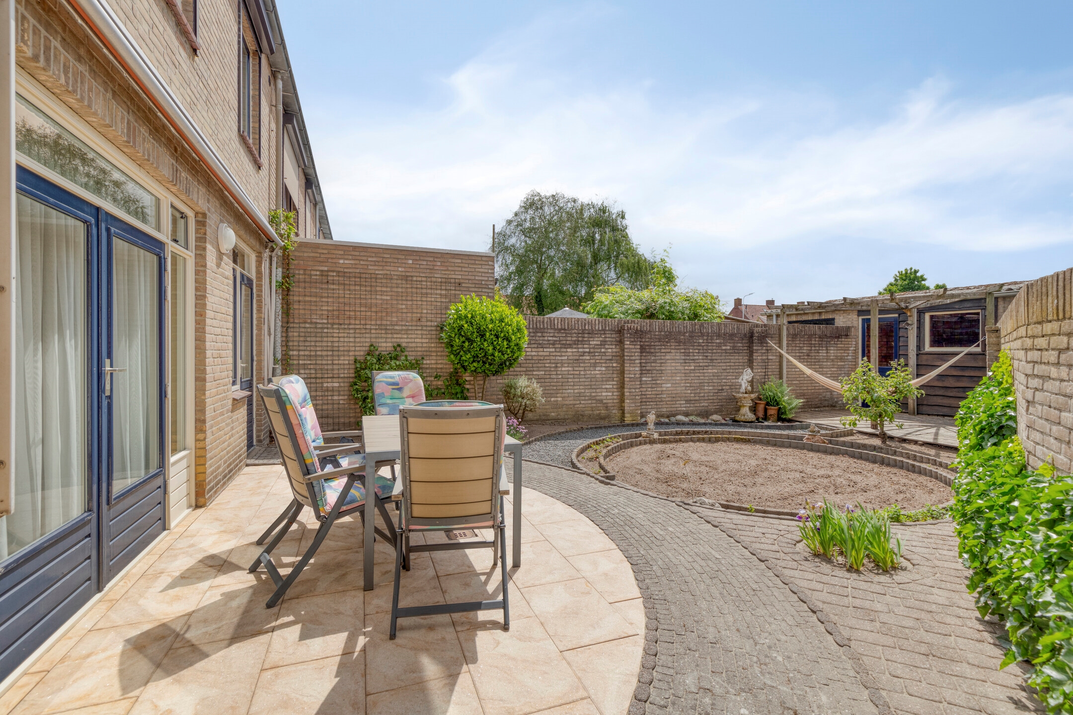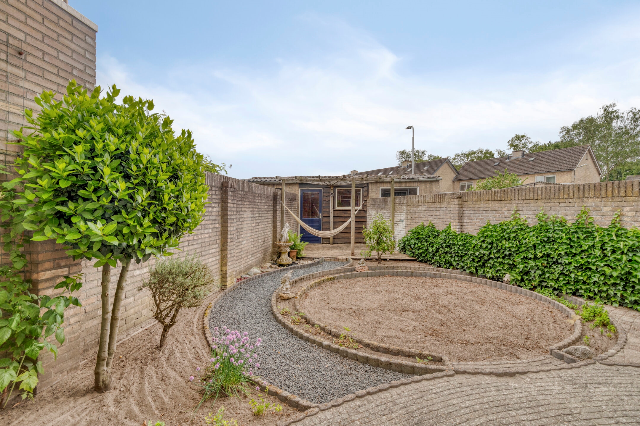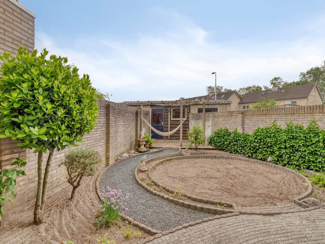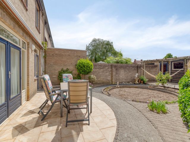 De achtertuin is onderhoudsvriendelijk aangelegd en biedt volop privacy. De tuin beschikt over een ruime en praktische stenen berging. Ook biedt de achtertuin toegang tot de garage en een poort naar de voorzijde van de woning. Deze tuin leent zich voor heerlijk ontspannen in de zon, tuinieren of gezellig barbecueën.