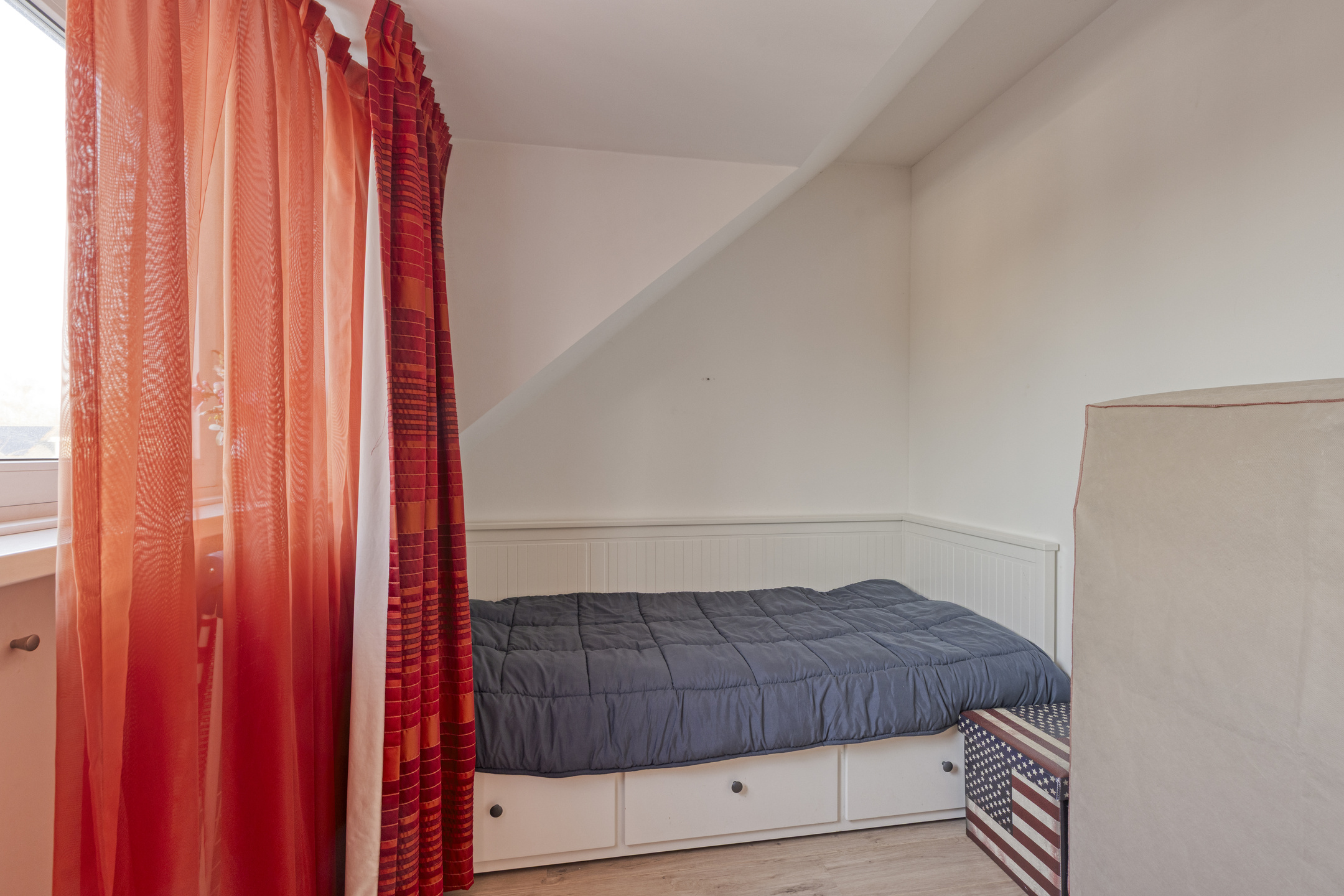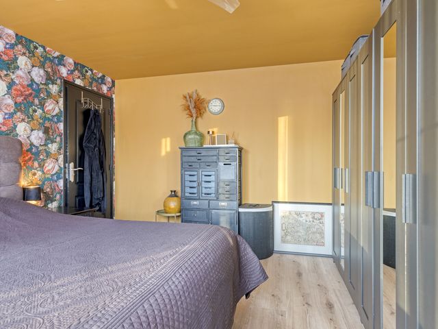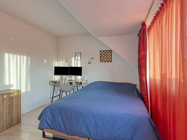 De 4e, verrassende slaapkamer met een slaap-/chillruimte, heeft een forse dakkapel aan de voor & achterzijde. Door de 2 kunststoffen dakkapellen en de handige knieschotten wordt het woonoppervlak behoorlijk vergroot.