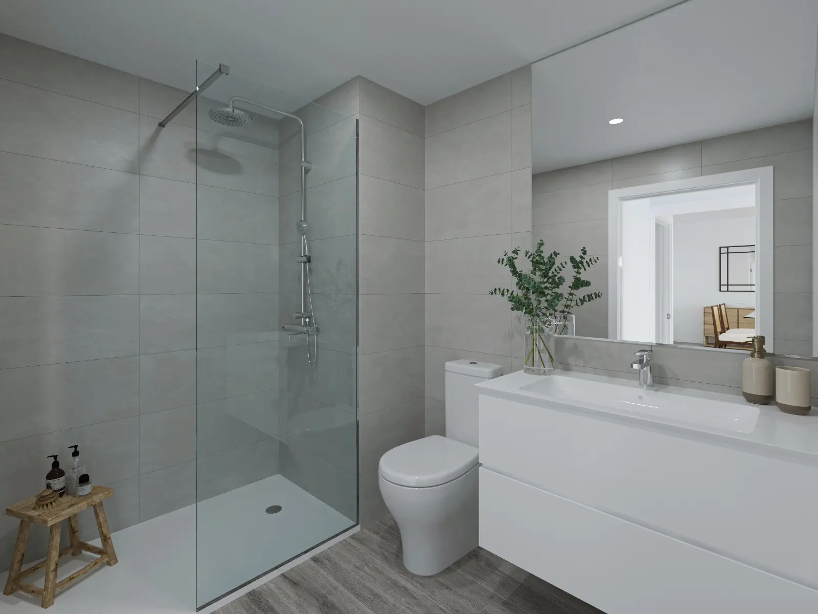 De moderne appartementen hebben drie slaapkamers en twee badkamers, en een volledig uitgeruste open keuken die verbonden is met de woonkamer die uitkomt op het buitenterras. De appartementen zijn uitstekend afgewerkt met hoogwaardige materialen, waardoor elke kamer een harmonieuze en comfortabele leefomgeving heeft.
