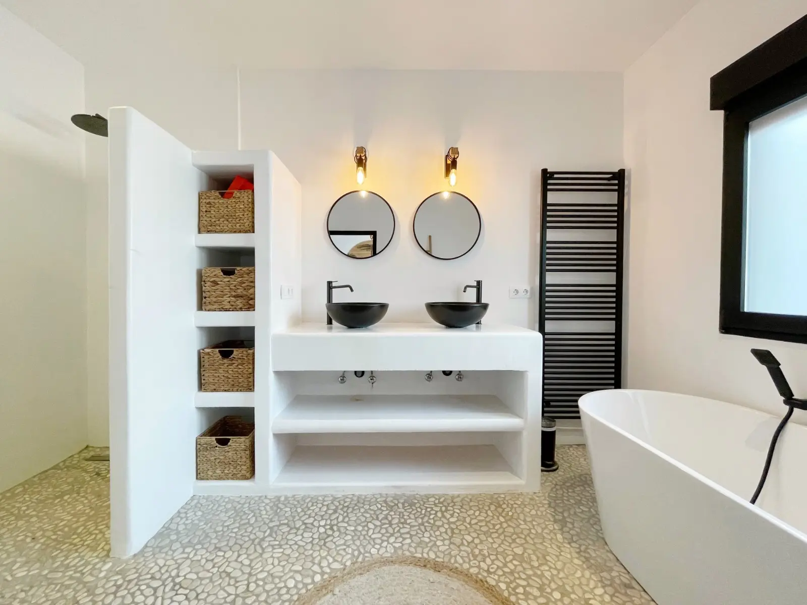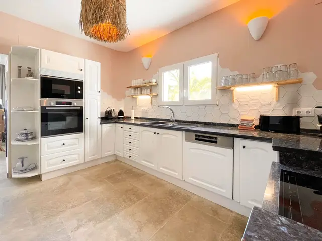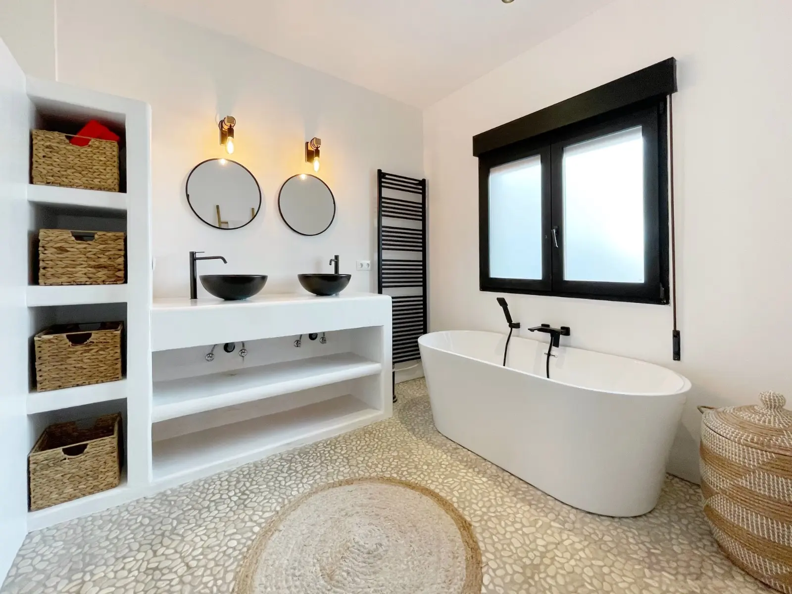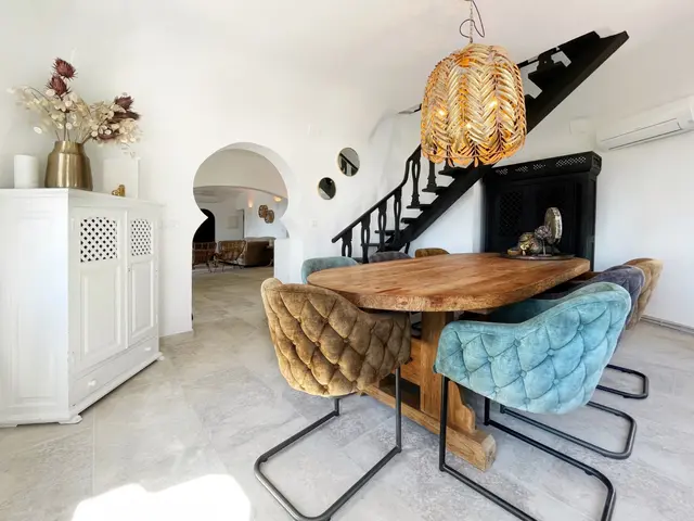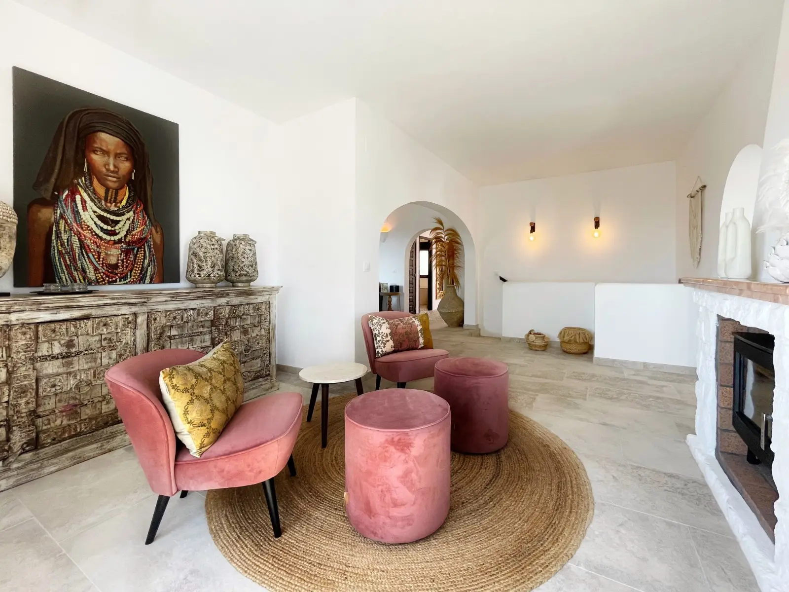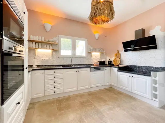 Ruime, heel gezellige woning in de populaire wijk Benimeit met een weids uitzicht over zowel het groen en het centrum van Moraira als het schitterende blauw van de Middellandse Zee. Opvallend detail zijn de ramen in Arabische stijl en de groene dakpannen die de villa een unieke uitstraling geven. Verder vinden we 2 woonlagen, diverse terrassen, een groot zwembadterras met aangrenzend een leuke overdekte lounge/bar ruimte, met het heerlijke zeezicht vanuit alle ruimtes. Tevens biedt de woning nog een aparte wasruimte en een ruime opslagruimte.
