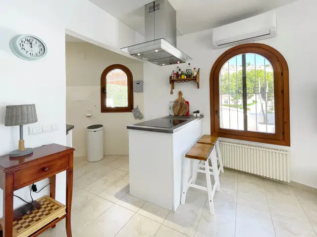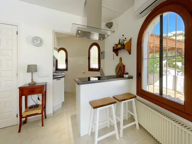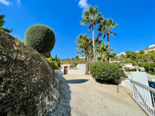 Wij presenteren u deze mooie mediterrane gelijkvloerse villa op een vlak kavel in het rustige en groene gebied Benimeit in Moraira. Ideaal voor mensen die een makkelijk te onderhouden woning met rust, ruimte en comfort zoeken. De woning is gelegen op een ruim en vlak kavel van 849 m2 aan een rustige weg met enkel bestemmingsverkeer op nog geen 8 autominuten van Moraira centrum en het strand. Bij het betreden van het omheinde perceel is er voldoende ruimte om meerdere wagens te parkeren op eigen terrein. Wat direct opvalt zijn de mooie volwassen palmen die de mediterrane sfeer van de woning accentueren.