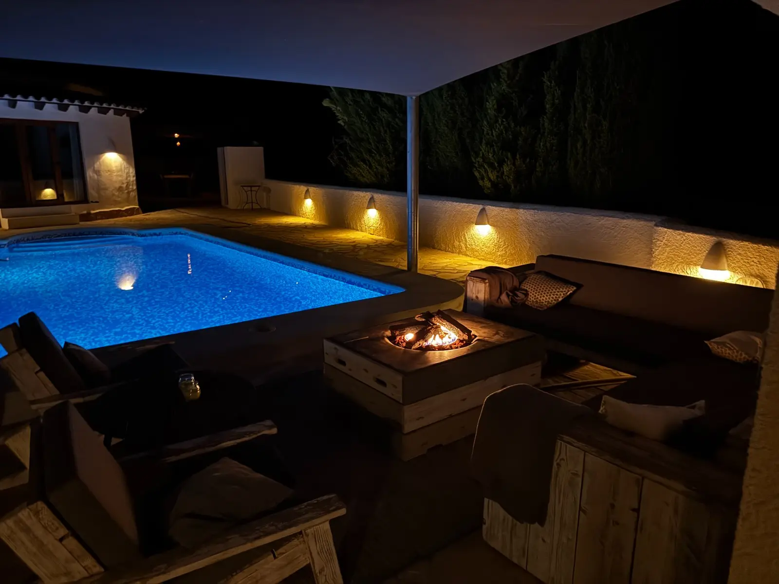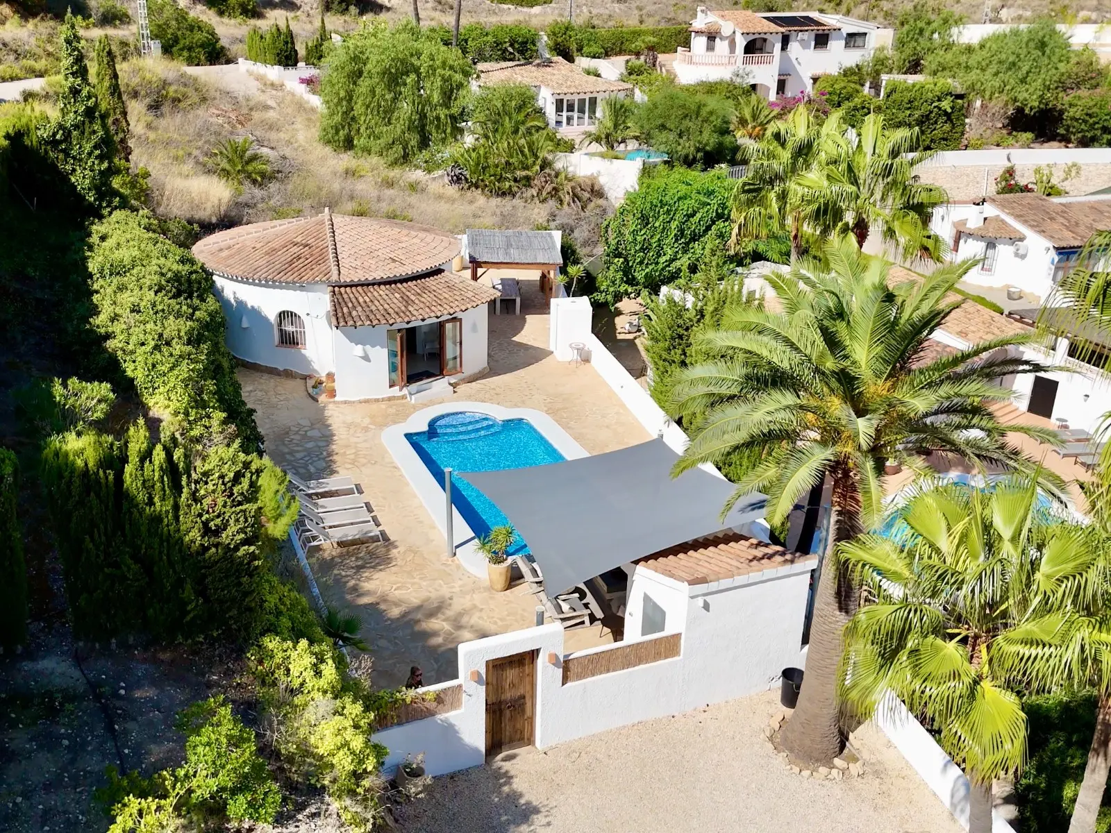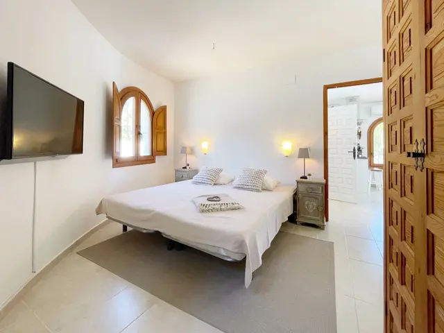 Via een karakteristieke houten poort betreden we het royale zwembadterras met een goed formaat zwembad. Hier vindt u ook een gezellige lounge hoek met een schaduwdoek zodat u zowel in de schaduw als in de zon in alle rust kunt vertoeven. Door de ligging geniet u volledige privacy rondom het zwembadterras. Bij het betreden van de gelijkvloerse, villa komen we in de woon-eetkamer uitgerust met een recent vervangen airconditioning en verwarming middels radiatoren in elke ruimte. Daarachter bevindt zich de open keuken, voorzien van alle benodigde apparatuur. Aan linkerzijde bevinden zich de twee slaapkamers die een moderne badkamer met douche, wastafel en toilet delen. De slaapkamers beschikken over karakteristieke elementen zoals de houten castellano deuren, inbouw kasten en houten luiken voor de ramen. Buiten bevindt zich nog een berging, een buitendouche en een houten pergola naast de keuken om heerlijk ‘s-morgens buiten te kunnen ontbijten of ‘s-avonds te kunnen dineren onder de sterrenhemel.