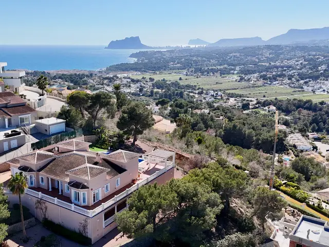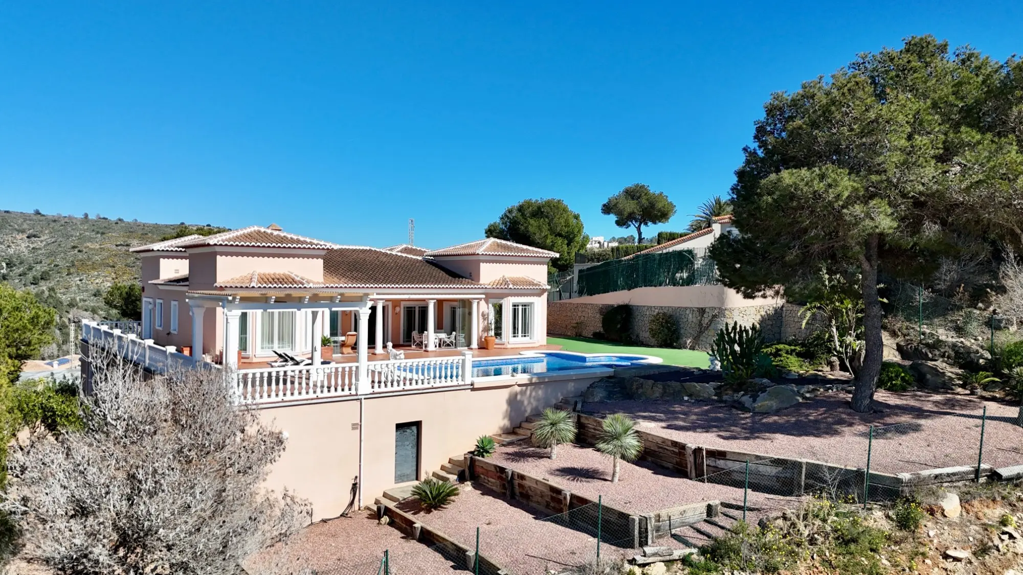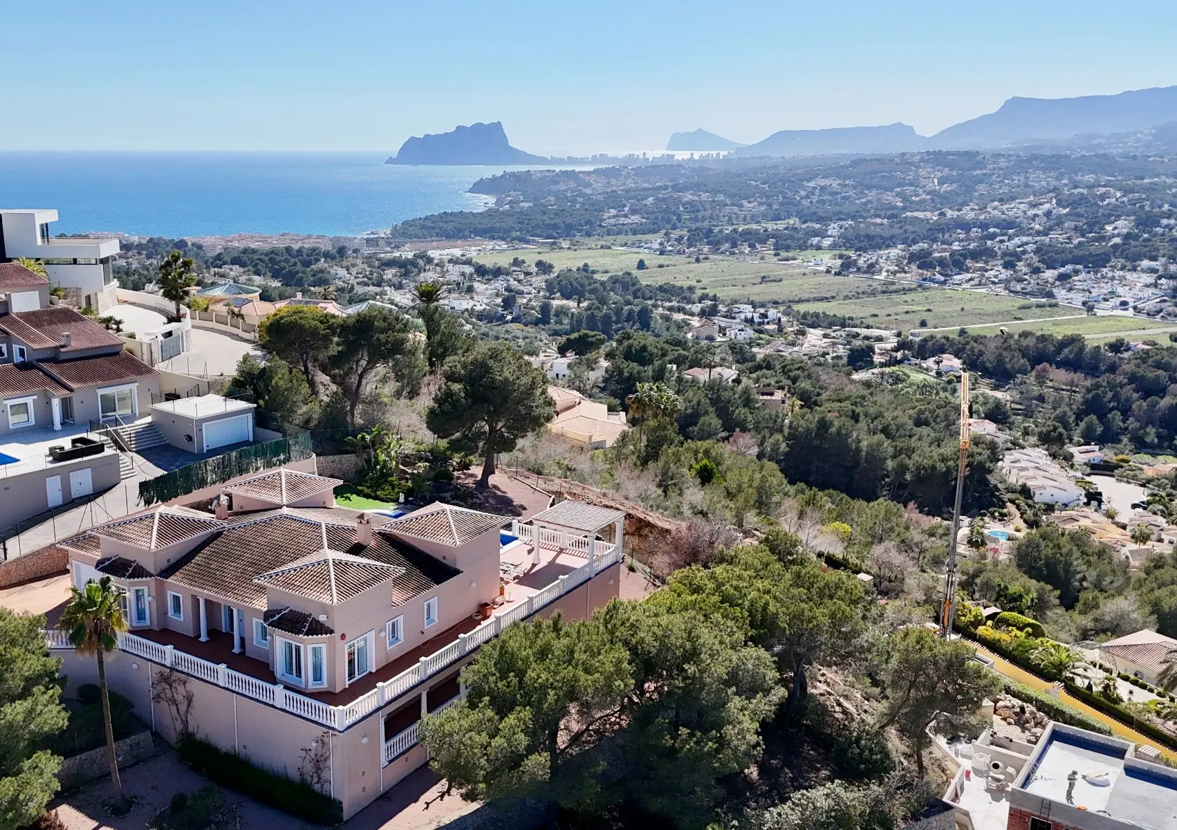 De woning met een oppervlakte van 427 m², is verdeeld over twee verdiepingen en biedt grote ruimtes, meerdere terrassen, een onderhoudsvriendelijke tuin en een privézwembad met een zuid-westelijke oriëntatie, van waaruit u kunt genieten van een spectaculair uitzicht op de zee, de Peñón de Ifach, de Sierra de Bernia en de Montgó.
