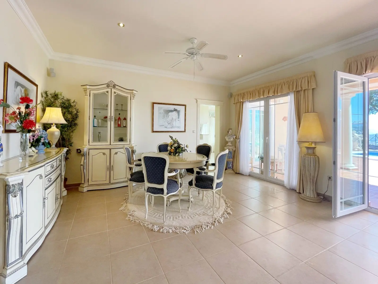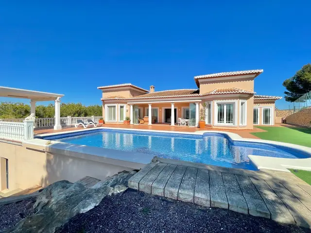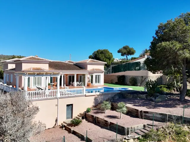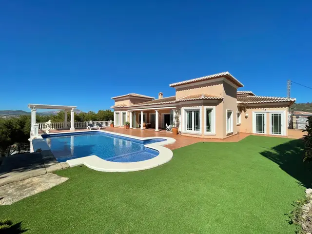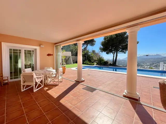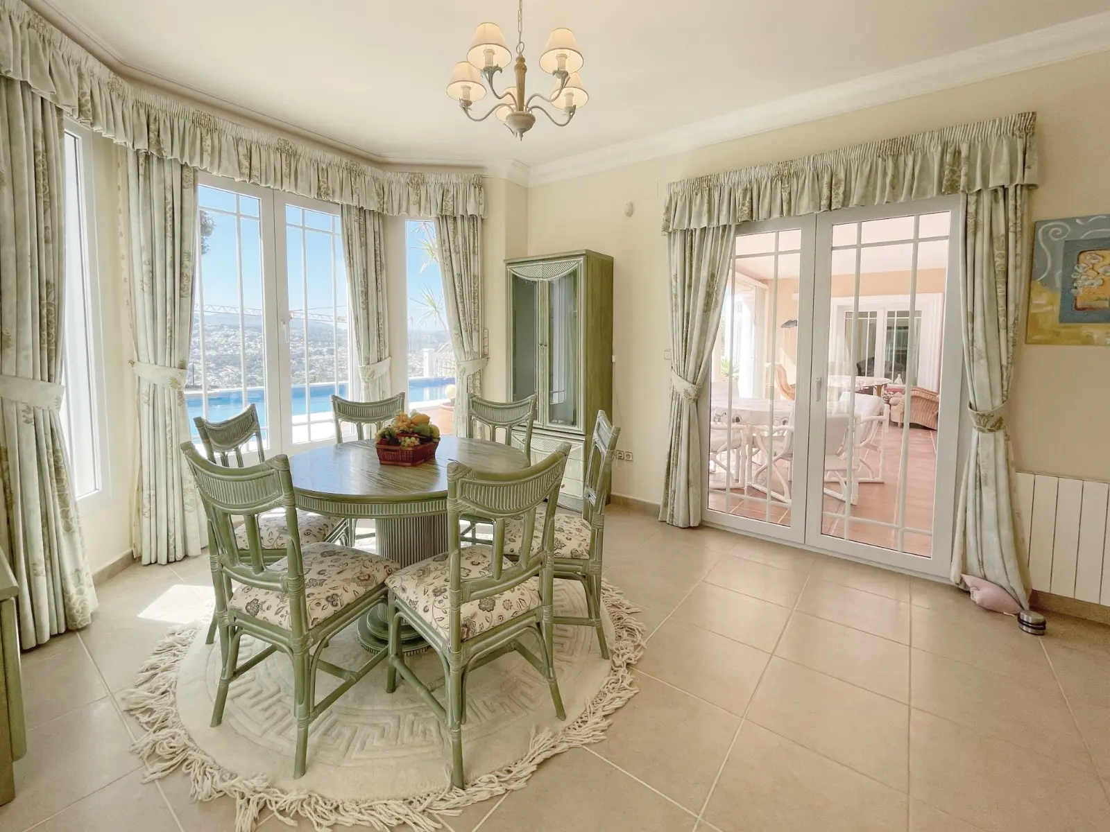 De woning met een oppervlakte van 427 m², is verdeeld over twee verdiepingen en biedt grote ruimtes, meerdere terrassen, een onderhoudsvriendelijke tuin en een privézwembad met een zuid-westelijke oriëntatie, van waaruit u kunt genieten van een spectaculair uitzicht op de zee, de Peñón de Ifach, de Sierra de Bernia en de Montgó.