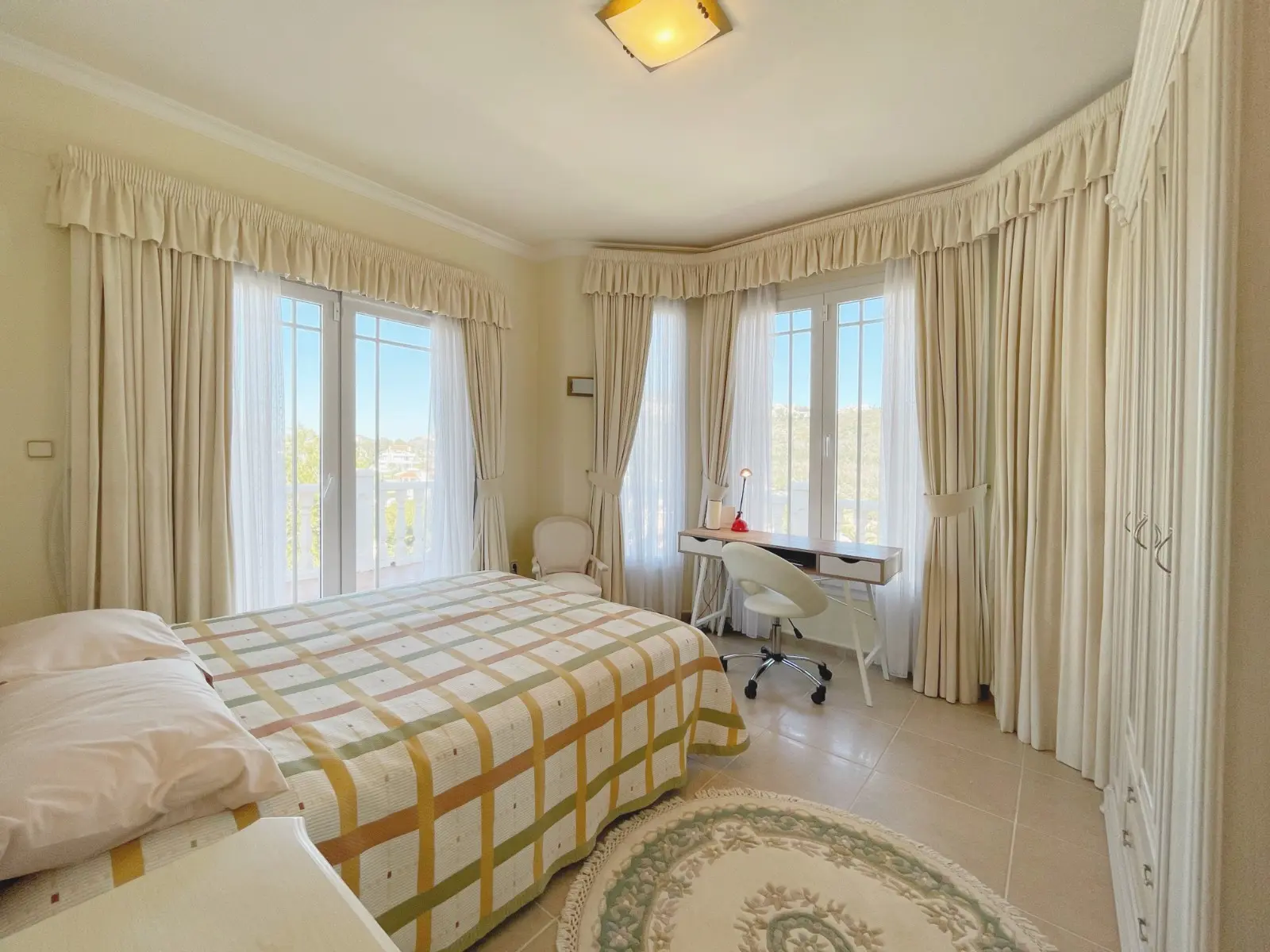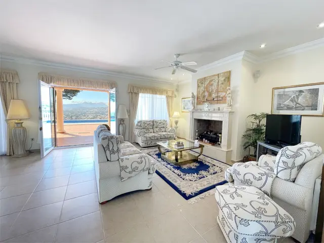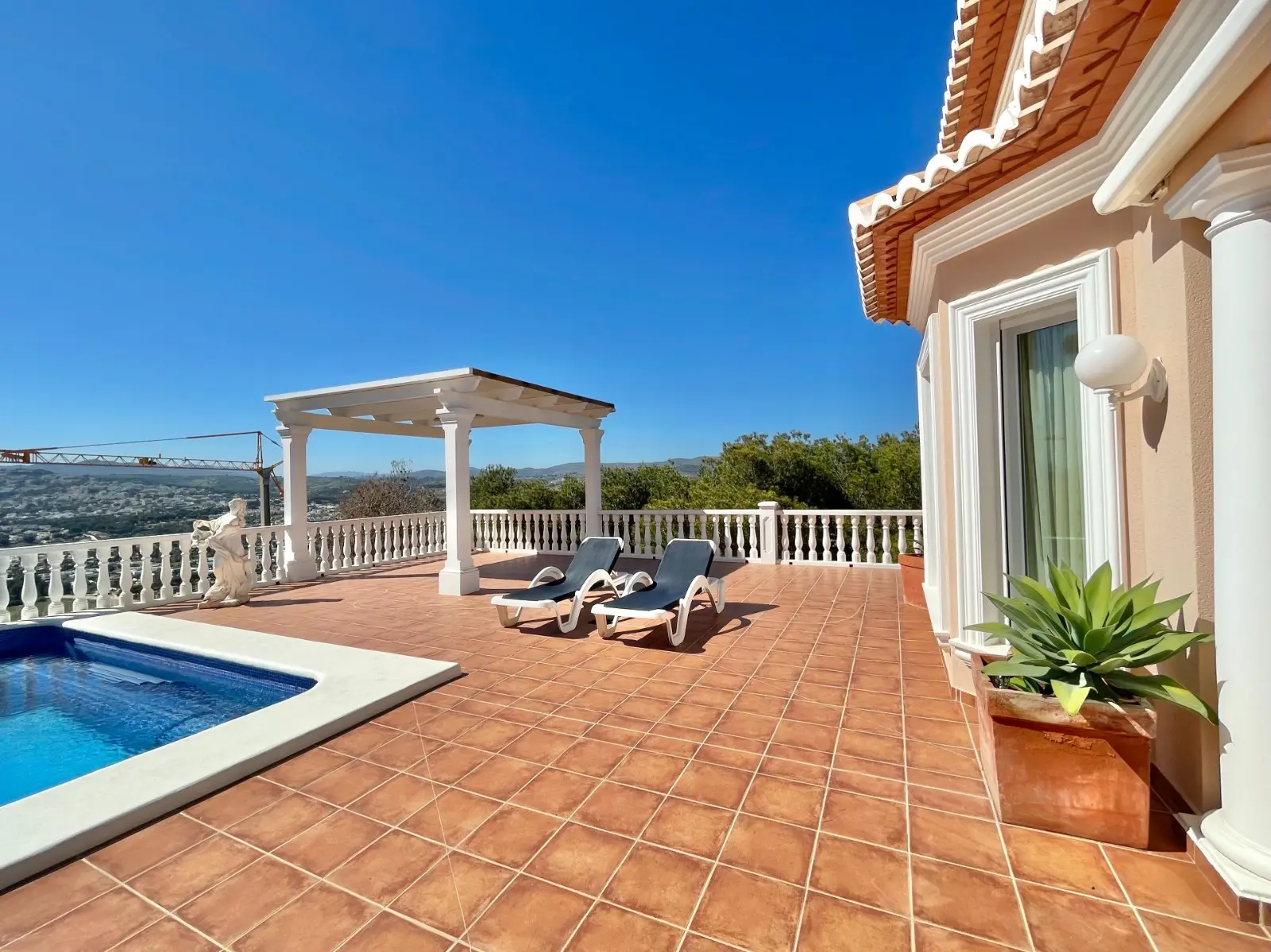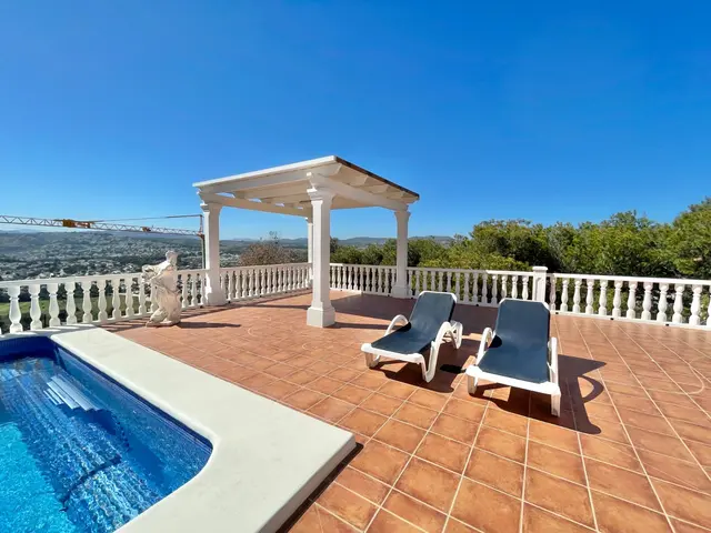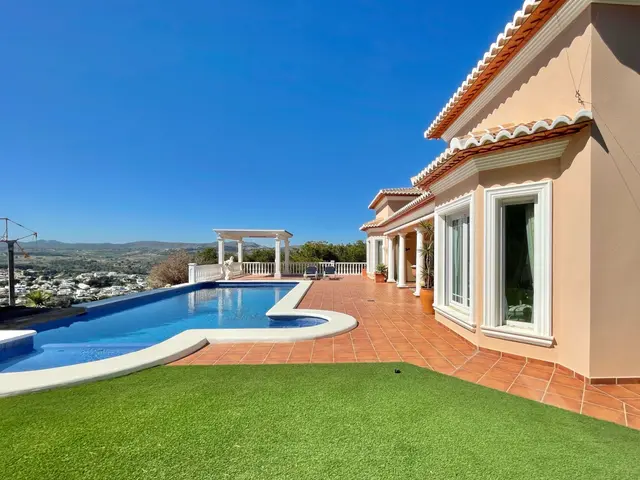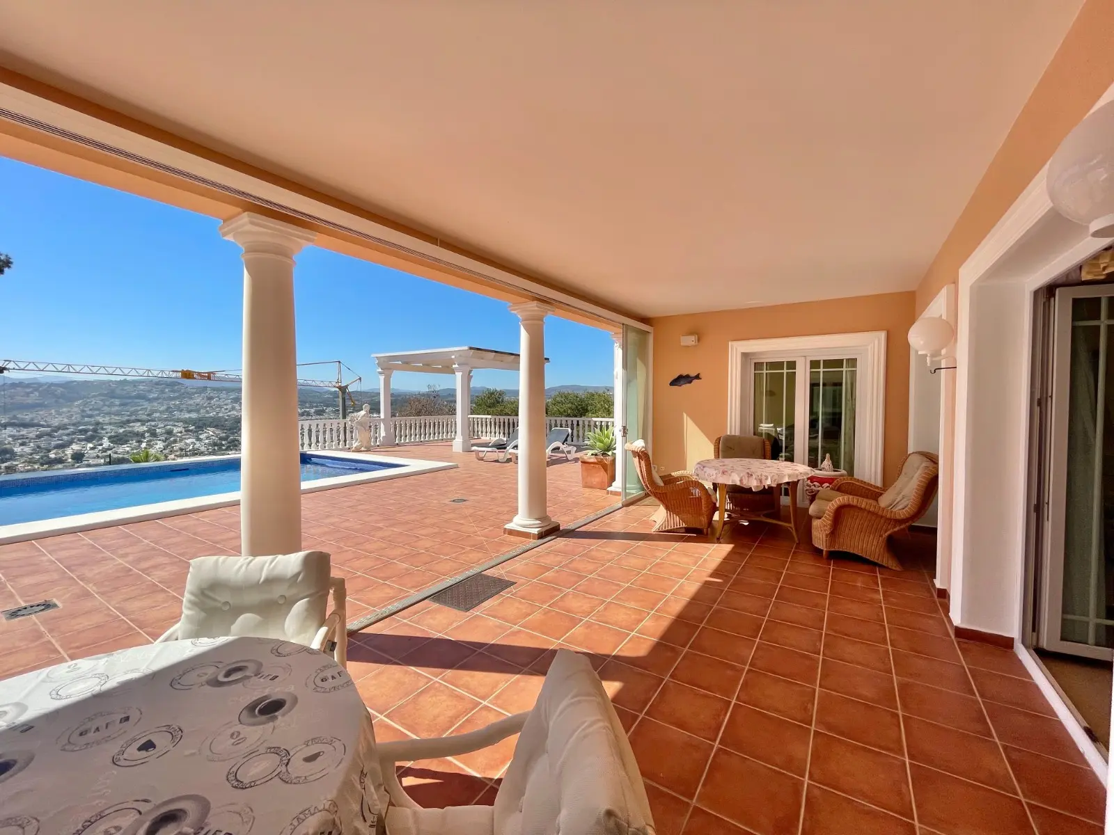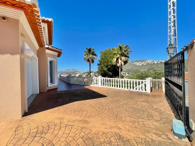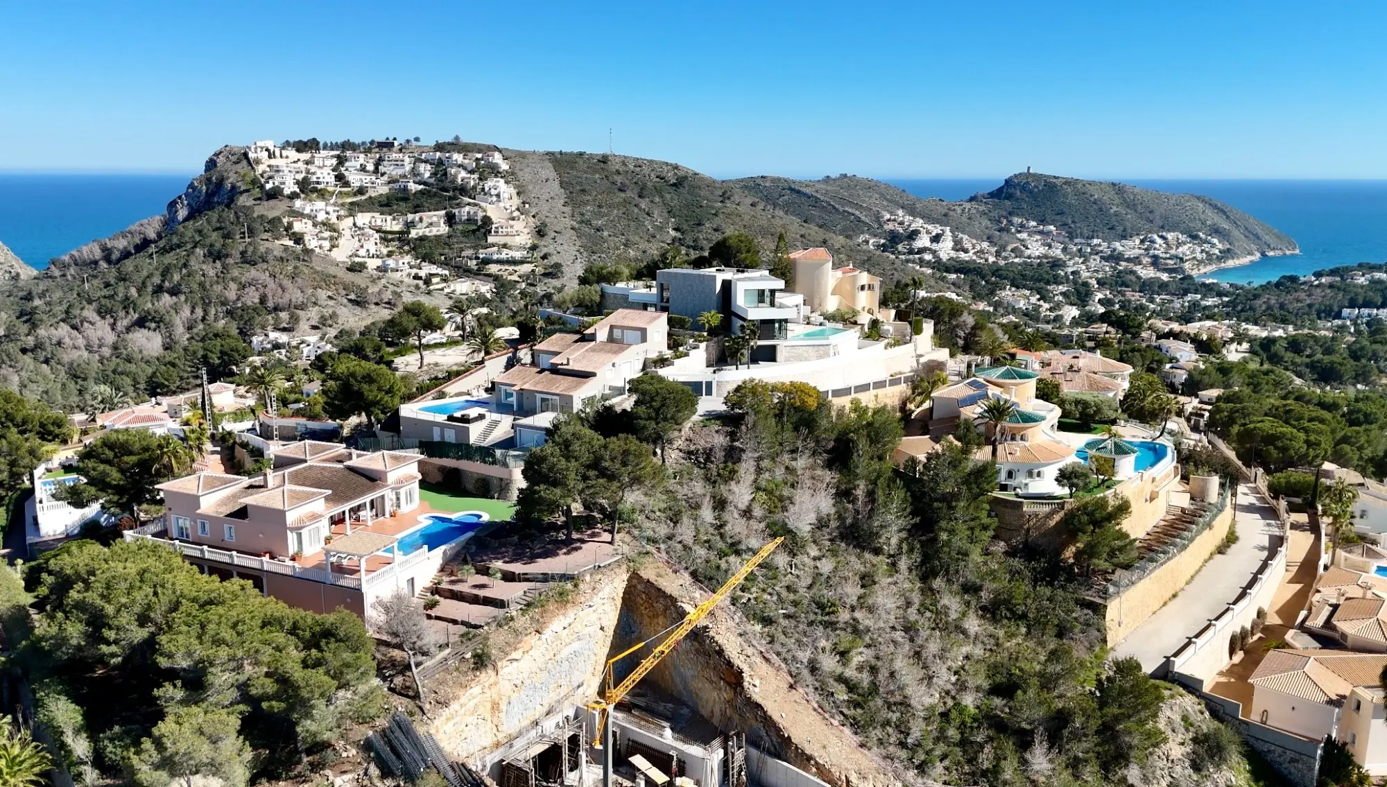 Spectaculaire villa te koop in de urbanisatie Arnella in Moraira, met adembenemend uitzicht op zee en de vallei. Deze villa is gebouwd met hoogwaardige materialen en ligt op een groot perceel van ruim 2.000 m² op de top van een berg, aan het einde van een doodlopende weg, wat absolute privacy en rust biedt, terwijl het slechts enkele minuten rijden is van het strand van El Portet en het centrum van Moraira.