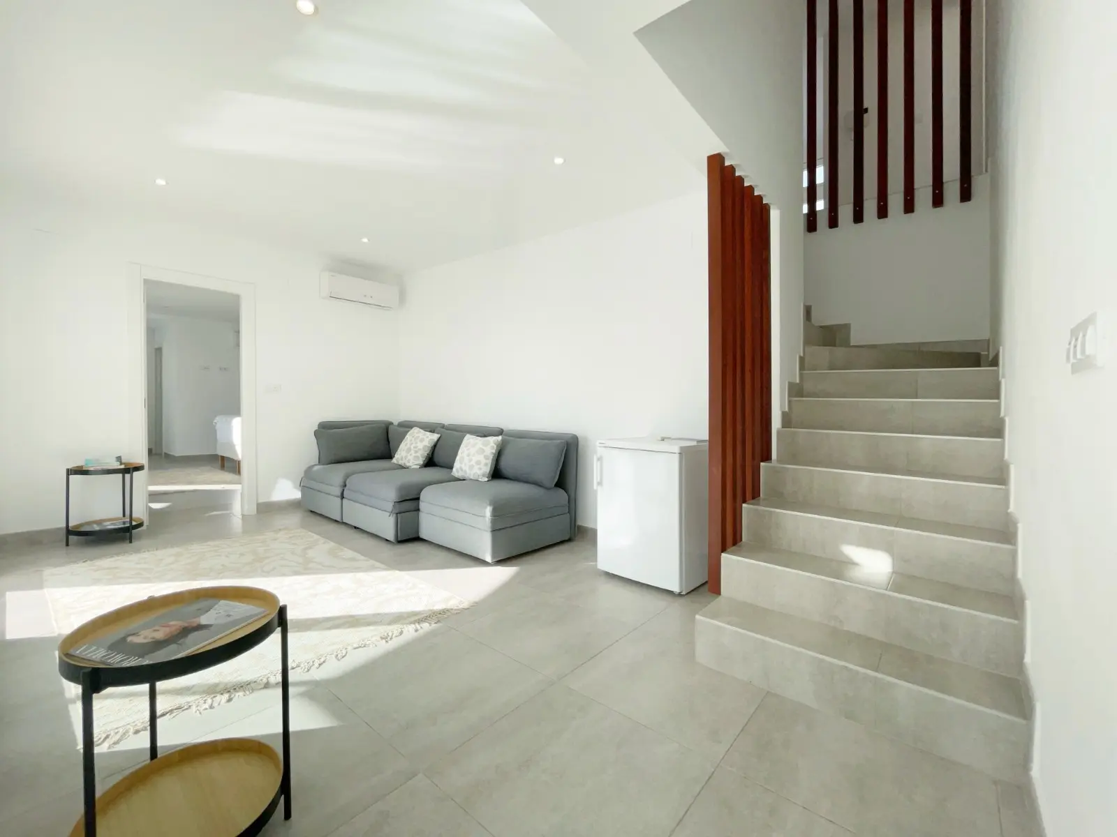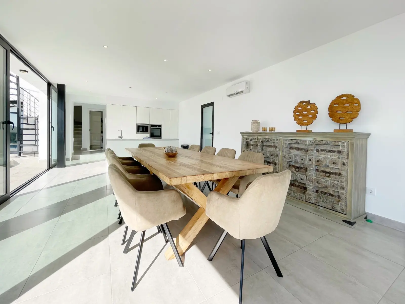 Via een interne trap bereik je de begane grond, waar zich nog een ruime slaapkamer met en-suite badkamer bevindt. De lichte woon- en eetkamer vormt het hart van de woning, met grote raampartijen die het binnen- en buitenleven met elkaar verbinden. De moderne open keuken met kookeiland is praktisch ingericht en volledig uitgerust. Op deze verdieping vind je tevens een aparte wasruimte, een extra badkamer en een multifunctionele ruimte die kan worden gebruikt ontspanningsruimte, kantoor,..