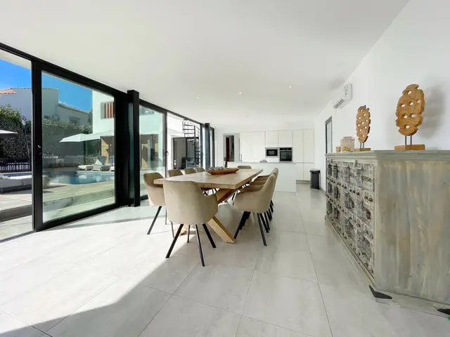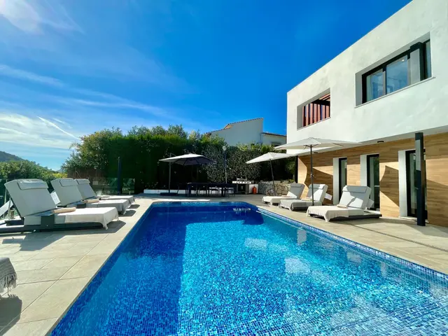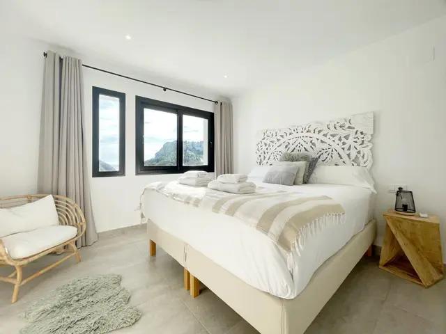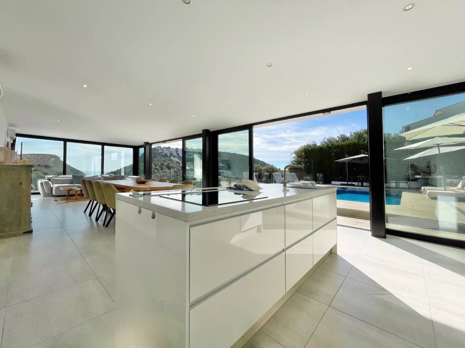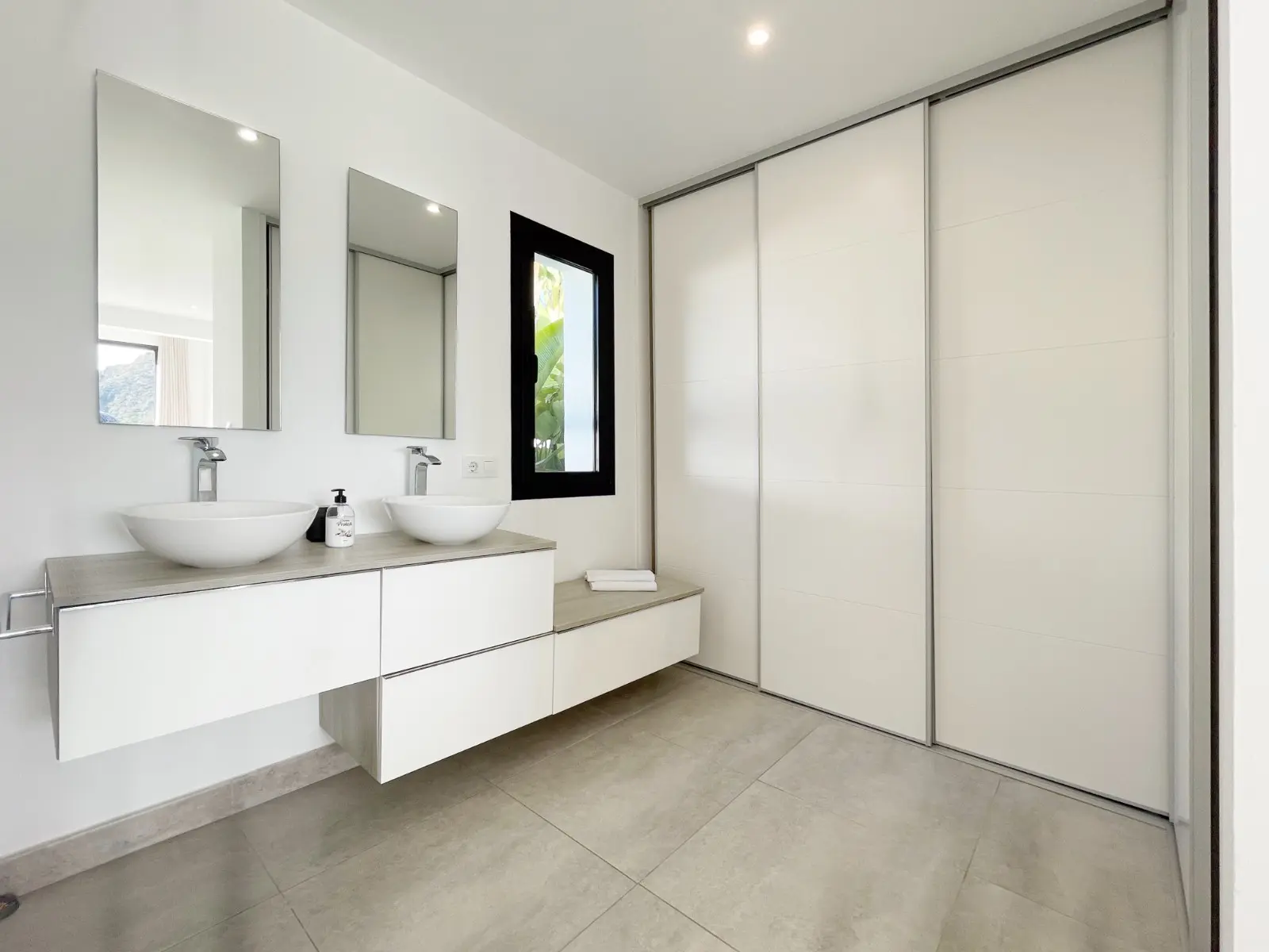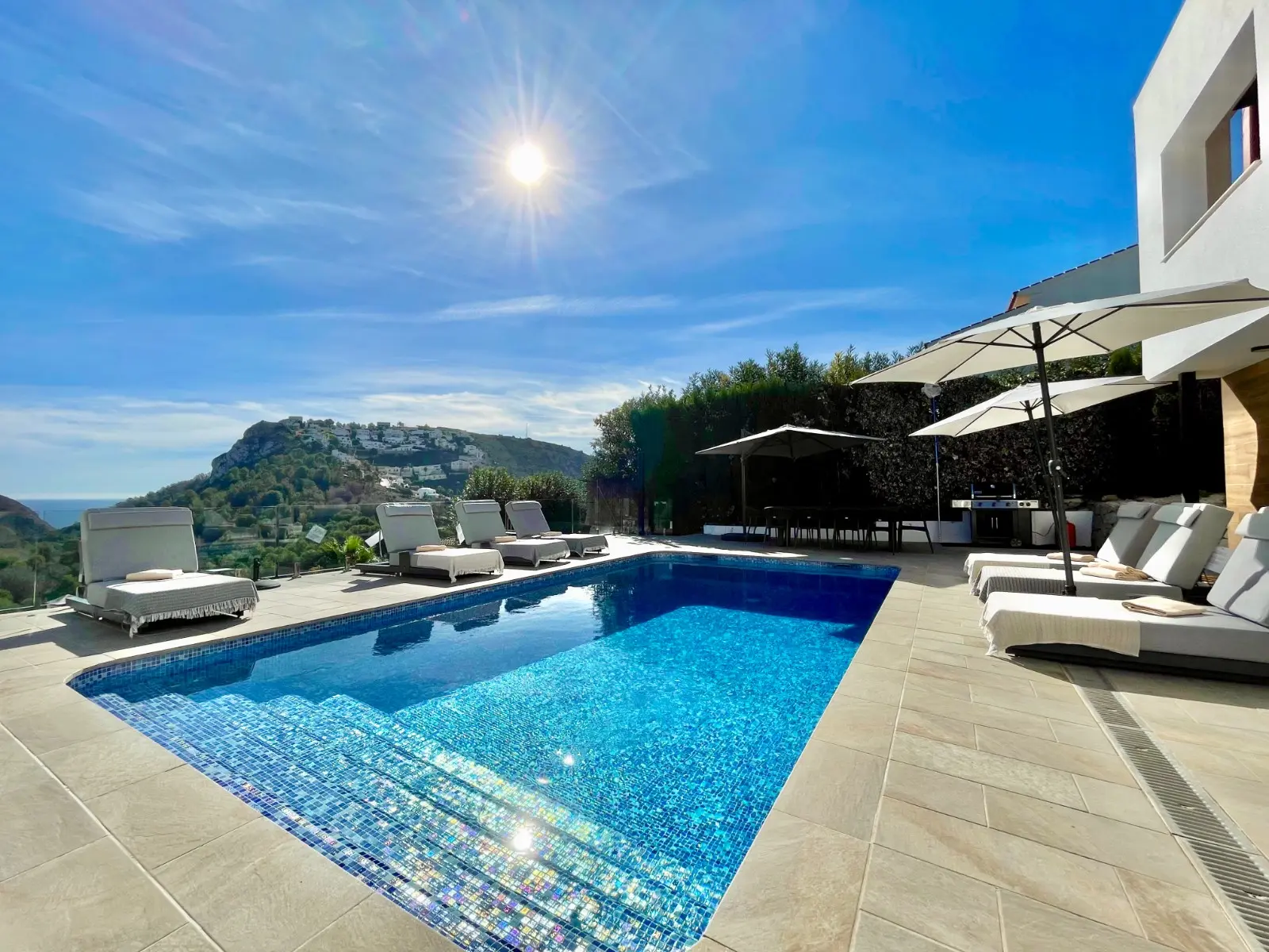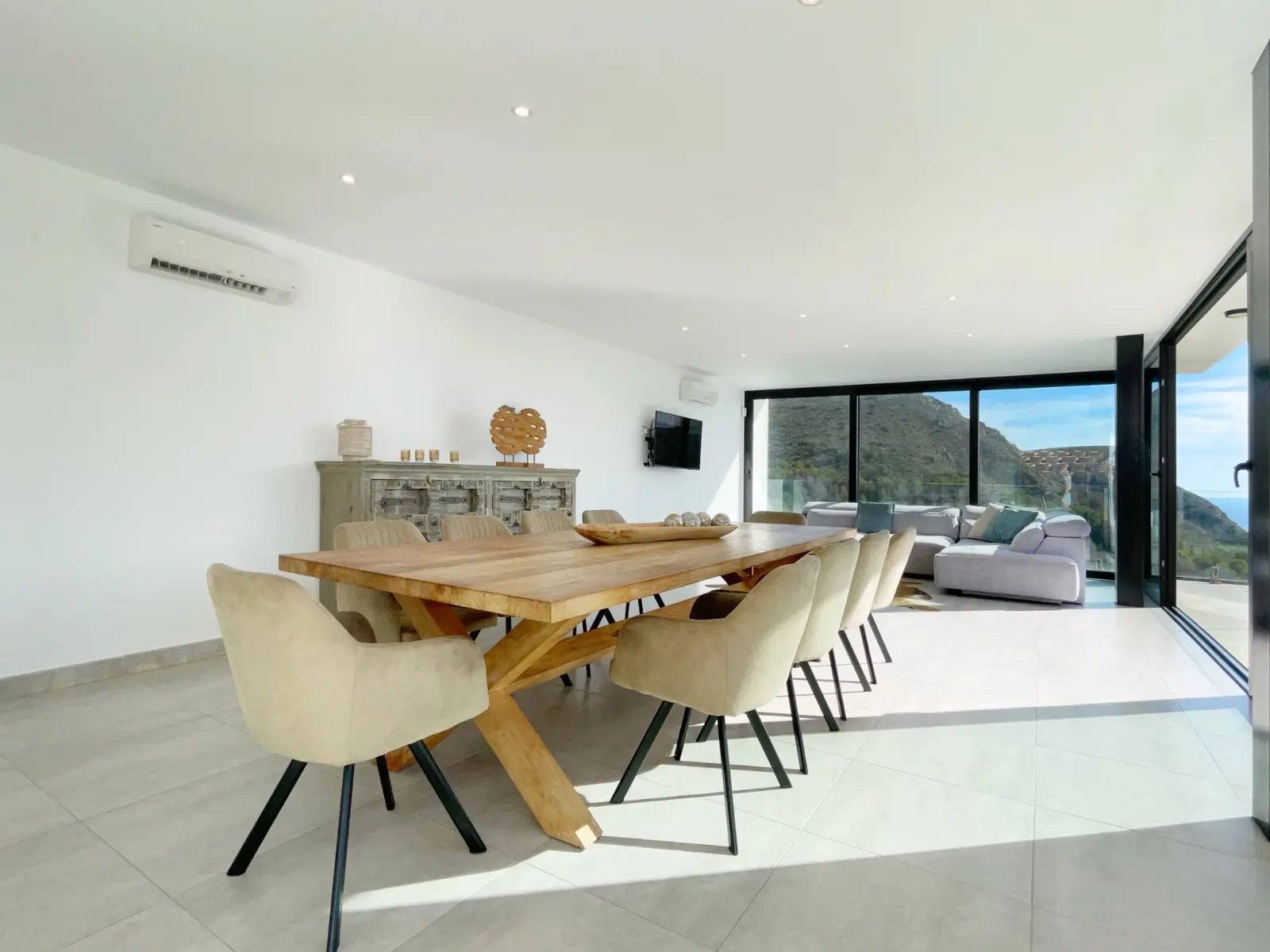 Ontdek deze moderne villa te koop in Moraira, gelegen op een ideale locatie met een fraai uitzicht over de vallei, de Zee en de baai van El Portet. De woning combineert een modern design met optimaal wooncomfort. Ideaal voor wie op zoek is naar een ruime woning aan de Costa Blanca. De woning beschikt over vier ruime slaapkamers en vier moderne badkamers, verdeeld over twee verdiepingen.