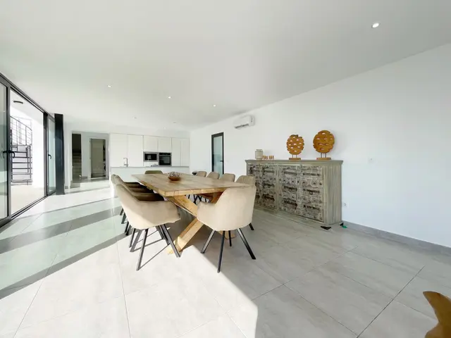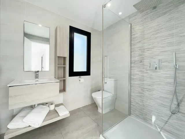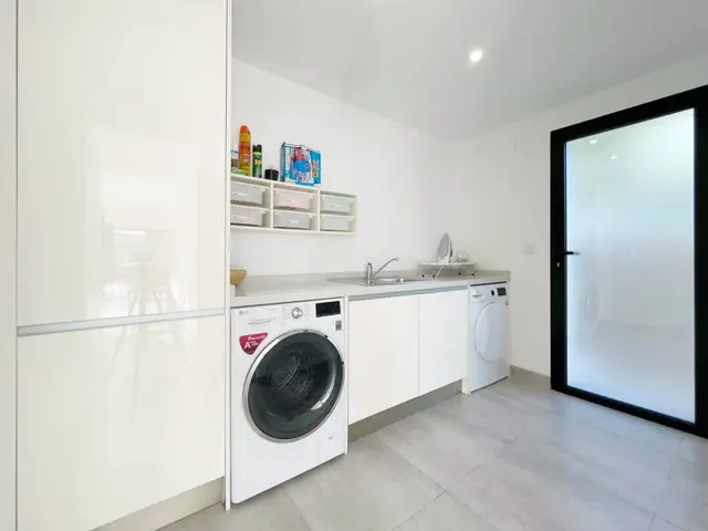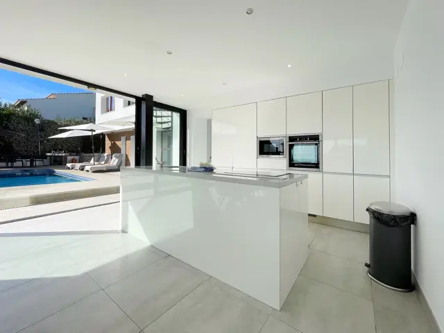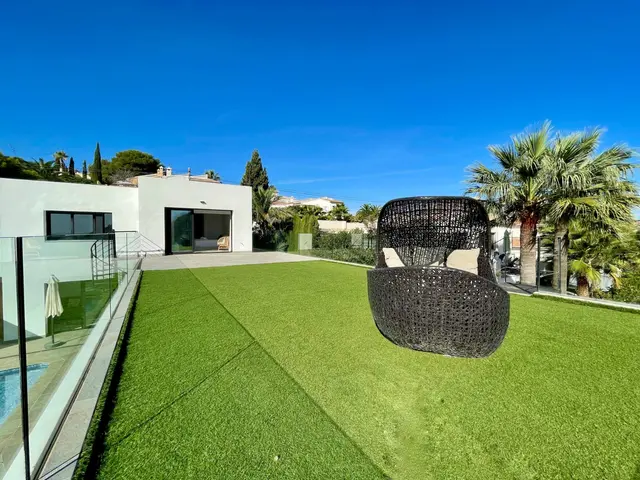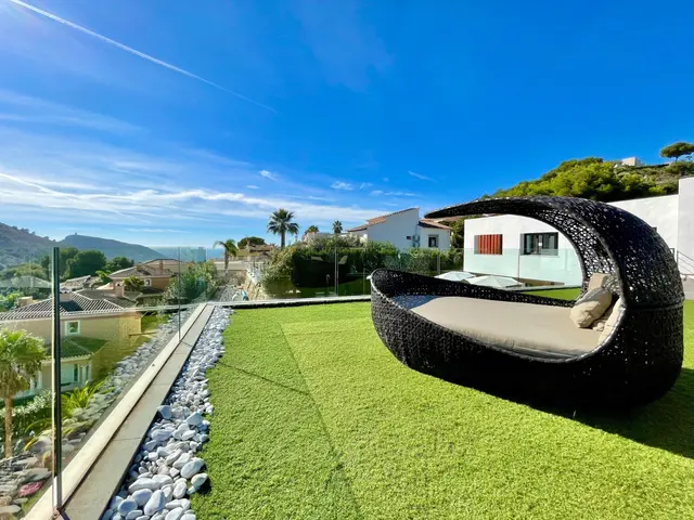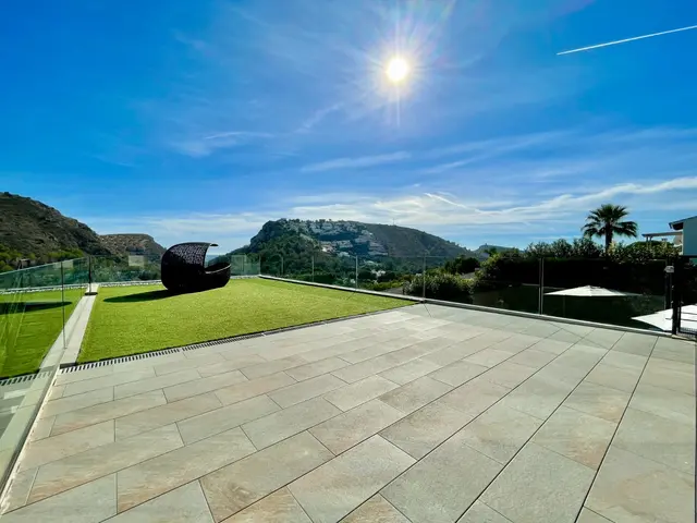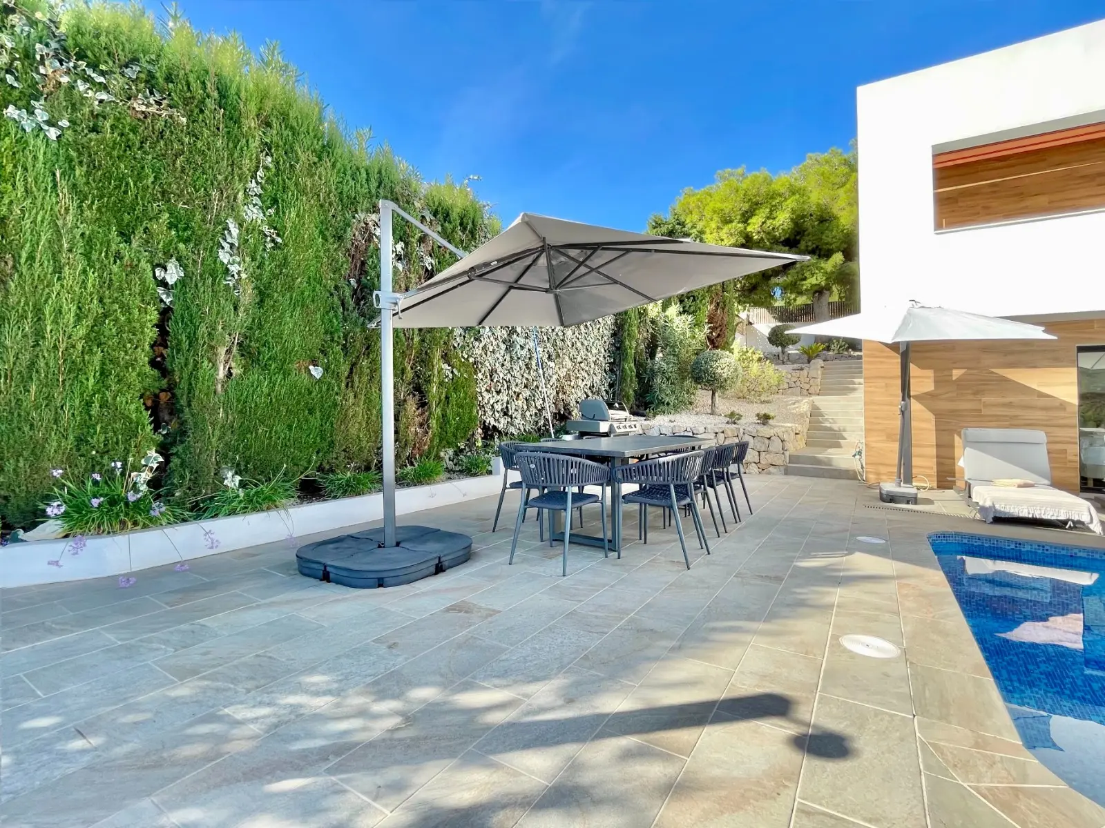 Een ruim zonneterras met privézwembad biedt de perfecte plek om te ontspannen en te genieten van het heerlijke klimaat aan de Costa Blanca. Het zwembad beschikt over verwarming en een buitendouche, zodat je het hele jaar door comfortabel kunt zwemmen.Er is ook een gezellige barbecuehoek, ideaal voor zomerse diners met uitzicht op zee. De tuin is onderhoudsvriendelijk aangelegd, wat zorgt voor een strak en verzorgd geheel. Daarnaast biedt het perceel voldoende parkeerruimte en een afsluitbare carport.