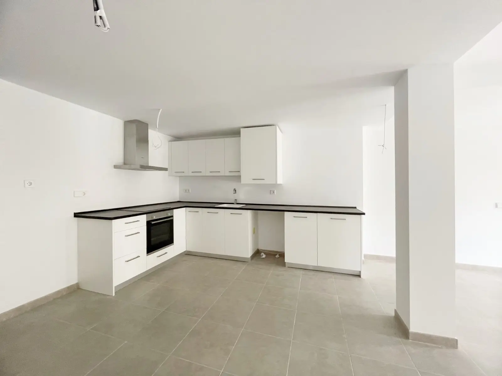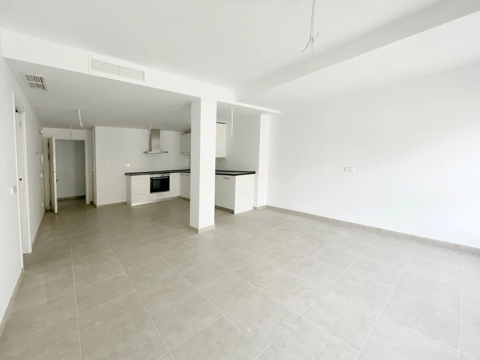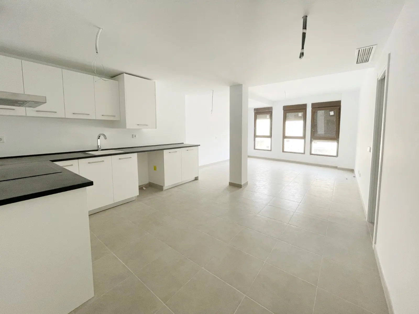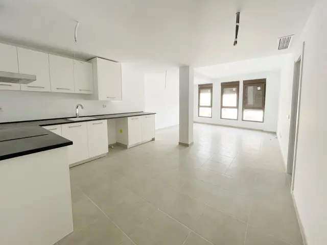 Het appartement met een oppervlakte van 87,68 m2 bestaat uit een ruime woonkamer met grote ramen en de keuken.