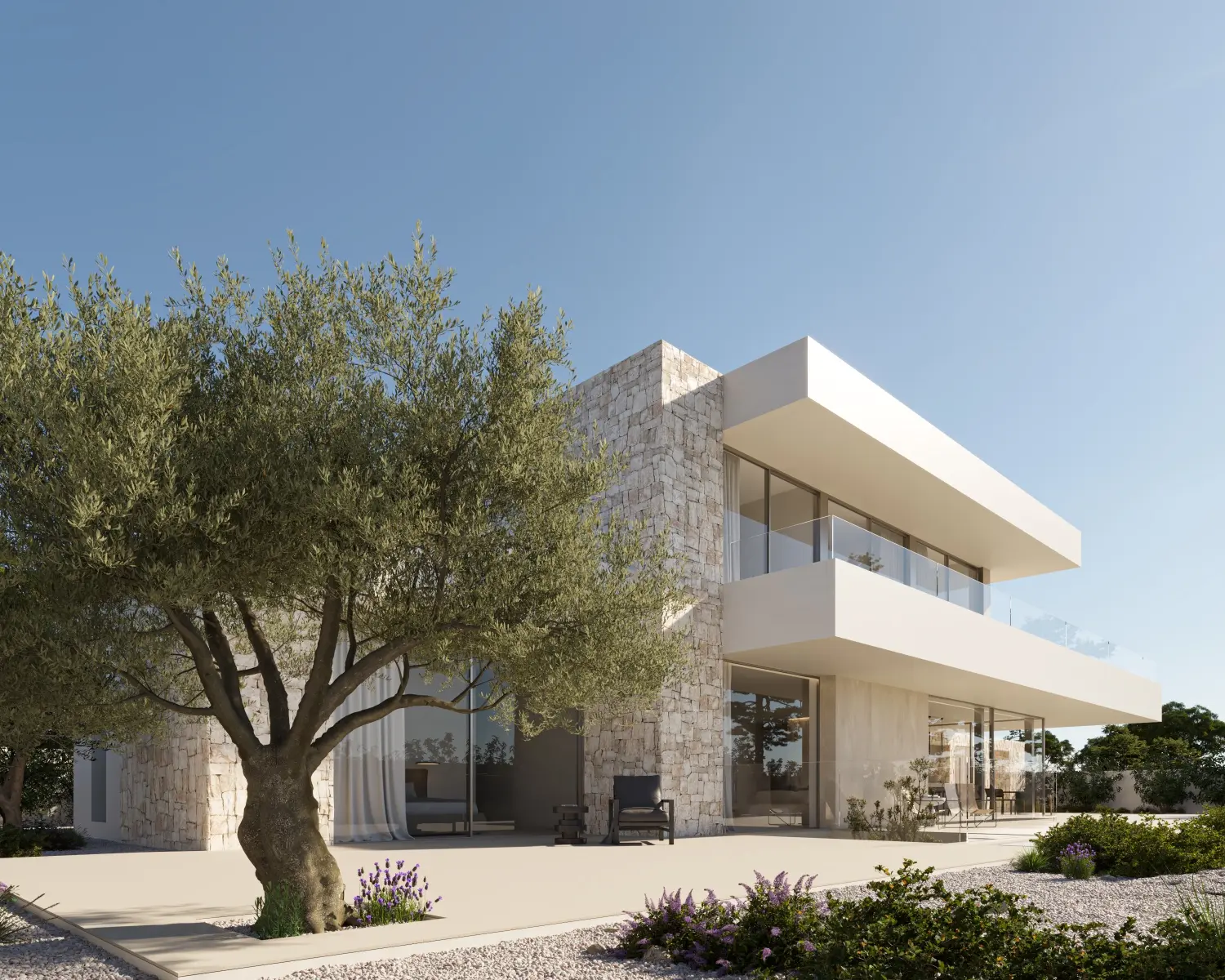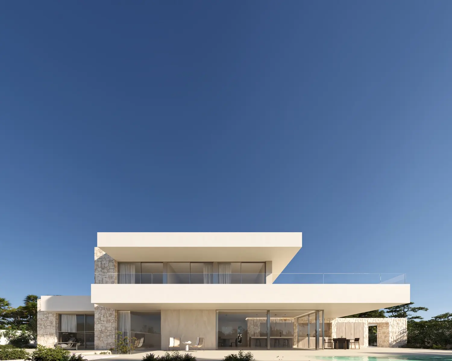Deze nieuw gebouwde villa ligt in de gekende wijk L'Andragó in Moraira, op slechts 350 meter van het strand van Cala Andragó en ongeveer 200 meter van de promenade naast de weg die leidt naar het dorp Moraira en de verschillende winkels en restaurants in de omgeving.