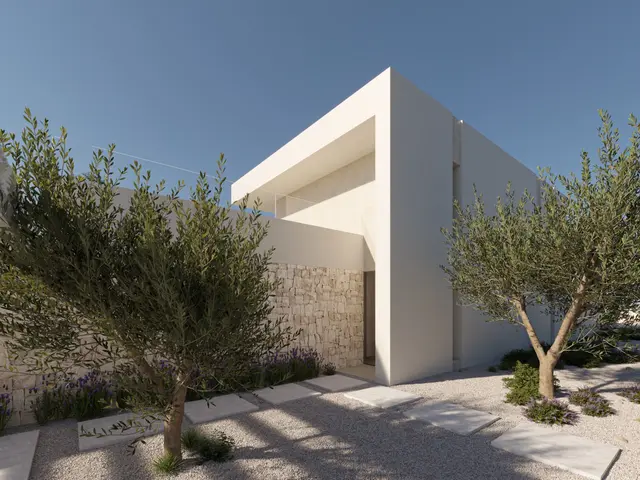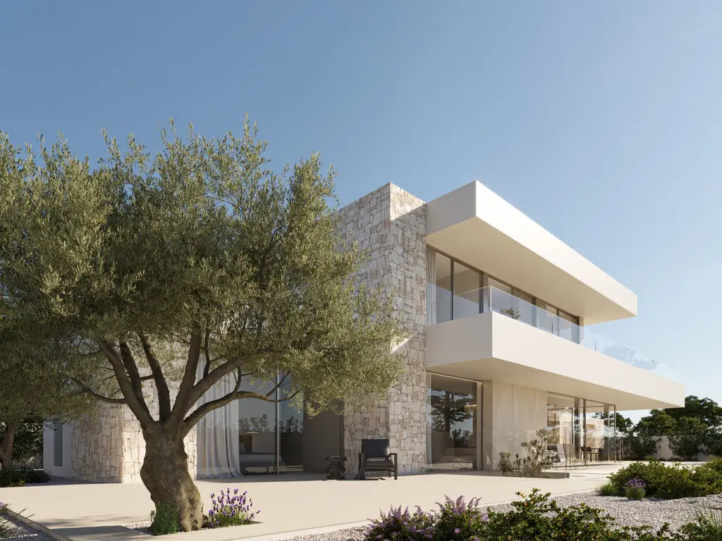 Dit luxueuze project met modern design heeft prachtig uitzicht op zee vanaf de bovenste verdieping, biedt veel rust omdat het in een doodlopende weg ligt en de hele dag zon omdat alles op het zuiden is georiënteerd. Het is gelegen op een vlak perceel van 808 m2 en heeft een bebouwde oppervlakte van 480 m2 verdeeld over 2 verdiepingen en een kelder.
