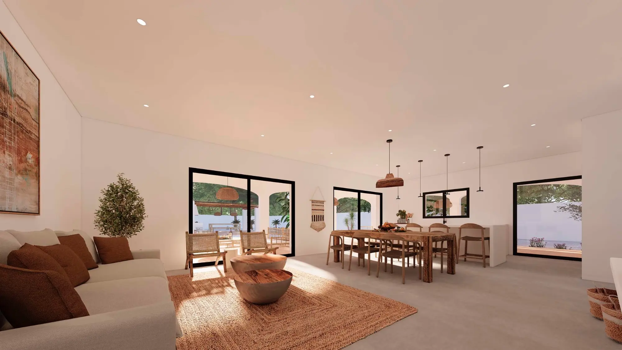 De villa bestaat uit een grote woon- en eetkamer met een volledig uitgeruste open keuken, vier slaapkamers, waarvan twee met een en-suite badkamer en een andere individuele familiebadkamer. Daarnaast is er ook een wasruimte/bijkeuken en een gastentoilet.