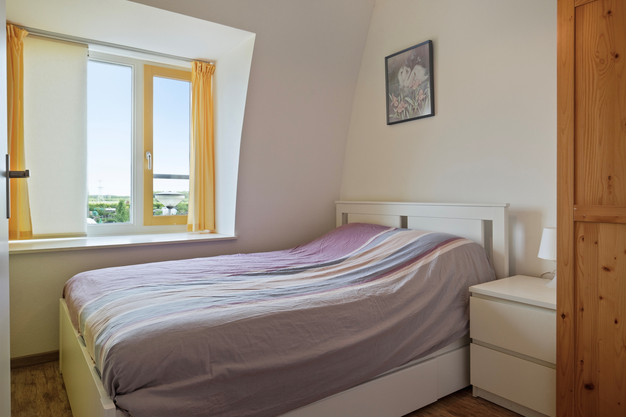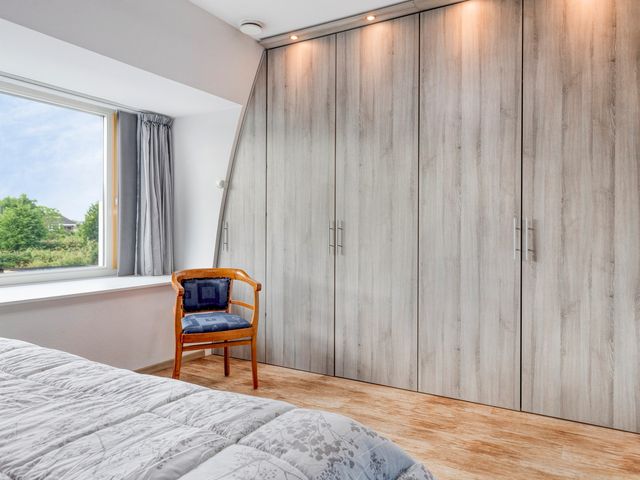 Ook deze ruime slaapkamer is voorzien van een pvc vloer en vloerverwarming.