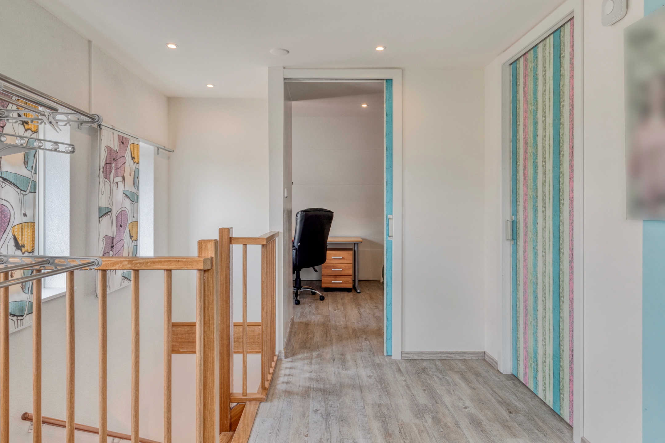 Op deze verdieping bevinden zich een overloop met toegang tot 3 slaapkamers, een moderne badkamer met sunshower en de trapopgang naar de 2e verdieping.