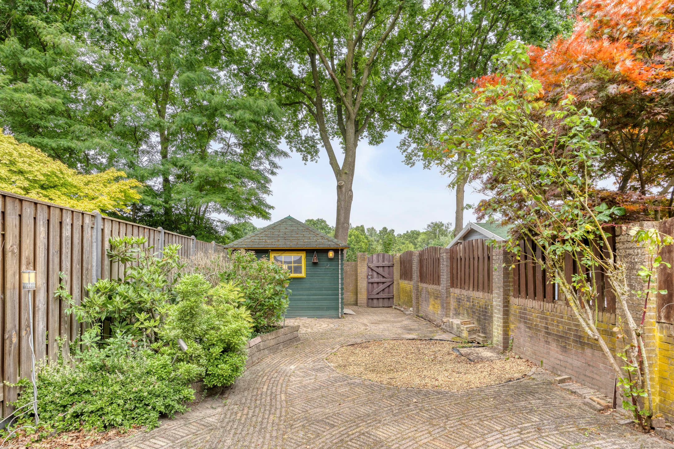 - Mooi onderhoudsvriendelijke achtertuin met houten berging