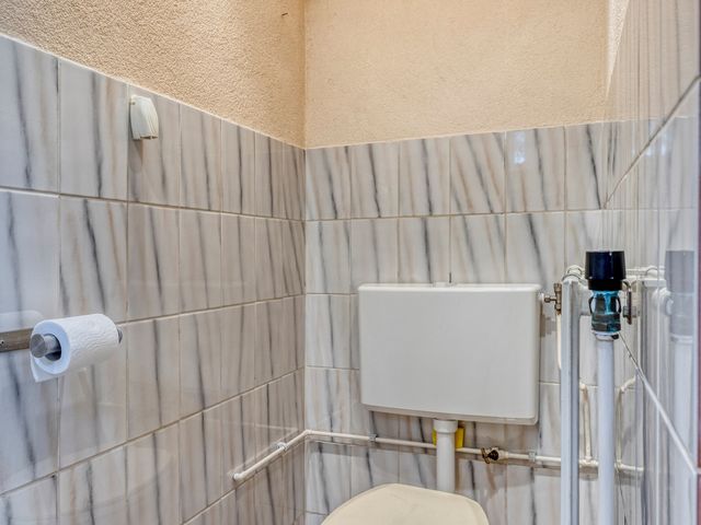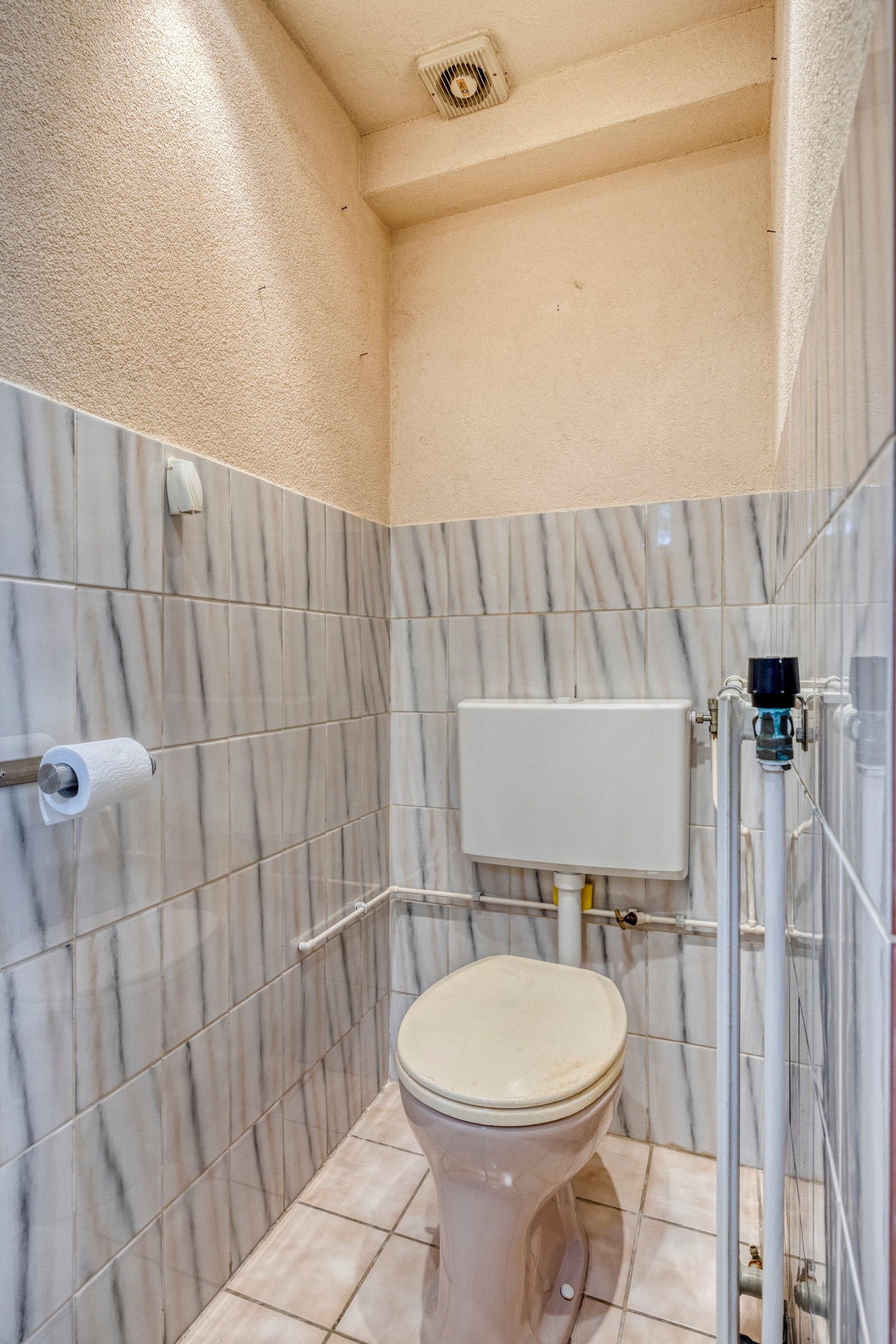 Het toilet is geheel betegeld en voorzien van mechanische ventilatie.