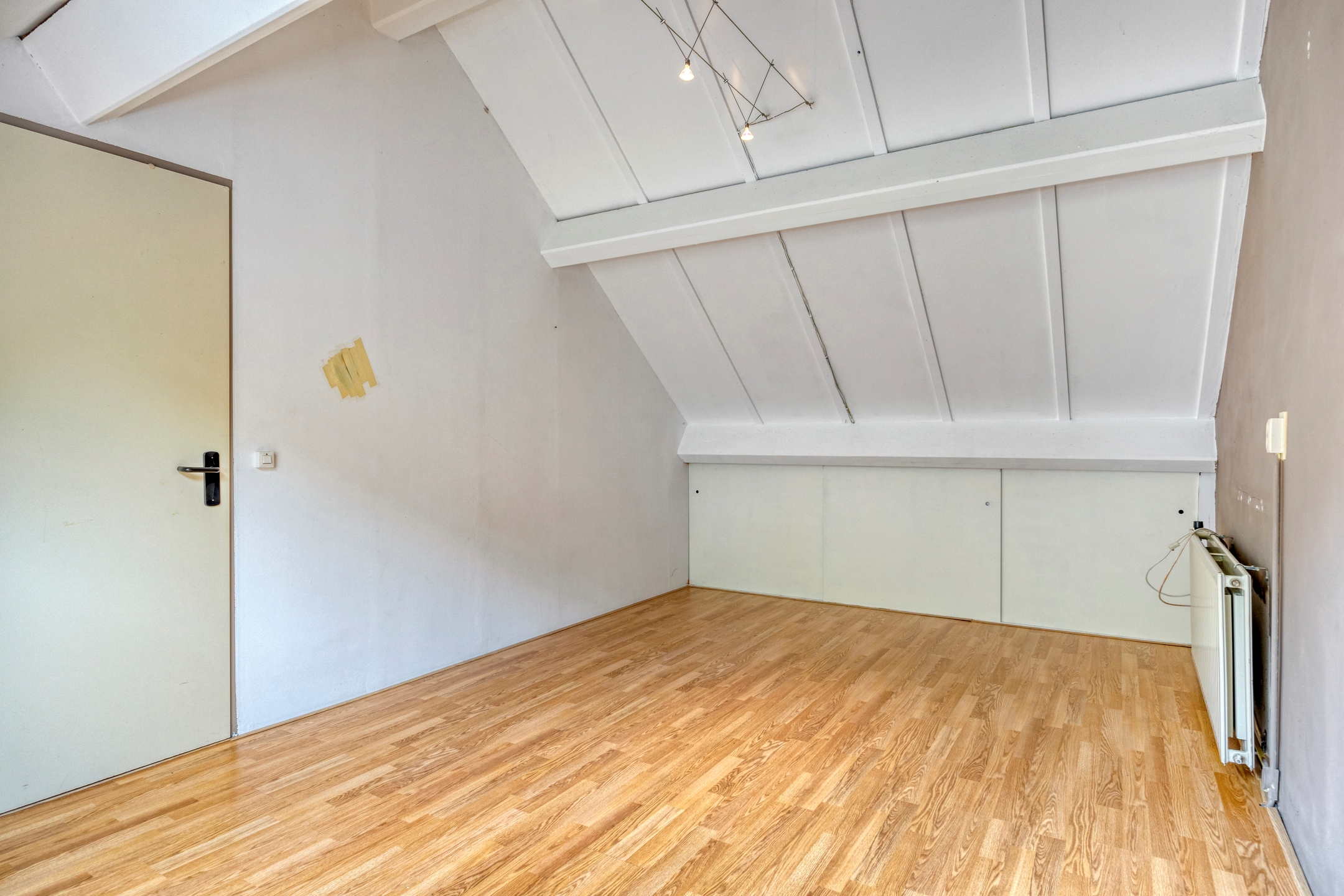 Door de hoge nokhoogte krijgt de kamer een ruim gevoel.