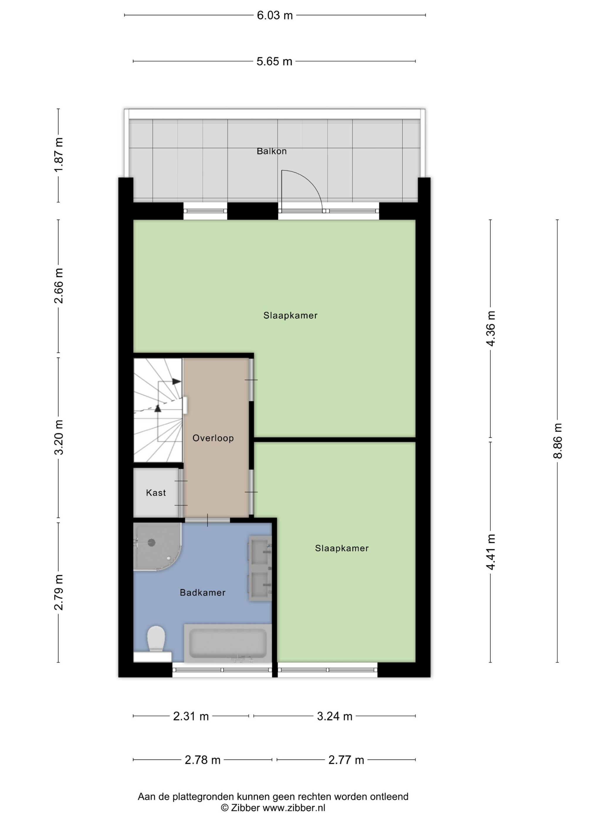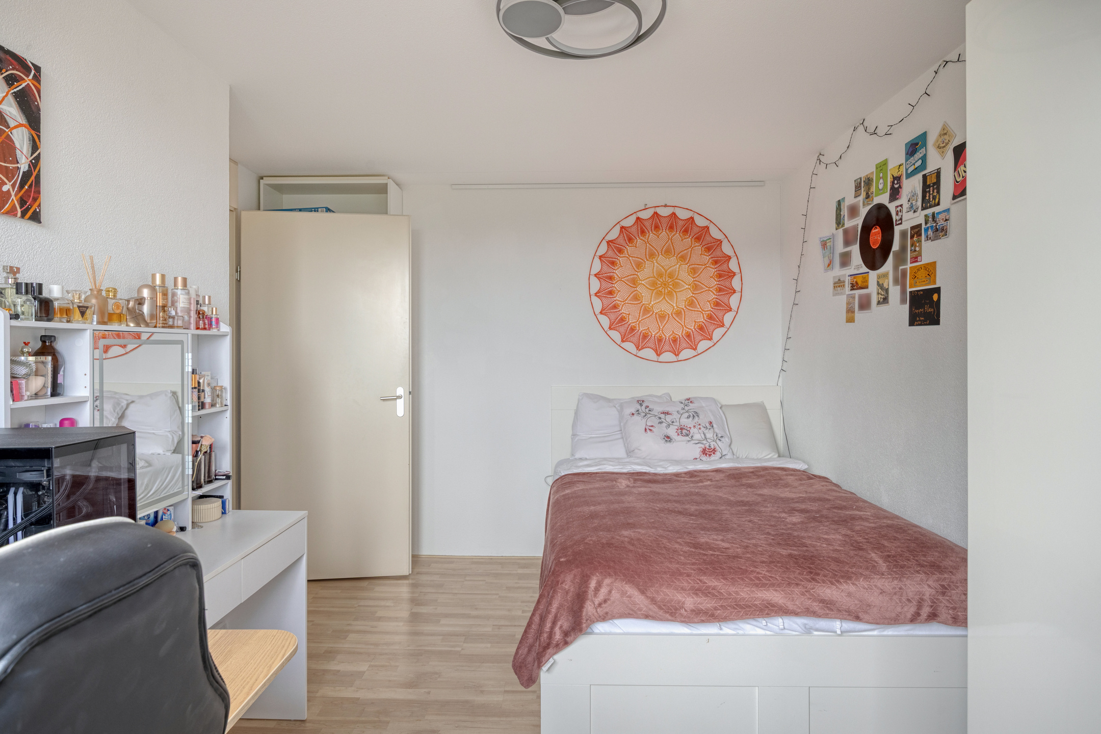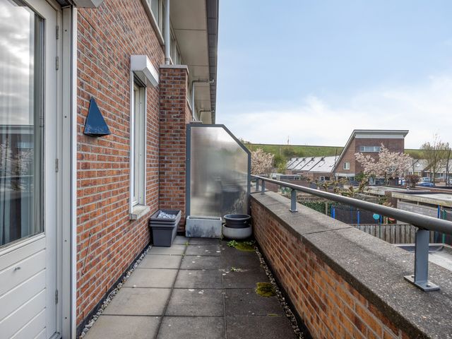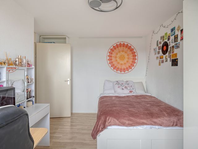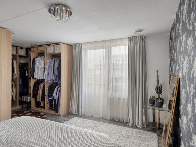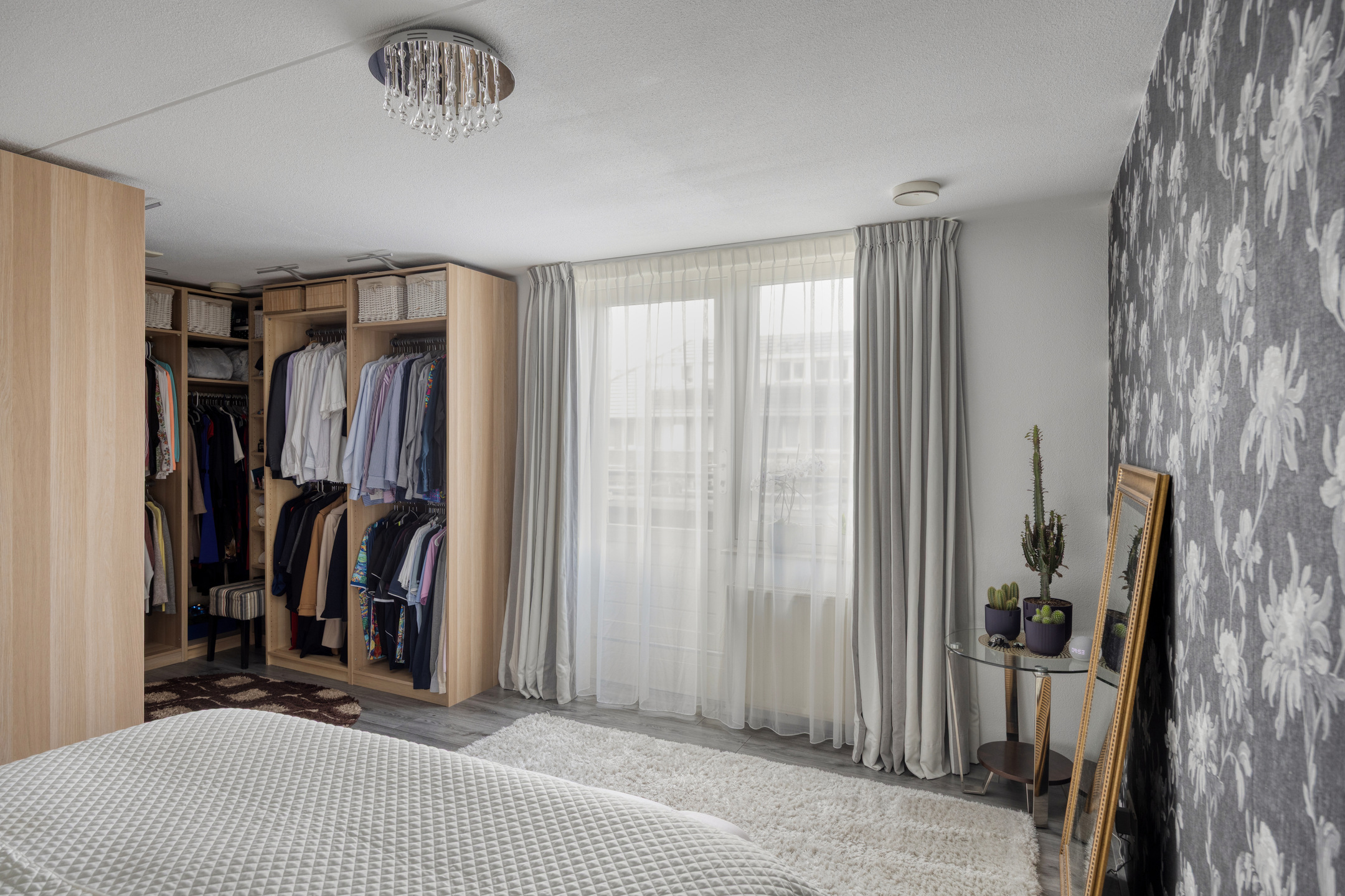 Slaapkamer 1, ligt aan de voorzijde en slaapkamer 2 ligt aan de achterzijde. Slaapkamer 2 is L-vormig en heeft een loopdeur naar het brede balkon (volle breedte - ca. 1.63x5.95 m).