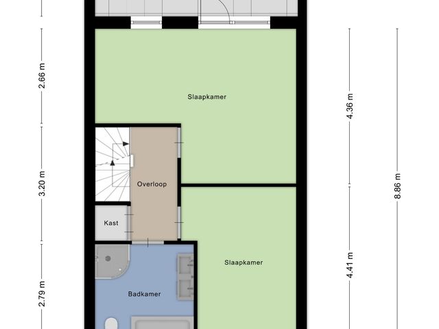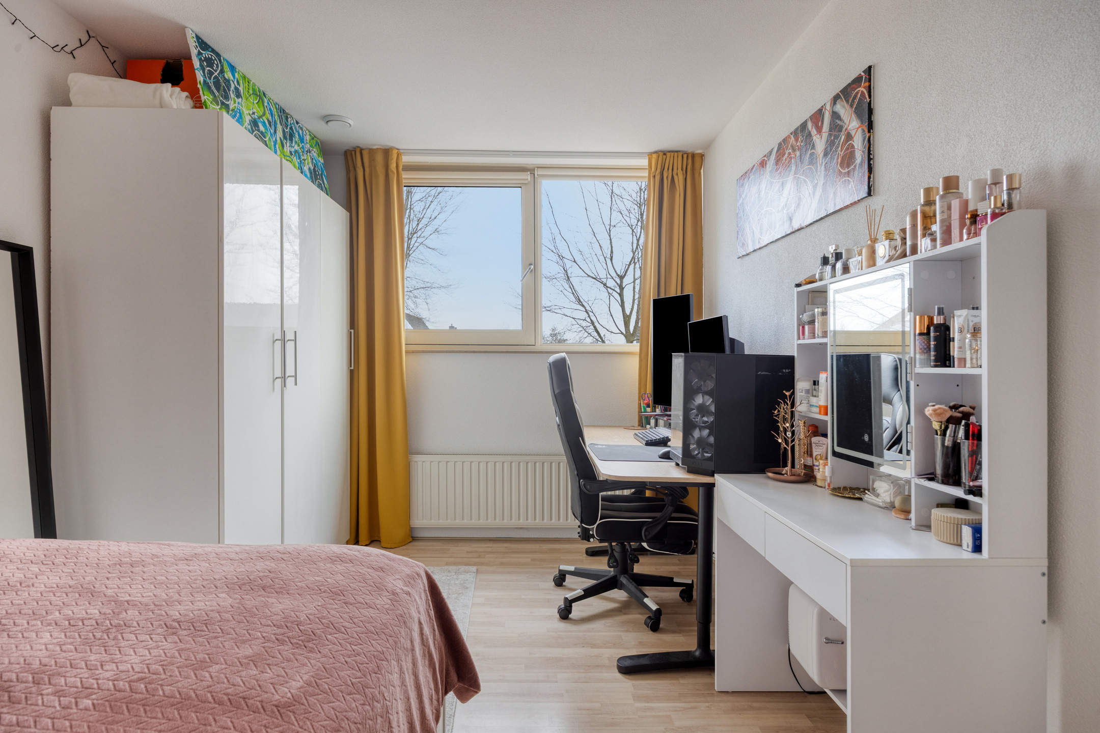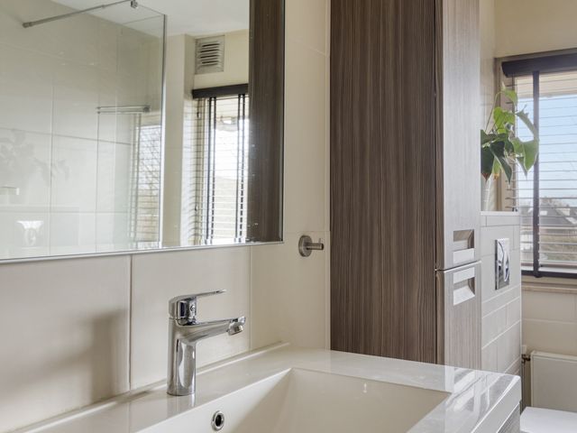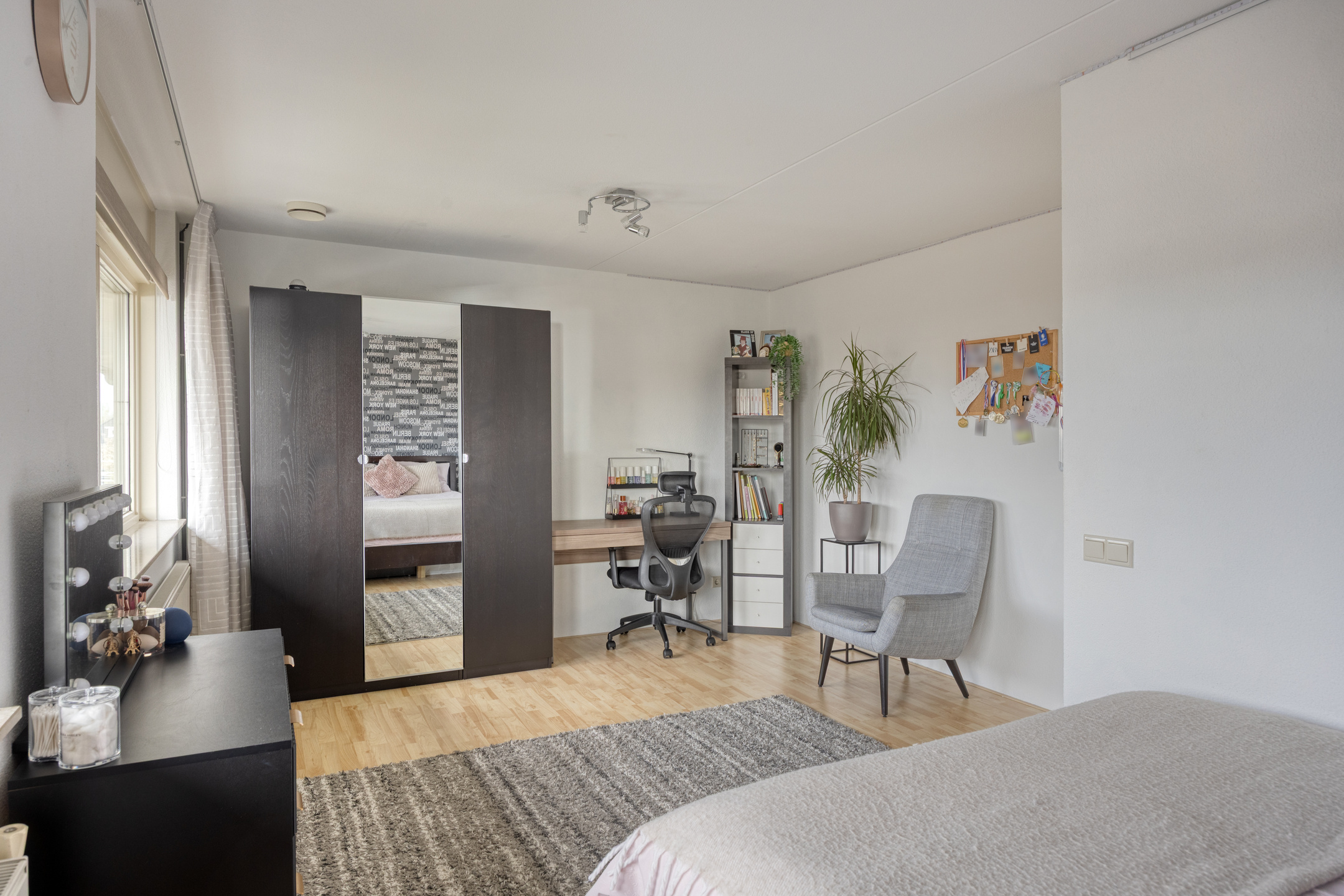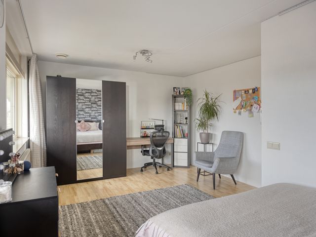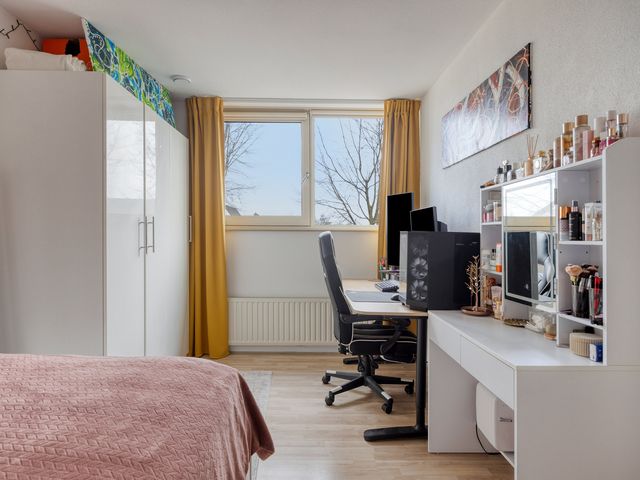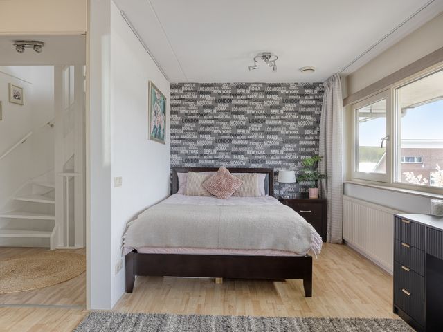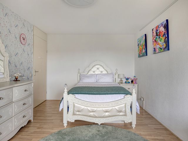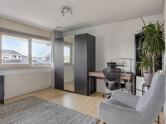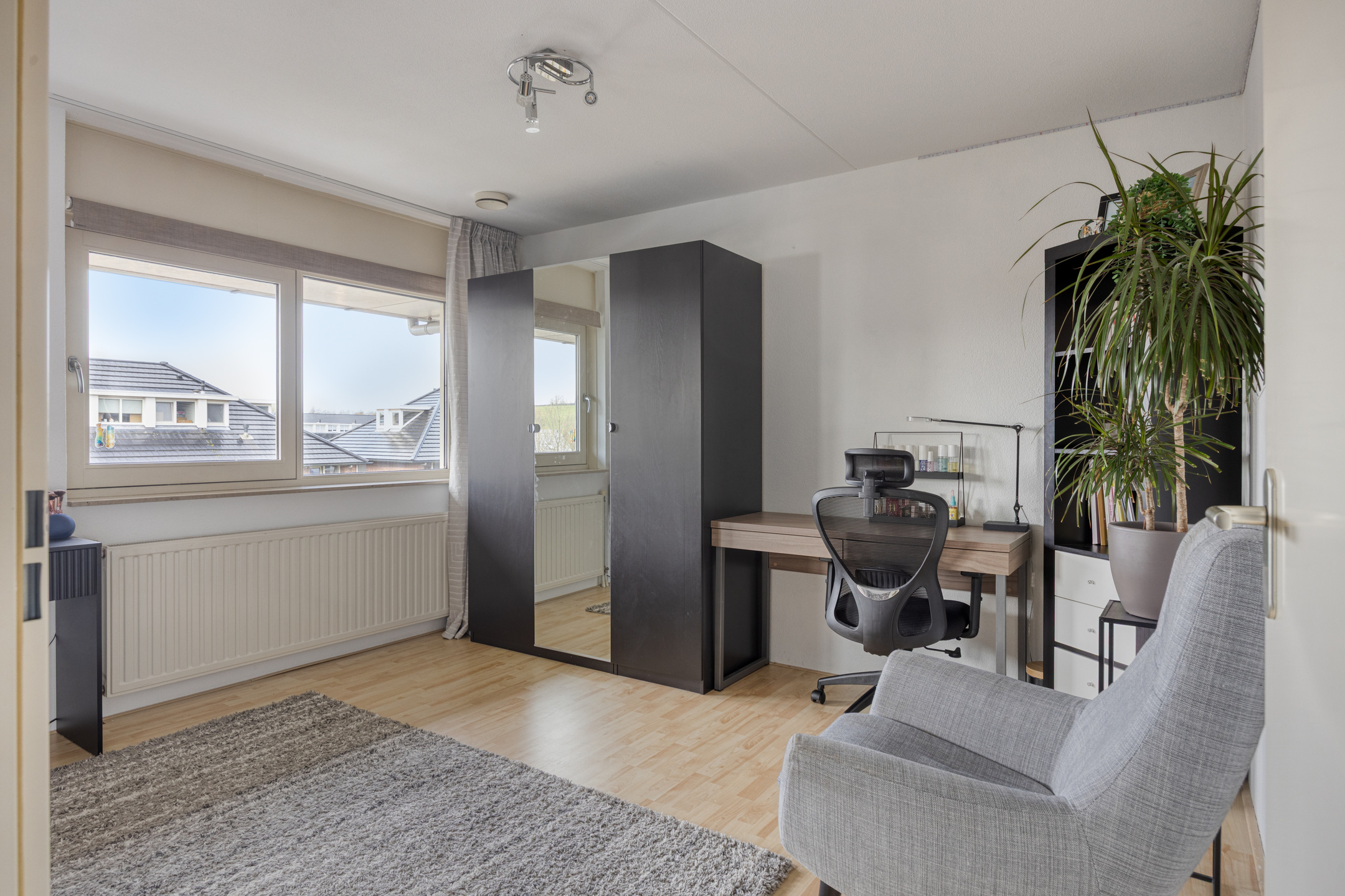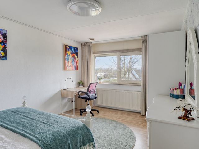Slaapkamer 3, ligt aan de voorzijde en slaapkamer 4 ligt aan de achterzijde. Slaapkamer 4 is L-vormig en heeft een schitterend achtergevelraam.