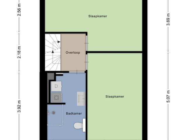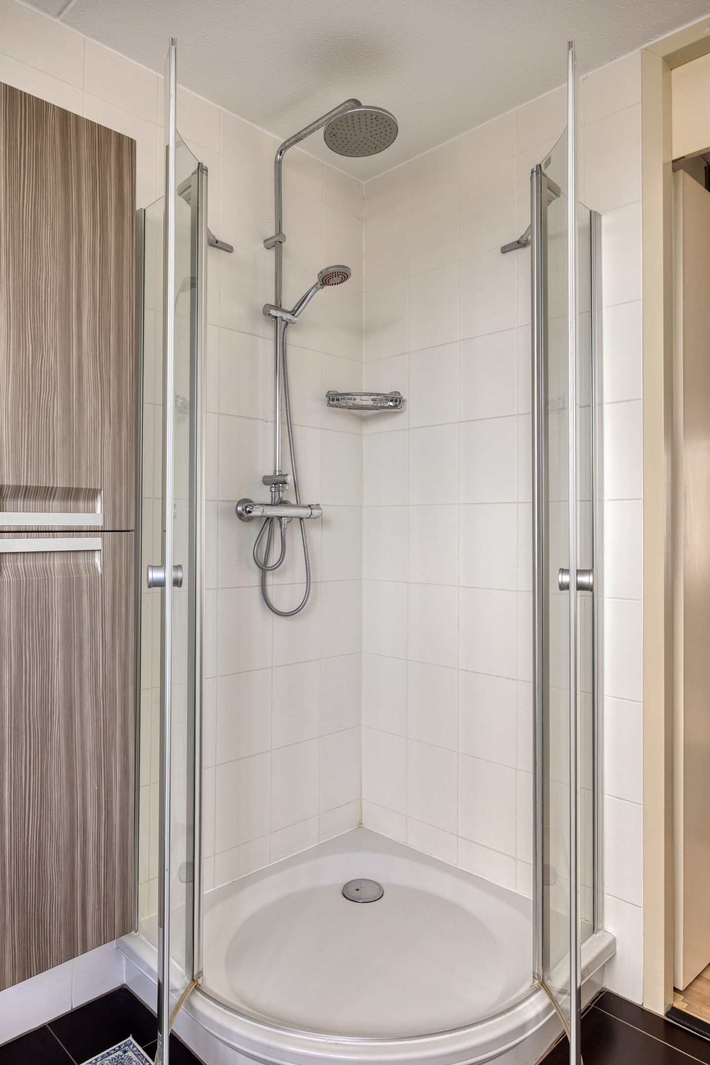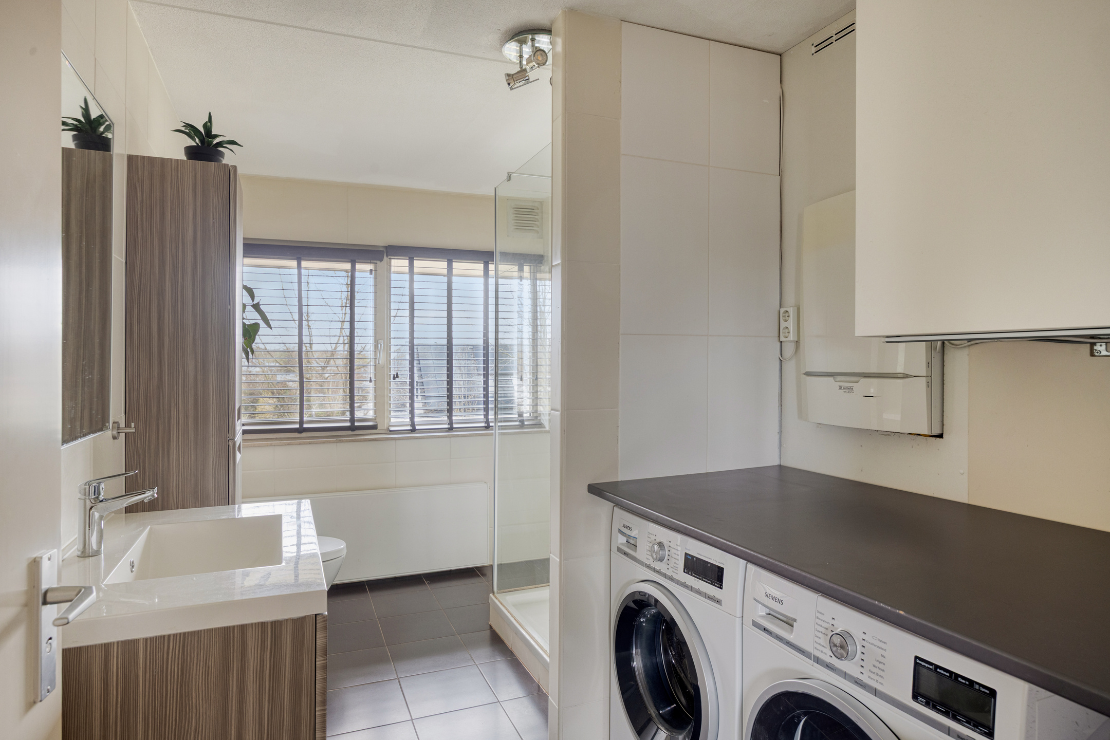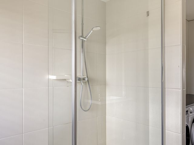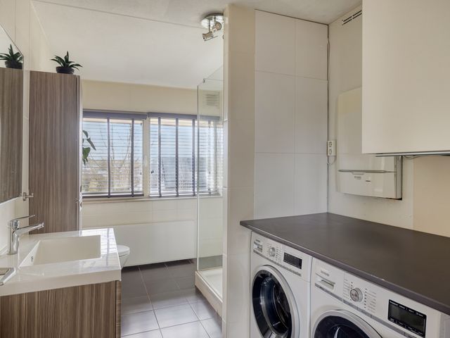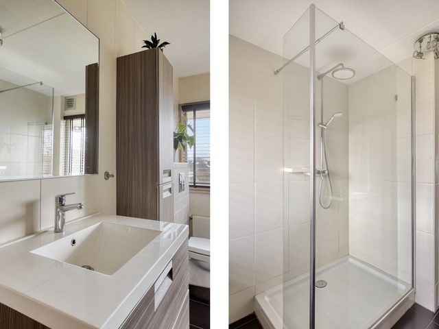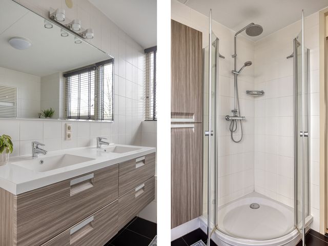 Een overloop met een trapopgang naar de derde verdieping, heeft 2 ruime slaapkamers en badkamer 2. Badkamer 2, heeft ook een grootvoorgevelraam, mechanische ventilatie, is uitgerust met o.a. een wastafelmeubel, een handige inloopdouche met gehard glas, een vrijhangend toilet en aansluitingen voor de wasmachine en droger.