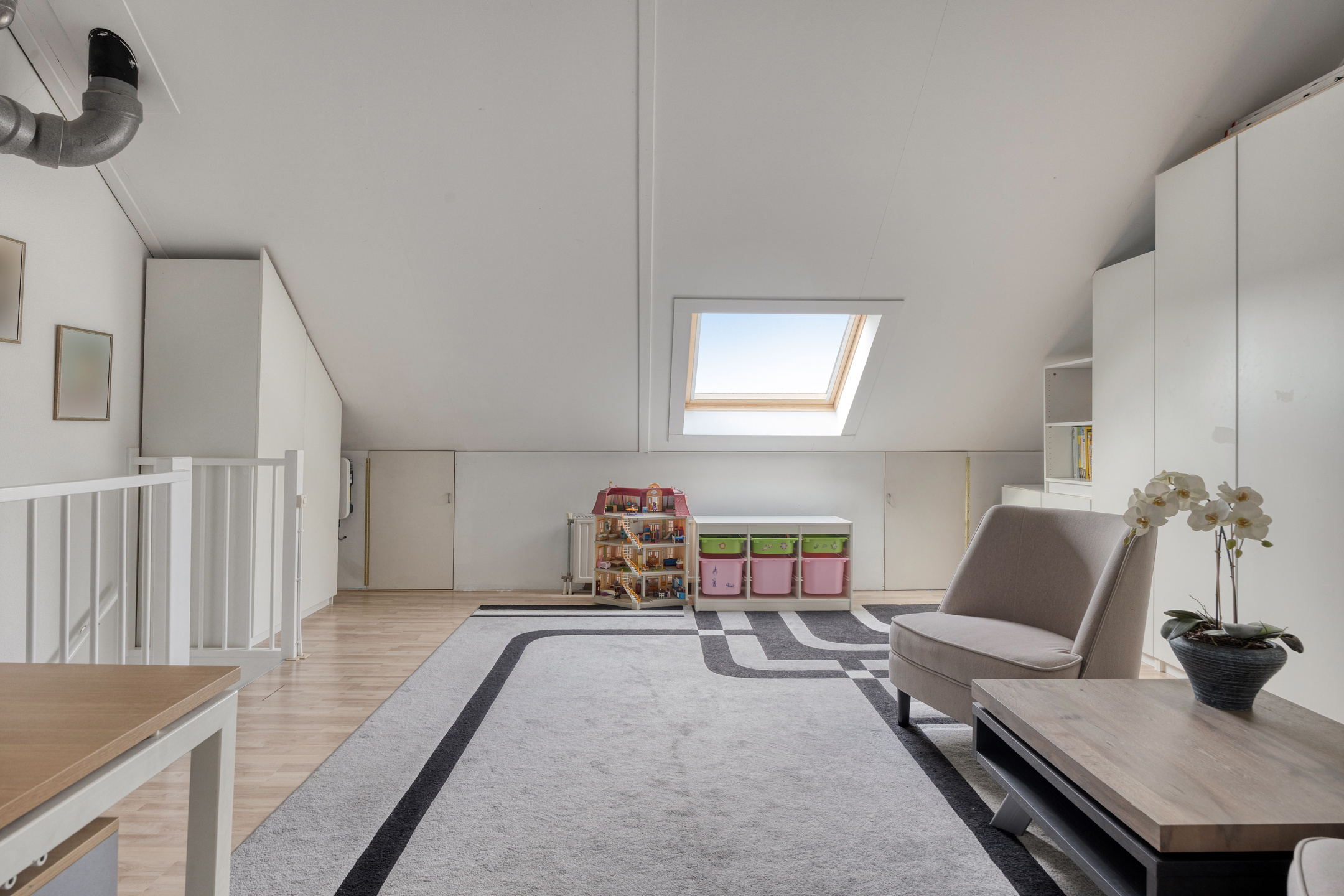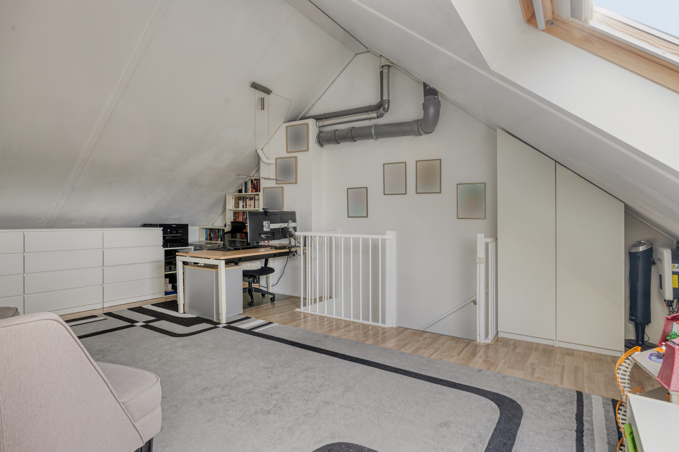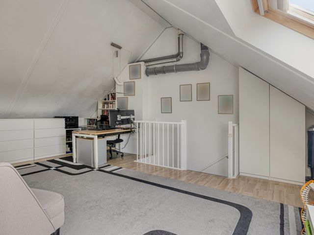 Een absolute, multifunctionele zolder verdieping met een fraaie nokhoogte van ca. 3.50 m! Hierdoor heeft u veel loopruimte en kunt u uw een sport/hobby/werkkamer of een eigen slaapverdieping creëren.