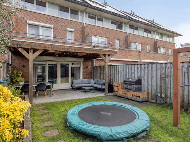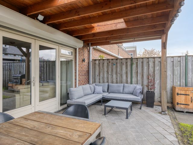 Deze parel heeft 2 tuinen. De voortuin zorgt voor extra privacy en maakt het straatbeeld fraaier. De zonnige achtertuin met een stoere, aangebouwde tuinkamer ligt perfect op het zuidwesten. Via de achtertuin zijn de royale berging en de achterom te bereiken.