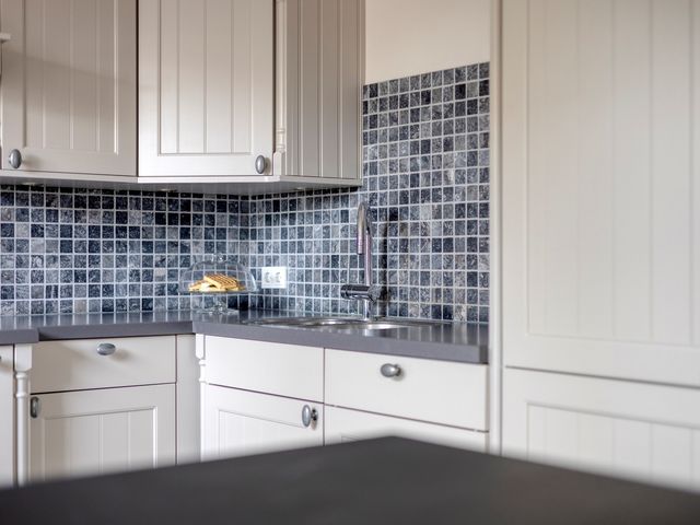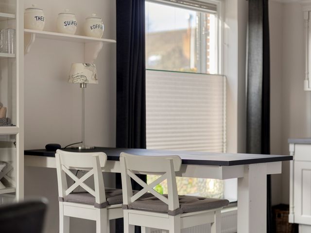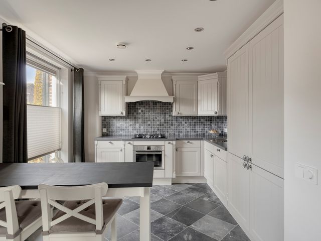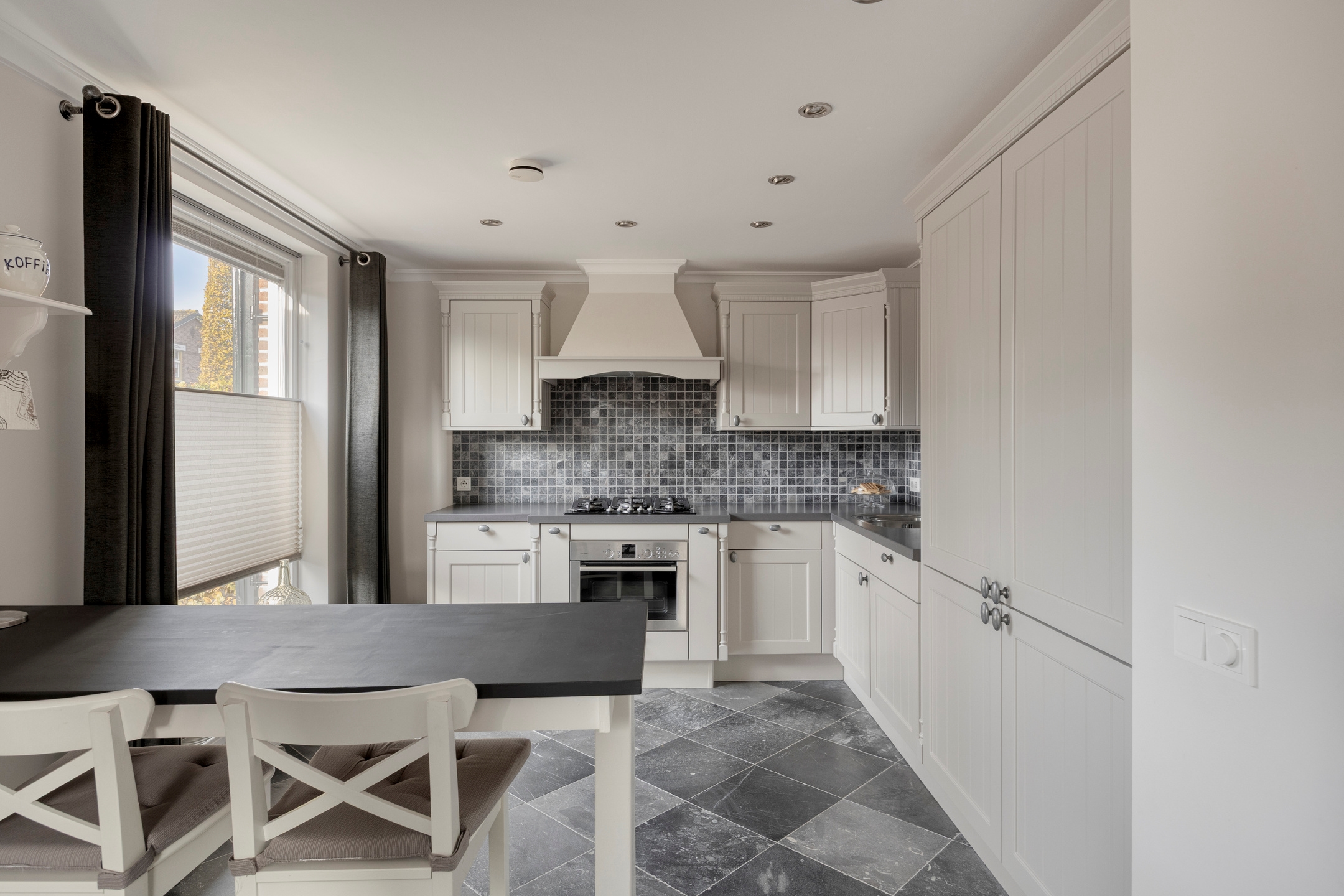 De keuken is uitgevoerd in landelijke stijl en voorzien van alle moderne gemakken, waaronder een royale koel-/vriescombinatie (2025), een afzuigkap in schouw, een vaatwasser en een combi-oven.