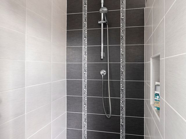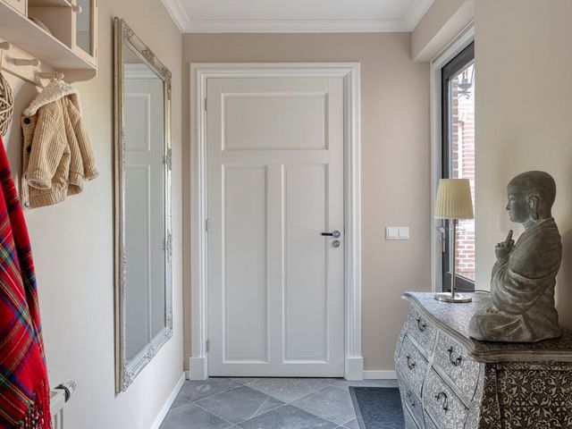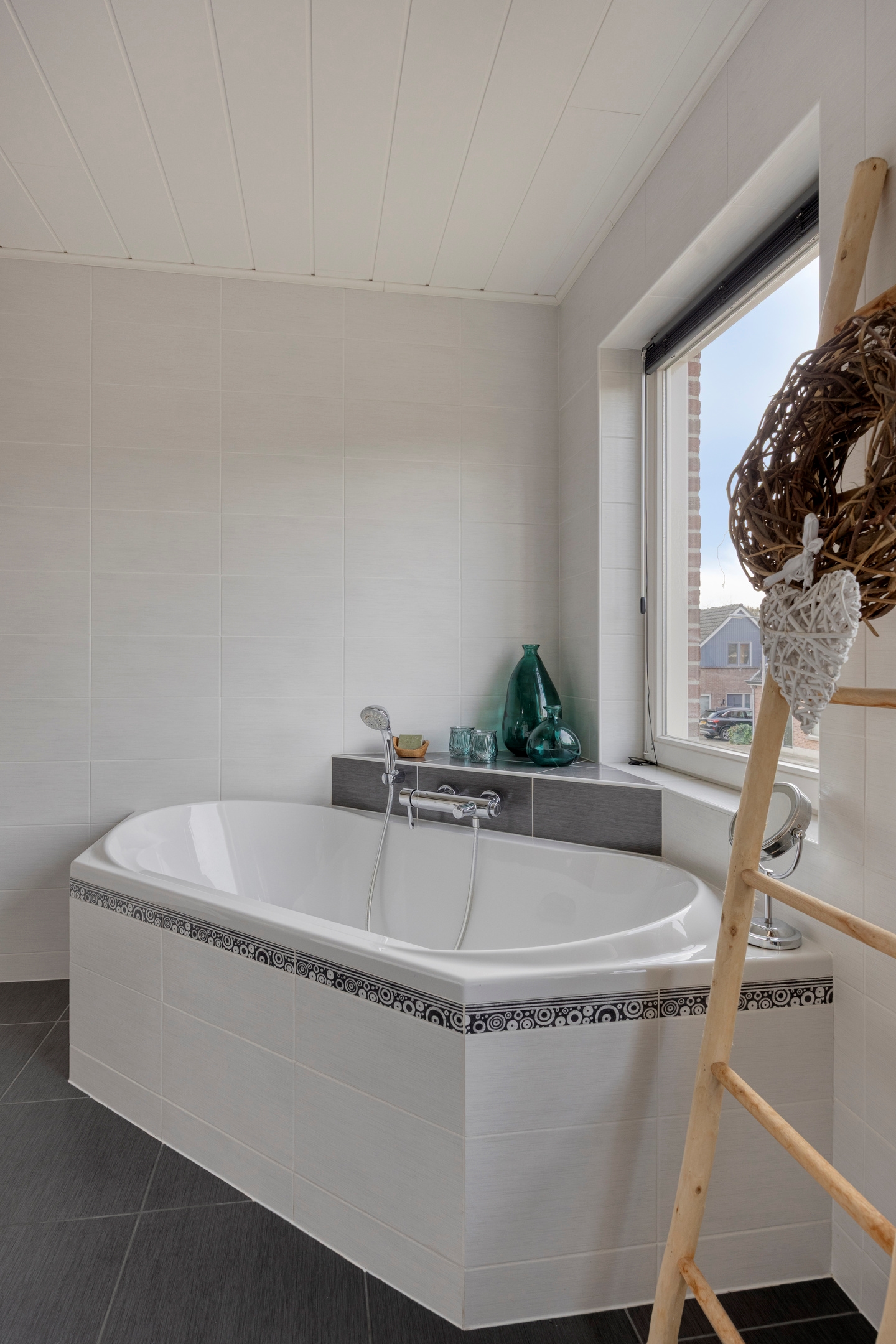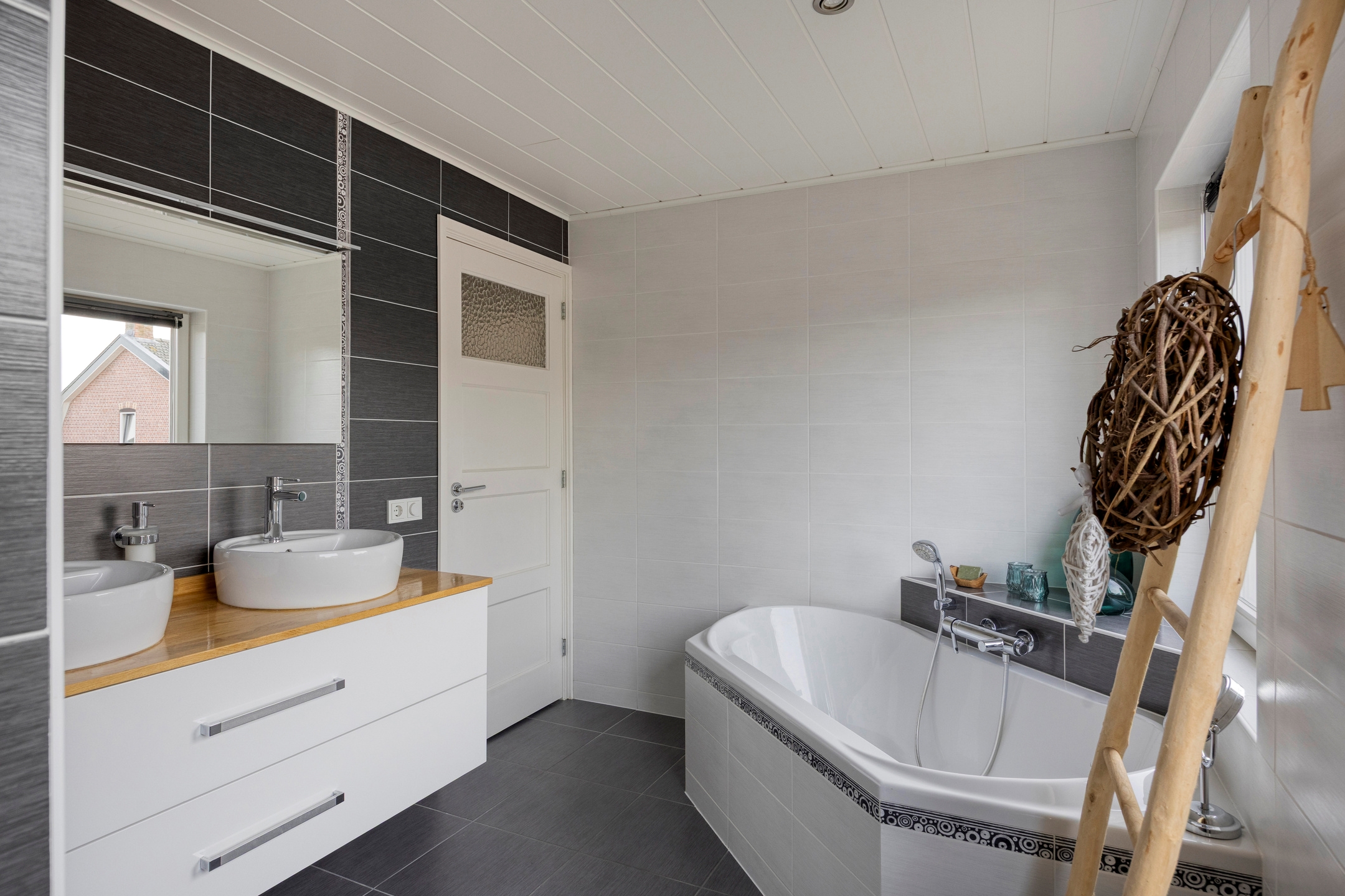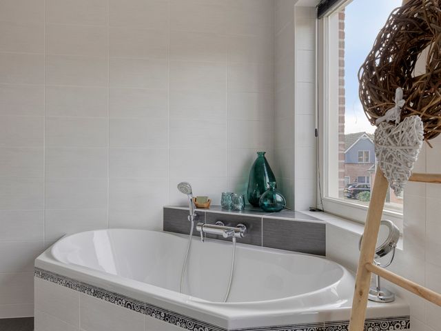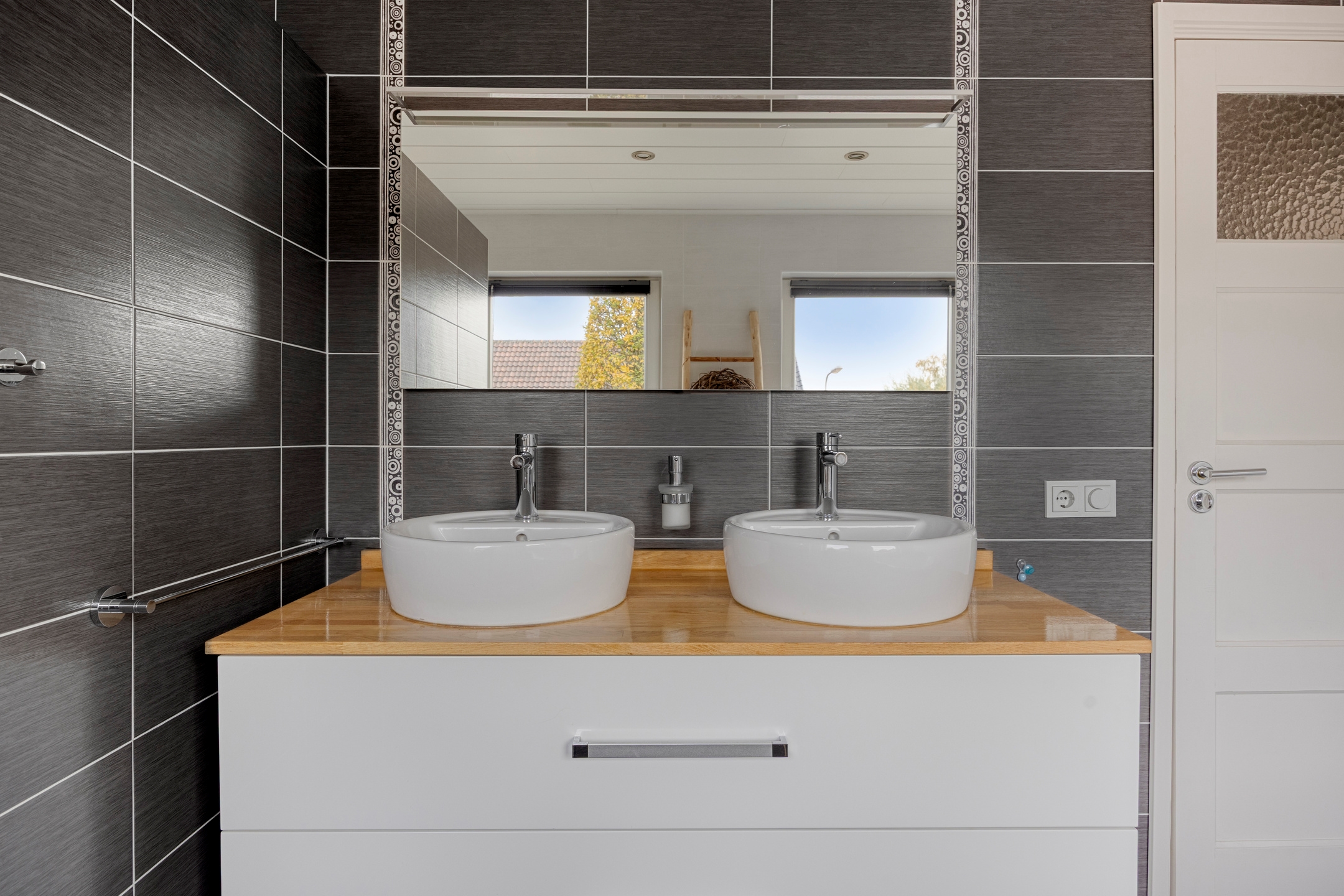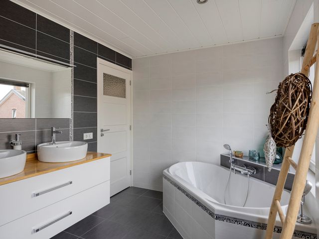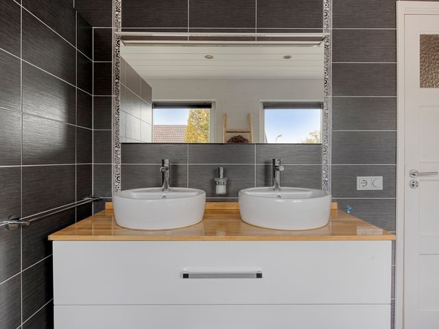 De badkamer ademt net als de rest van de woning luxe uit. Je vindt hier een ligbad, een inloopdouche, een dubbele wastafel met een badkamermeubel en een badkamerspiegel met verlichting. De vloer is voorzien van vloerverwarming.