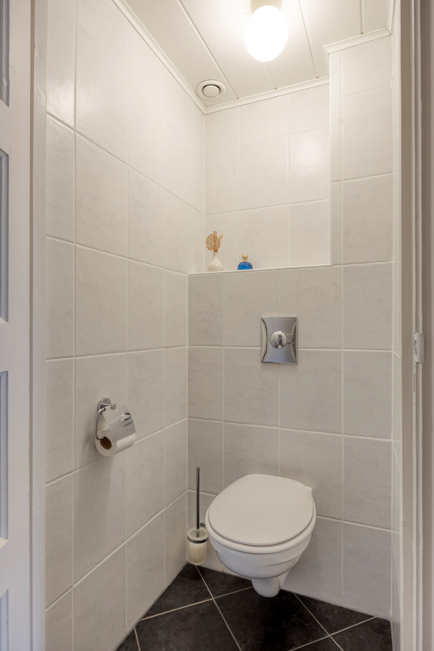 Het toilet is volledig betegeld en uitgerust met een wandcloset. De aansluitingen voor een fonteintje zijn reeds aanwezig, waardoor een fonteintje eenvoudig te plaatsen is.