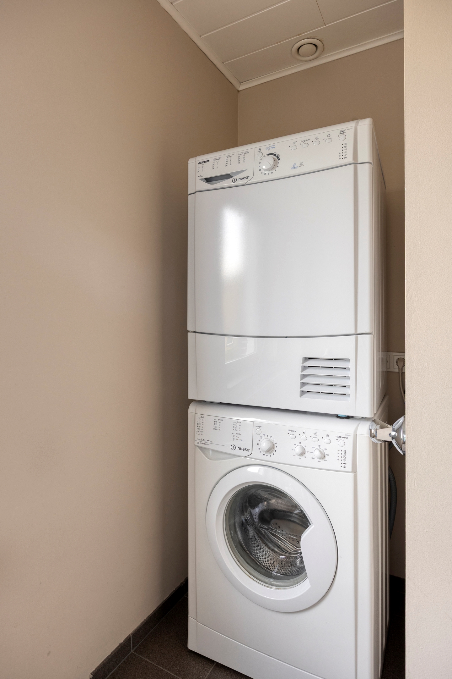 Daarnaast beschikt deze verdieping over een separate wasruimte, compleet met aansluitingen voor een wasmachine en droger.