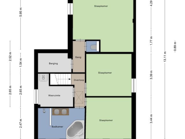 De drie slaapkamers zijn fijne, lichte ruimtes met een prettige sfeer. De slaapkamer aan de achterzijde is voorzien van een praktische inloopkast en voelt extra ruimtelijk aan dankzij de hoogte van het plafond.