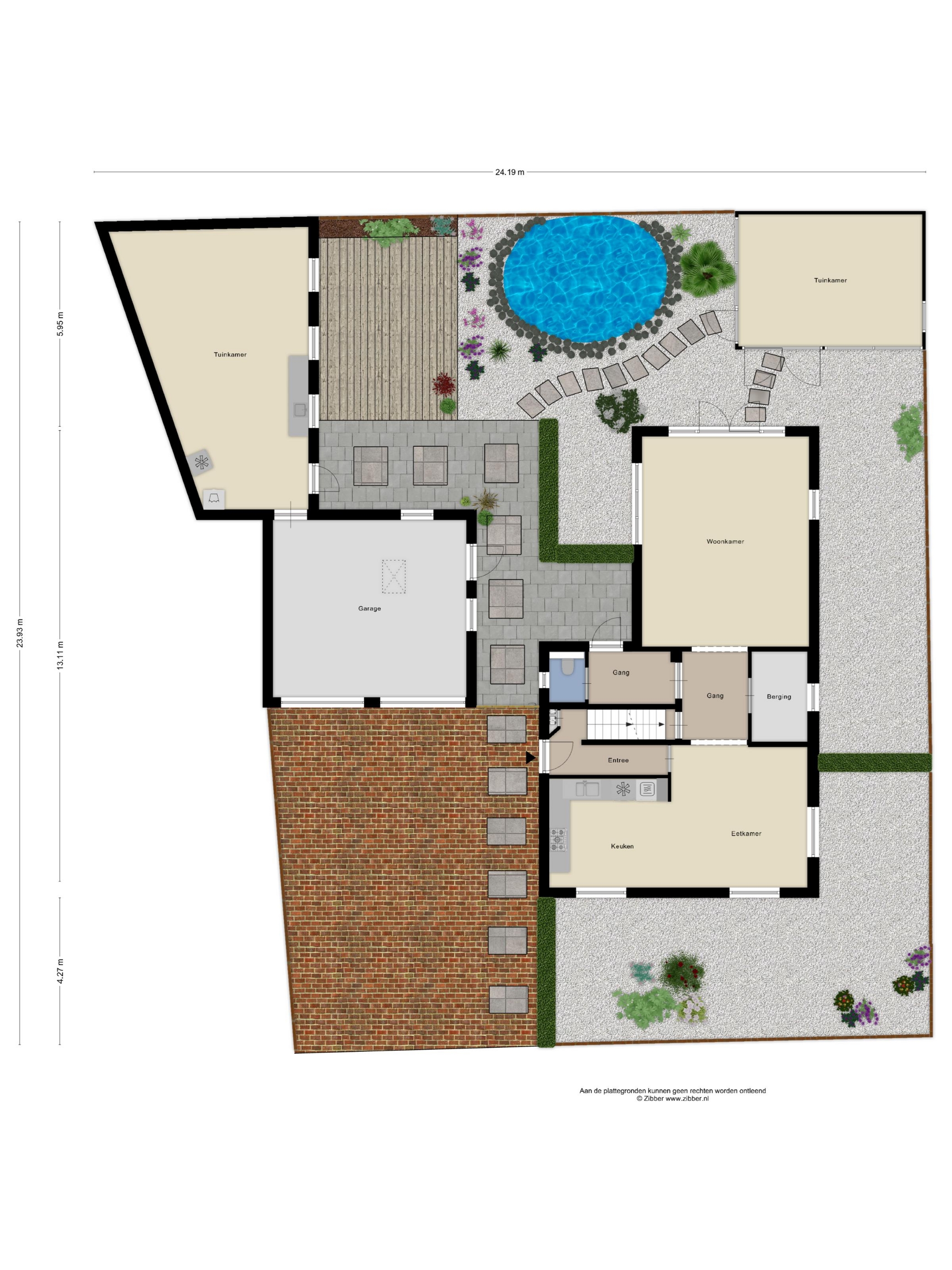 Vanuit de tuin zijn zowel de garage als het bijgebouw toegankelijk. Deze multifunctionele ruimte biedt uitstekende mogelijkheden voor een beroep aan huis of het creëren van een mantelzorgwoning.