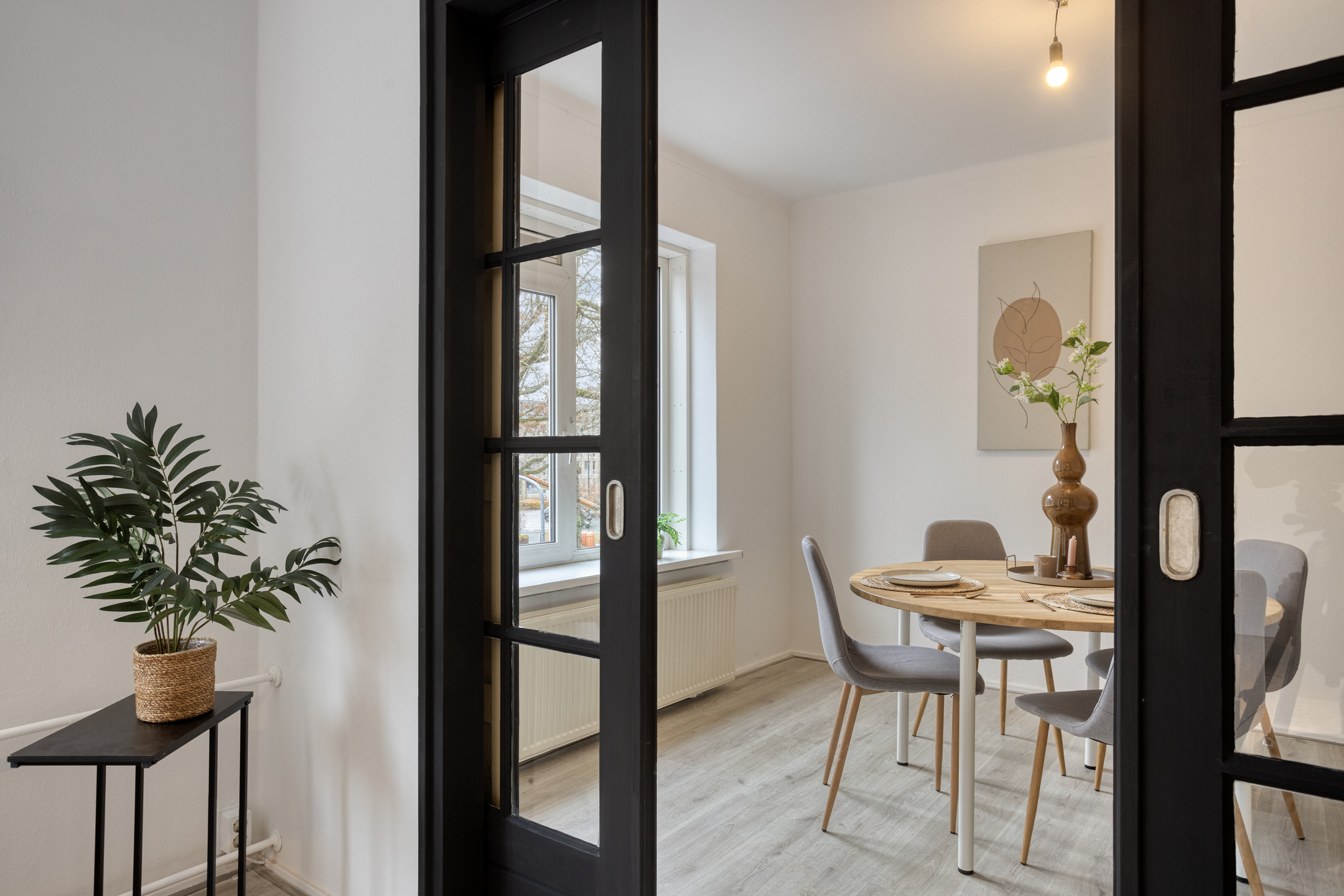 - Lichte woonkamer met ensuite deuren naar de eetkamer