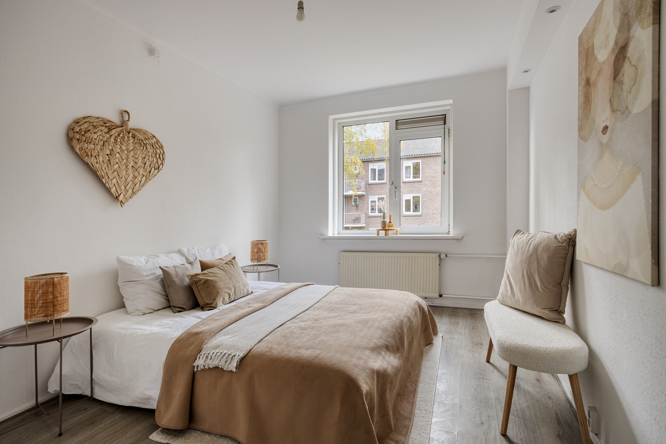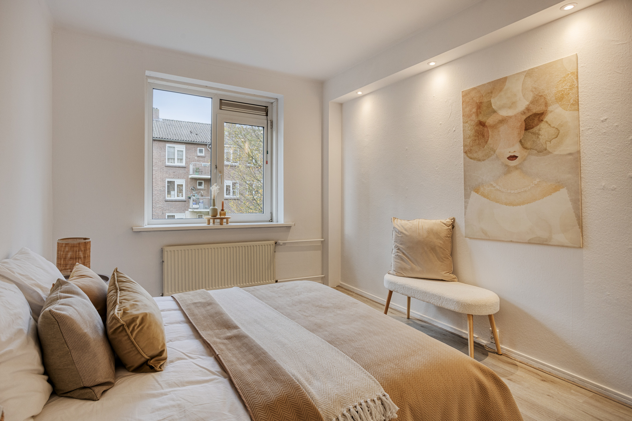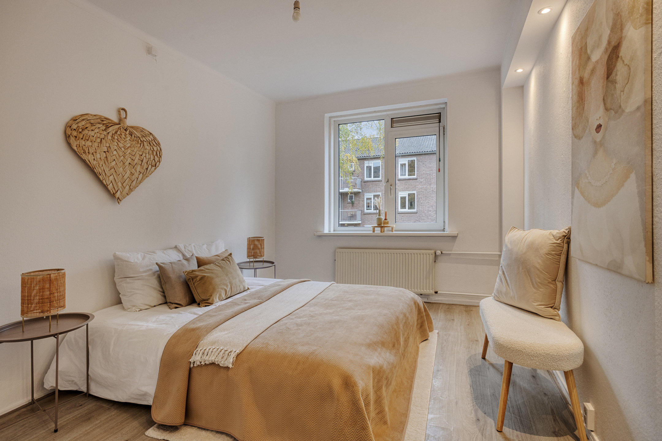 Beide slaapkamers zijn eveneens licht en de hoofdslaapkamer is voorzien van sfeervolle inbouwspots.